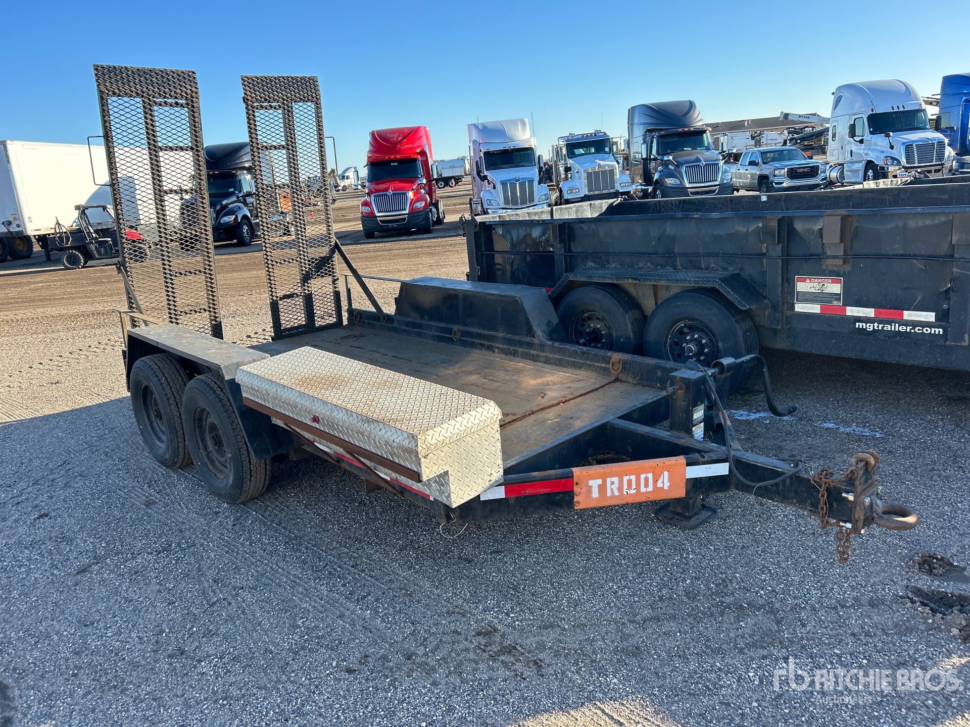Lunette Ring Hitch, Spring Suspension, Electric Brakes, 12 ft Main Deck, 74 in Overall Deck Width, Storage Compartments, Manual Ramps, Steel Decking, 225/75R15 Tires