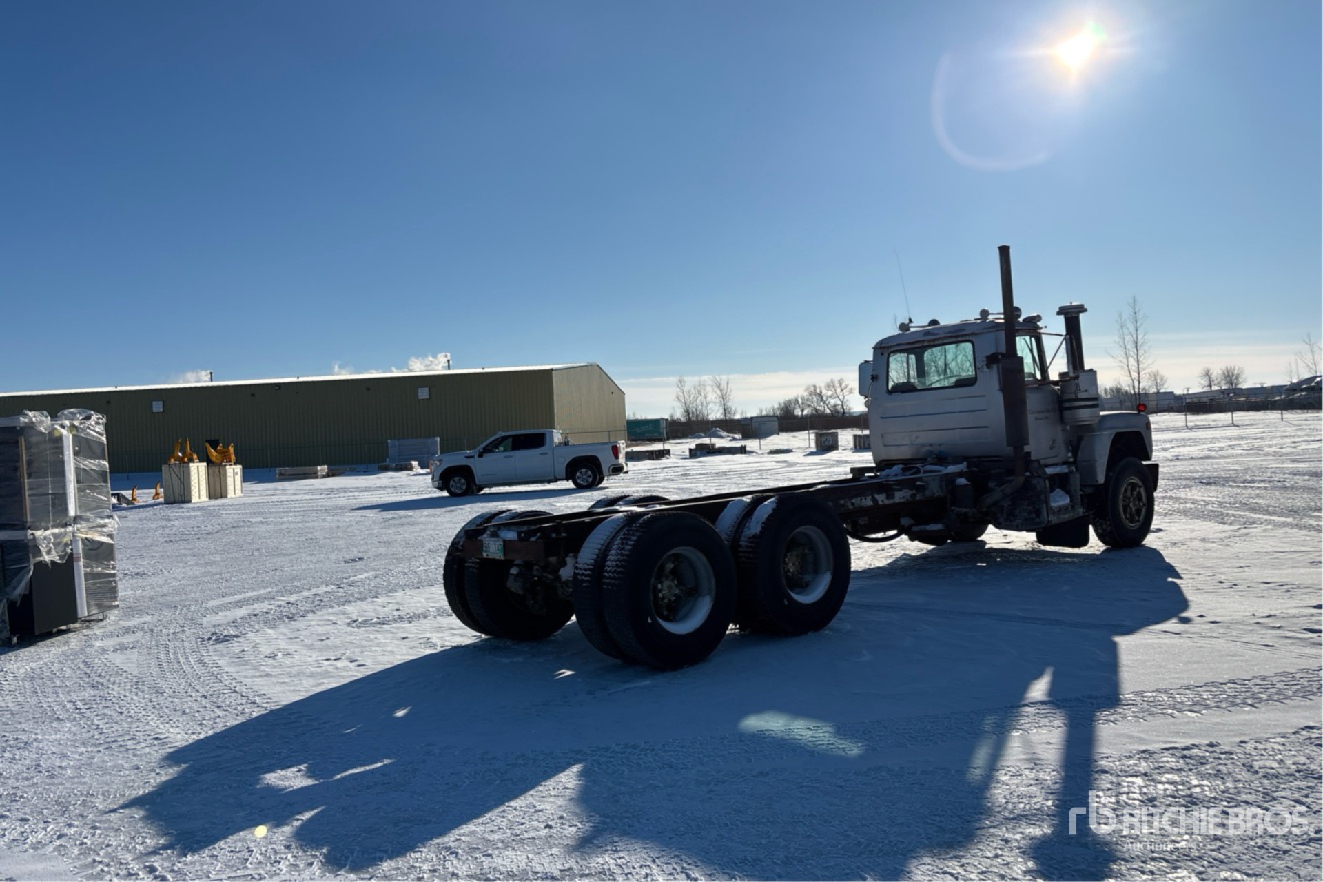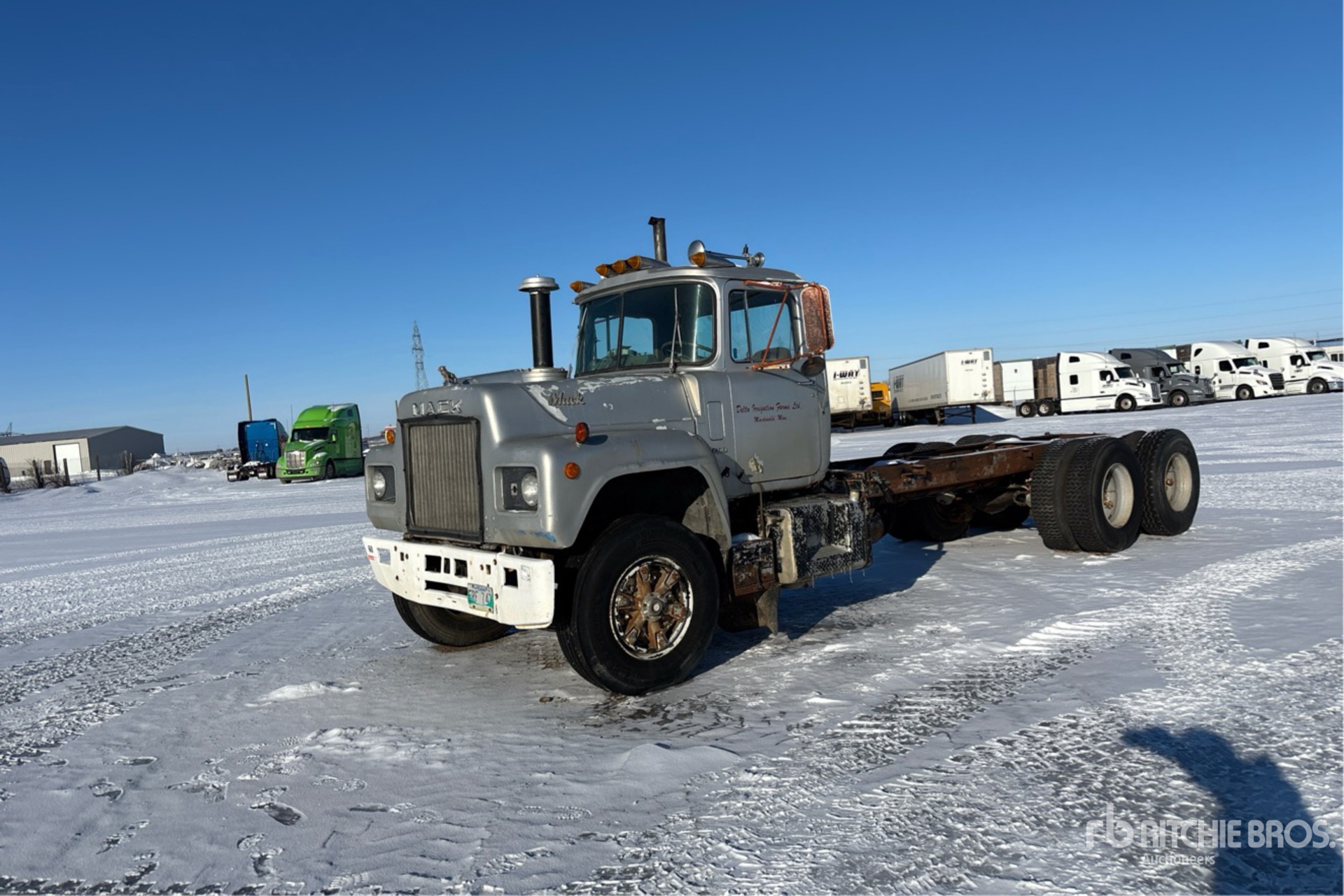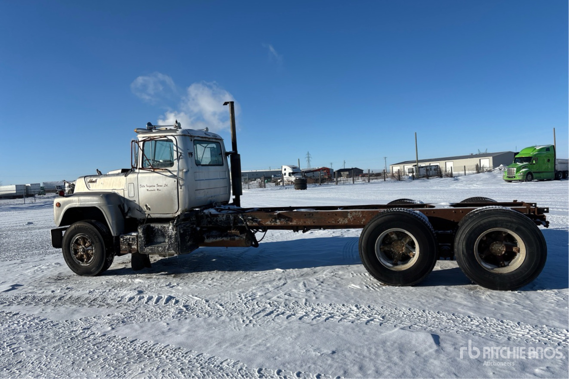 Mack ENDT 686 6 Cylinder Diesel 283 hp Engine, 1975 US EPA Label, CARB Compliant, Manual Transmission, 11R22.5 Front Tires, 12R22.5 Rear Tires, Spring Suspension, 244 in Wheelbase, PTO, 138 in Cab to Axle, 220 in Cab to End of Frame