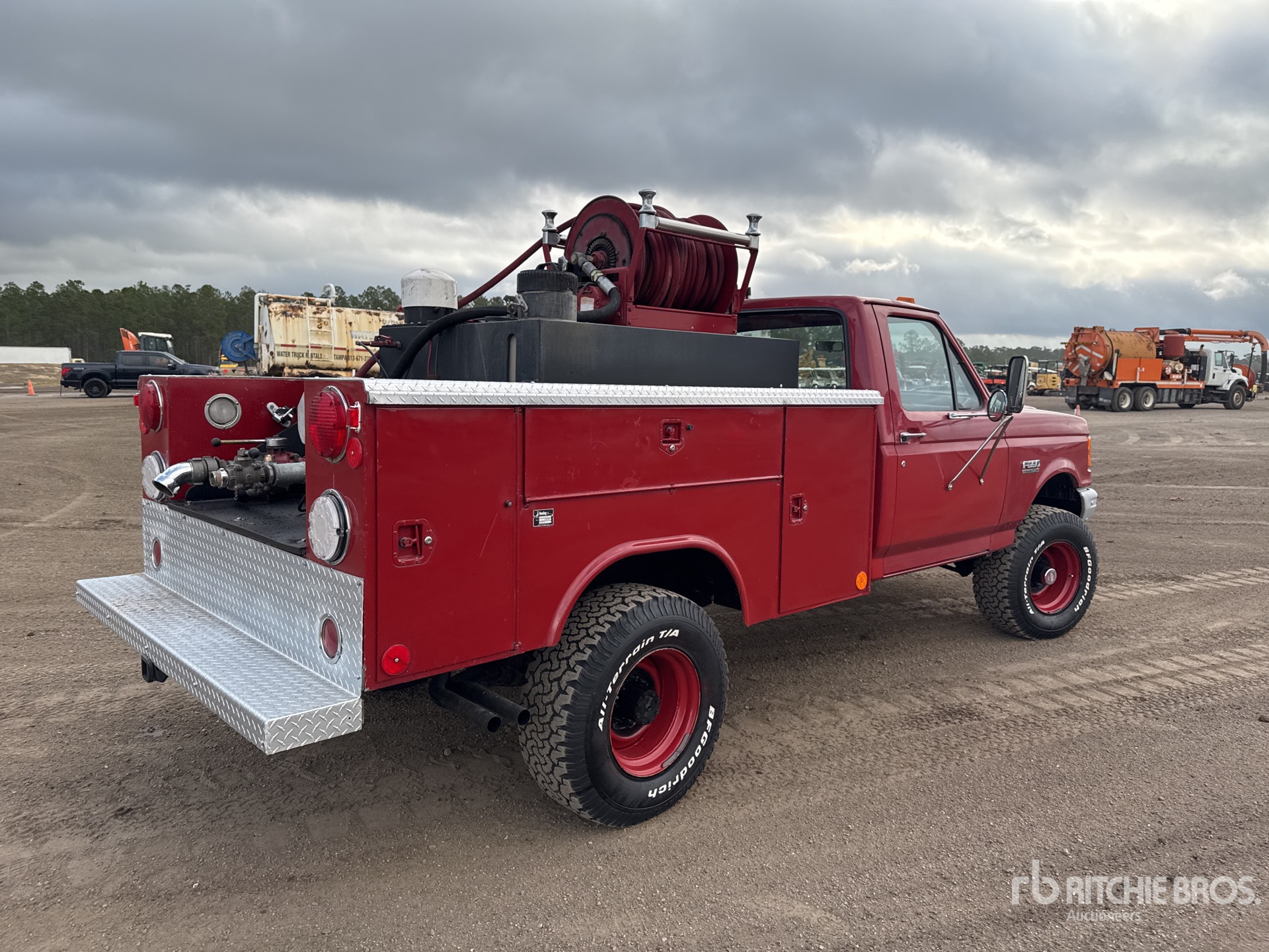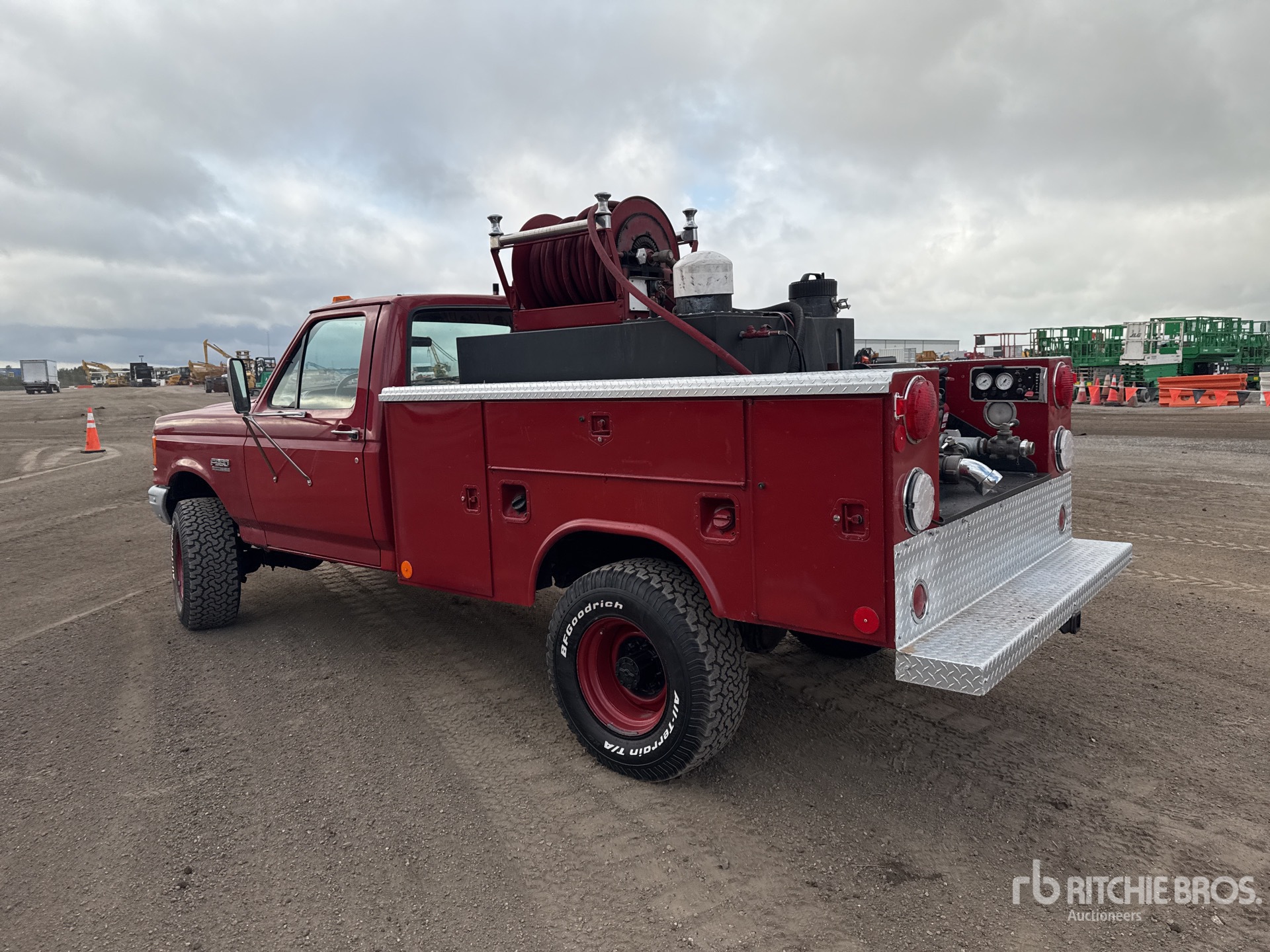 Automatic Transmission, 4100 lb Front Axle, 6084 lb Rears, 8800 lb GVWR, Ford V8 Gasoline Engine, 1989 US EPA Label, 33X12.5/16 Front Tires, 33X12.5/16 Rear Tires, Spring Suspension, 134 in Wheelbase, Reading 8 ft Body, 3 in Engine Driven Pump