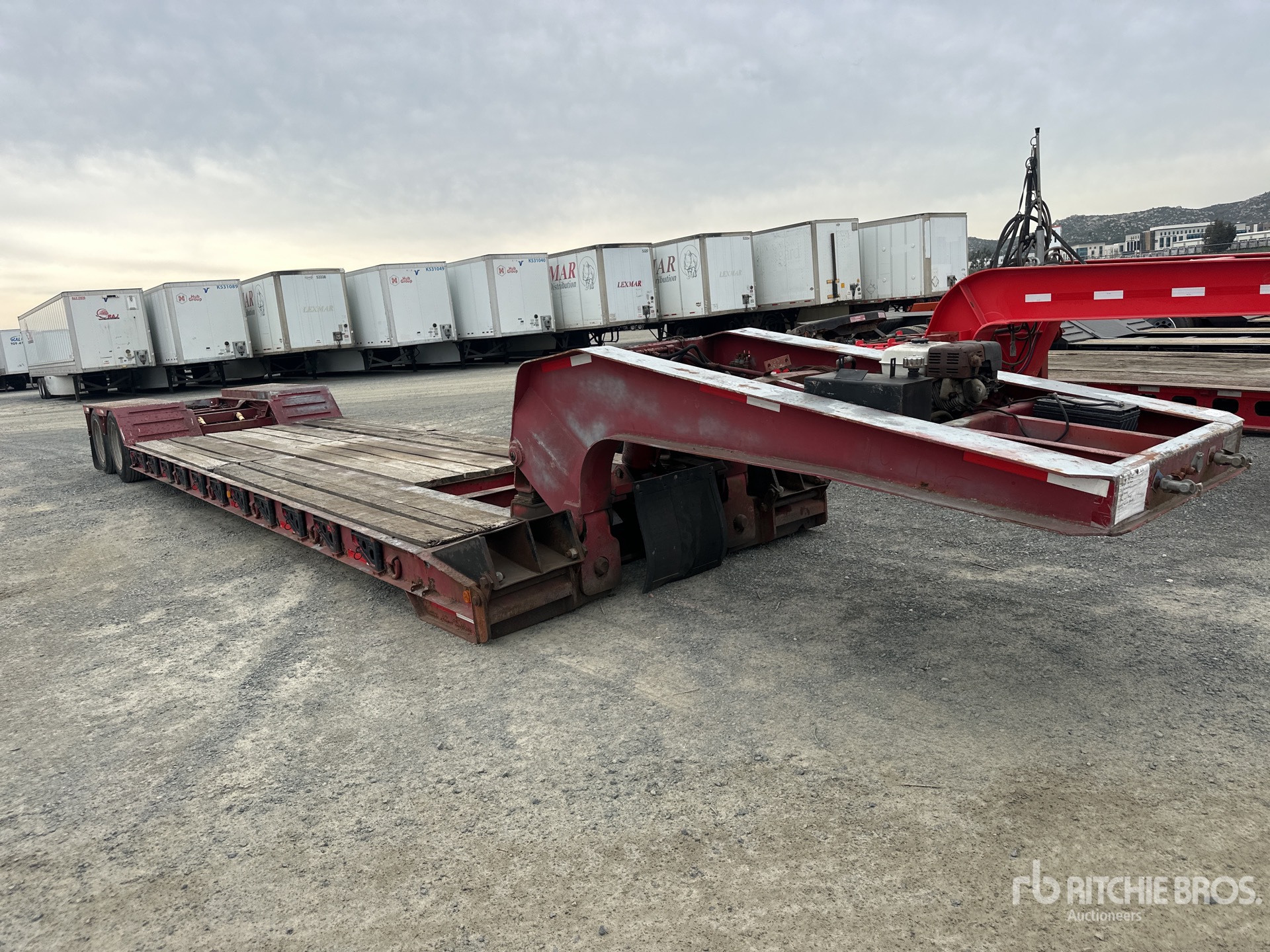 84000 lb GVWR, Hydraulic Removable Gooseneck, 24 ft 6 in x 102 in Main Deck, Deck Over Tires, Air Ride Suspension, Gasoline Driven Self Contained Hydraulic System