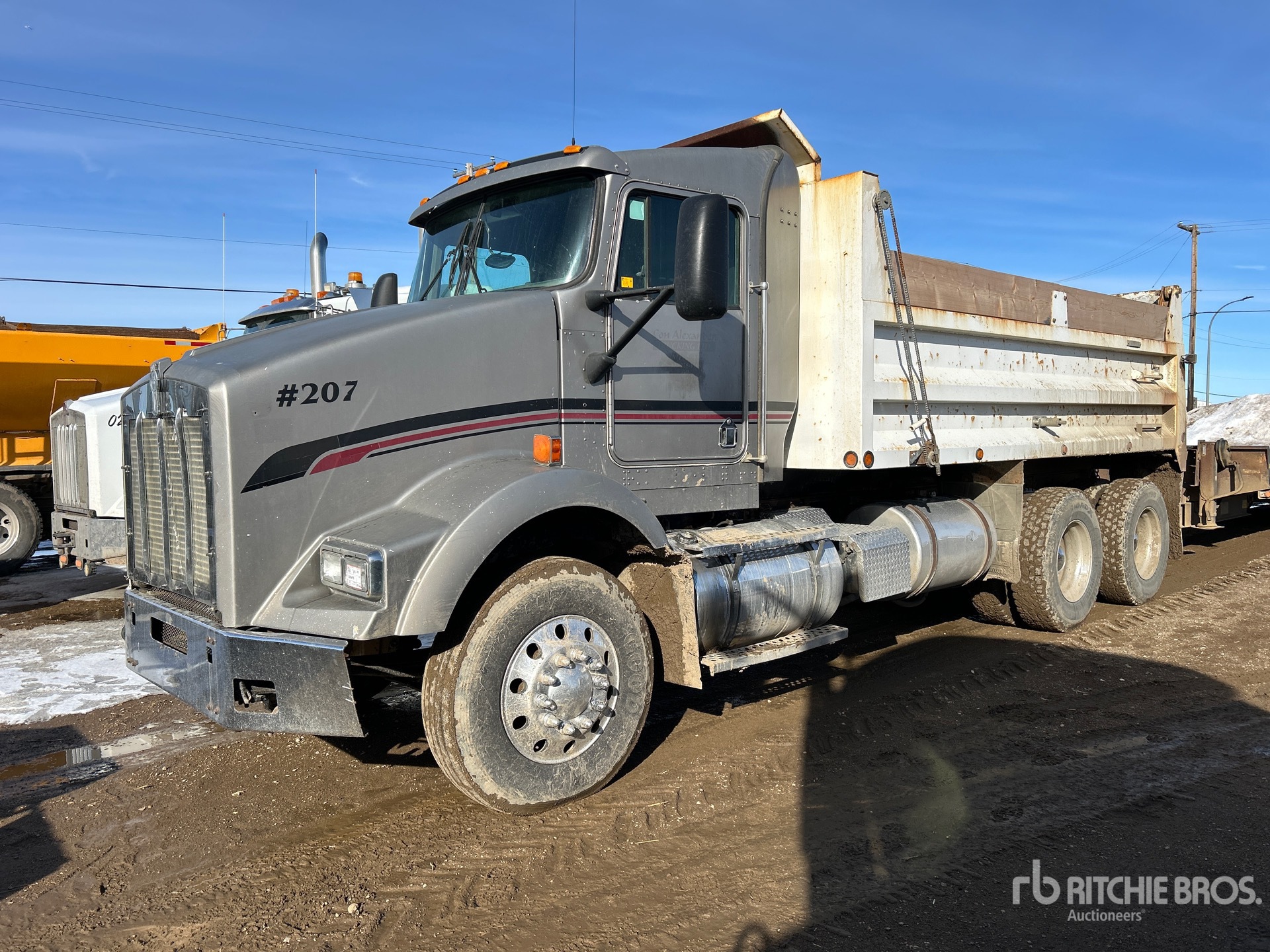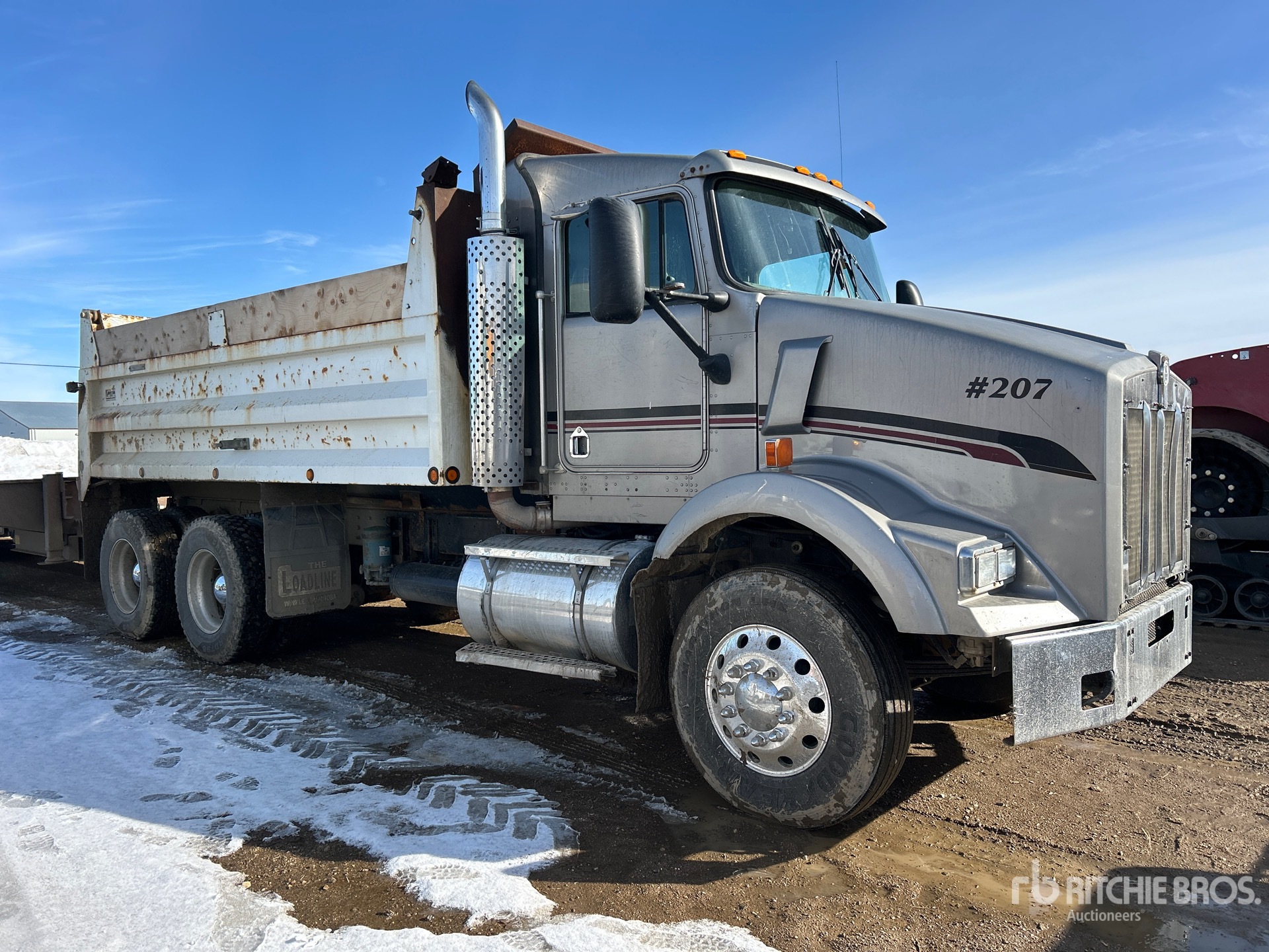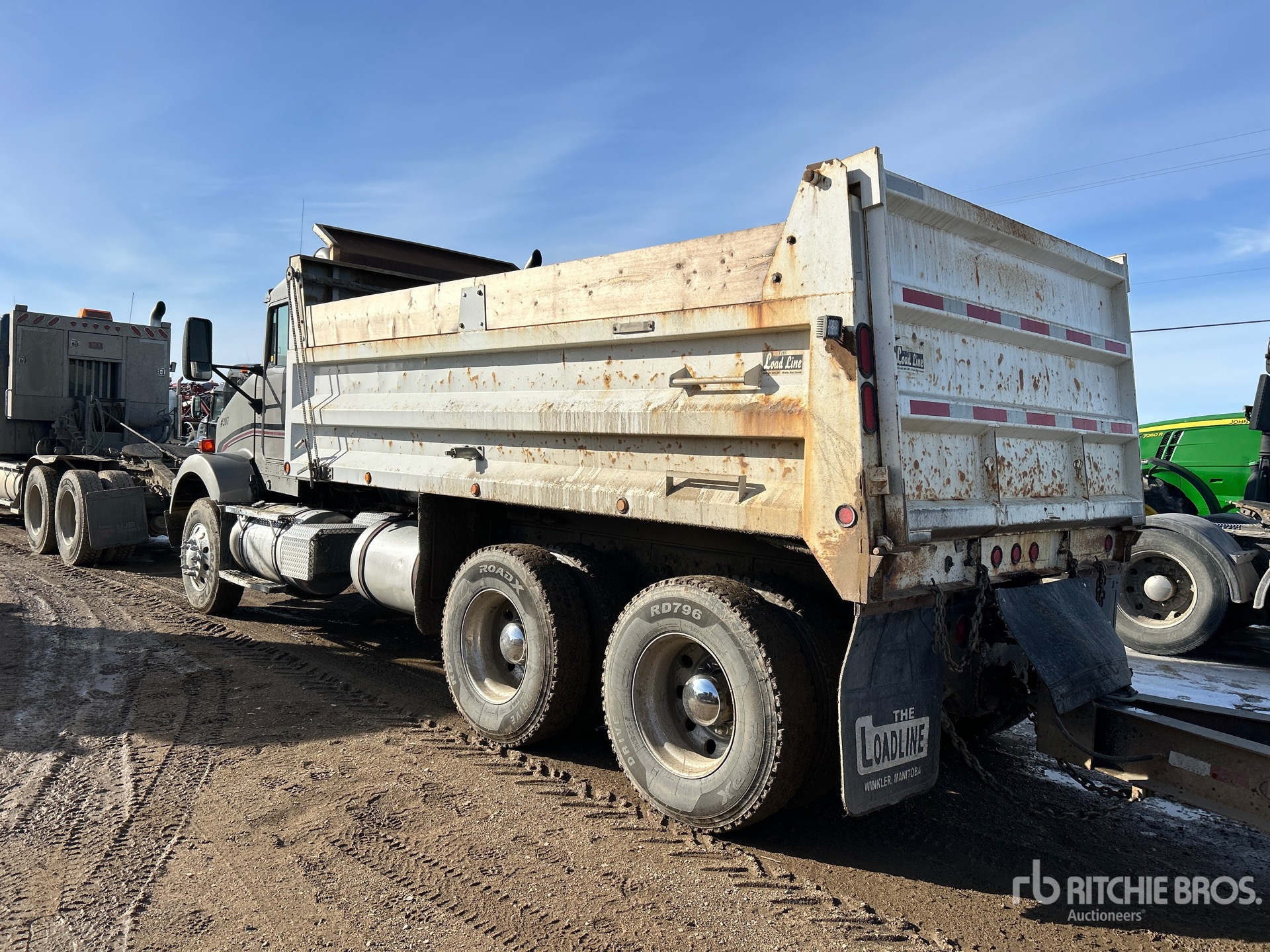 Cat C12 6 Cylinder Diesel 430 hp Engine, Engine Brake, Eaton Fuller RTLO-16713A 13-Speed Manual Transmission, Spicer DS462P Drive Axles, 4.33:1 Axle Ratio, 23587 kg GVWR, Aluminum Wheels, 11R22.5, 8-Bag Air Ride Suspension, 209 in Wheelbase, PTO, Load Line 15 ft Long x 3 ft 10 in High Steel Body, Manual Roll Tarp, Complete-Dispersal-for-J-Alexander-Trucking-Ltd