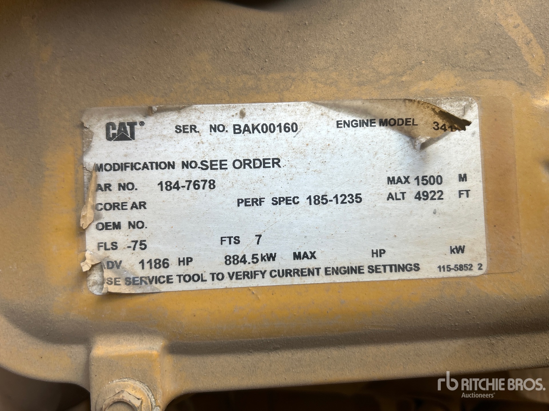 2000 US EPA Label, Cat 3412 1186 hp 27 L Diesel Engine, 906 kVA/725 kW Rated 3 Phase Output, 480 V Rated Voltage