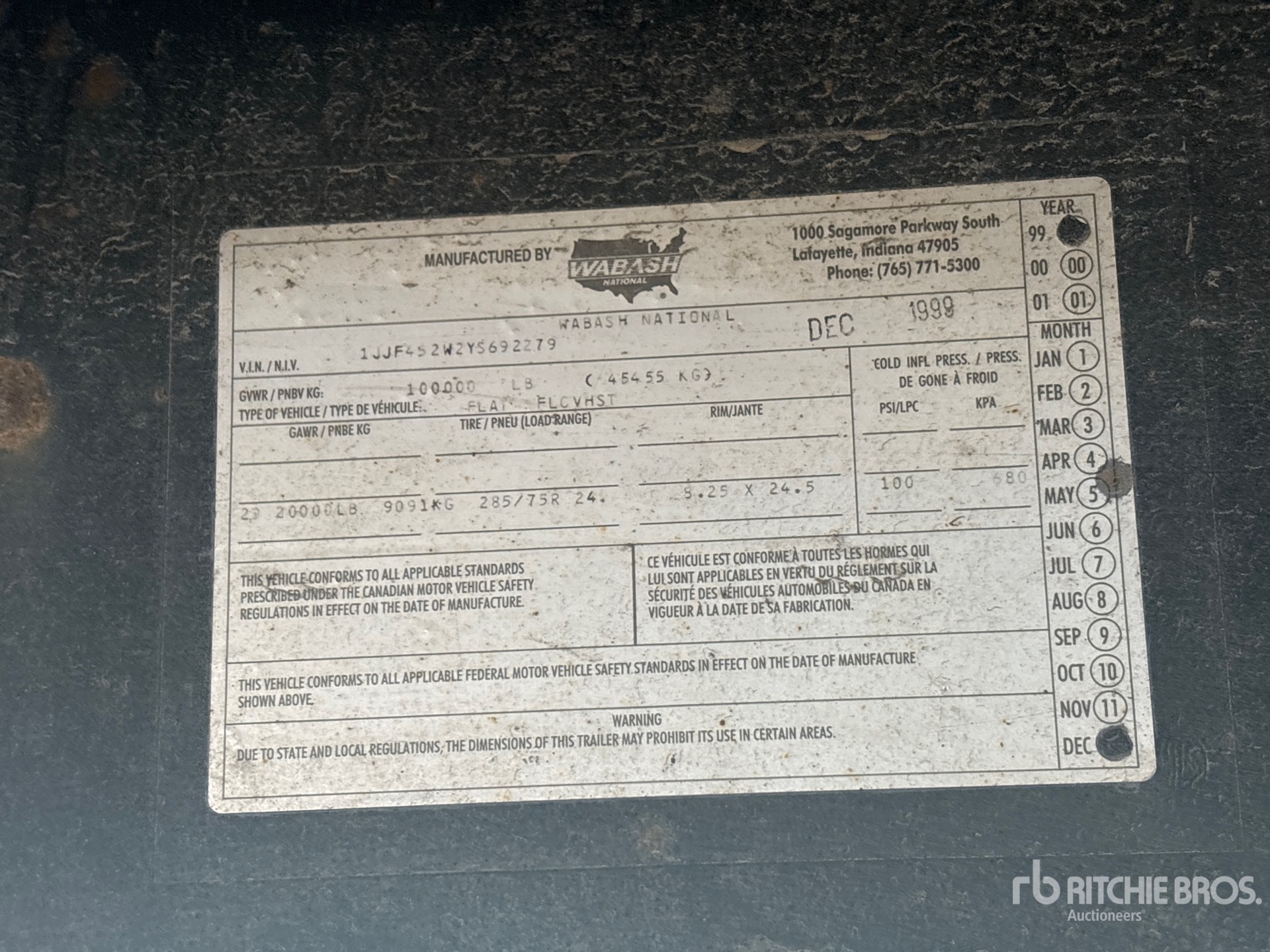 Spring Suspension, 92 in Deck Width, Bulkhead, Wood Flooring, 285/75R24.5 Tires, 100000 lb GVWR