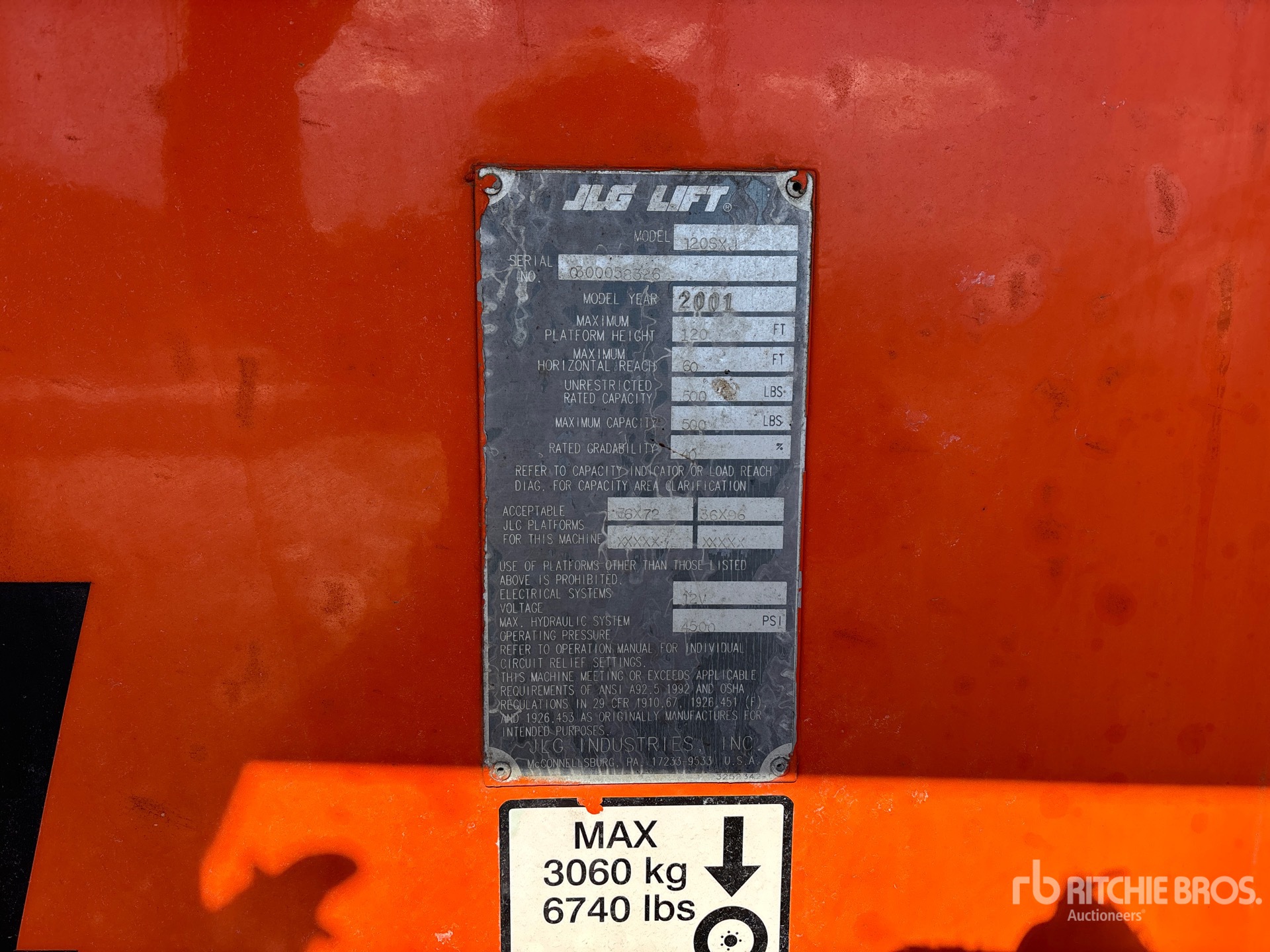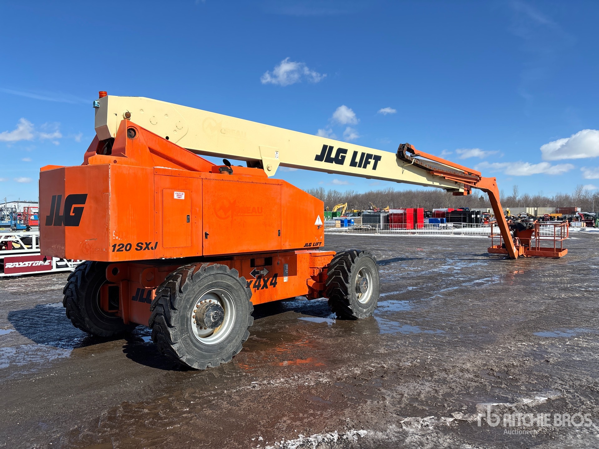 120 ft Max Platform Height, 500 lb Max Weight Capacity, Jib, Extendable Axles, Power to Platform, 2000 US EPA Label, Deutz 4 Cylinder 68 hp 3.7 L Diesel Engine, Foam-Filled Tires