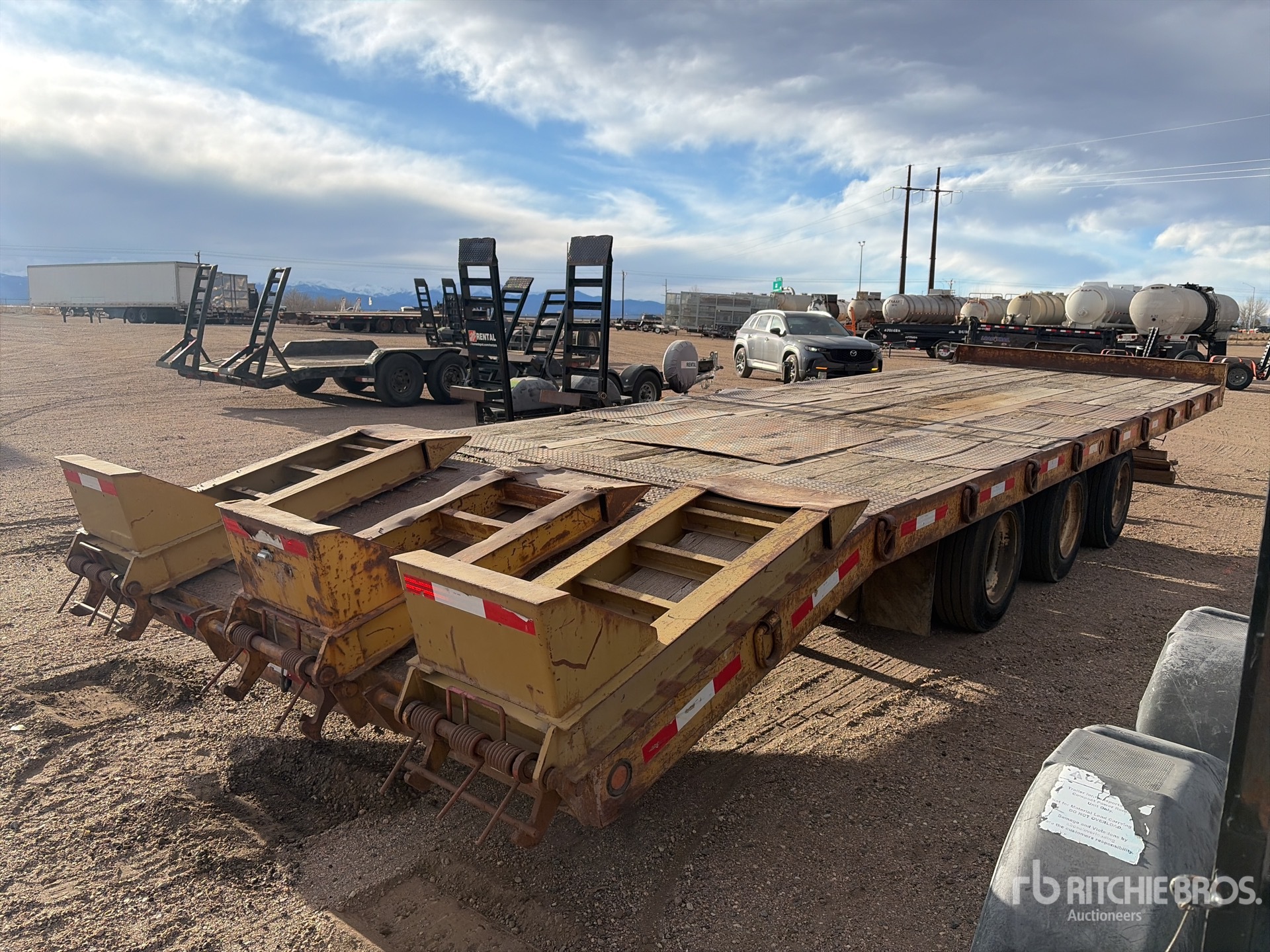 Lunette Ring Hitch, Spring Suspension, 25 ft Main Deck, Fixed Dovetail, 102 in Usable Deck Width, 102 in Overall Deck Width, Deck Over Tires, Manual Ramps, 215/75R17.5 Tires