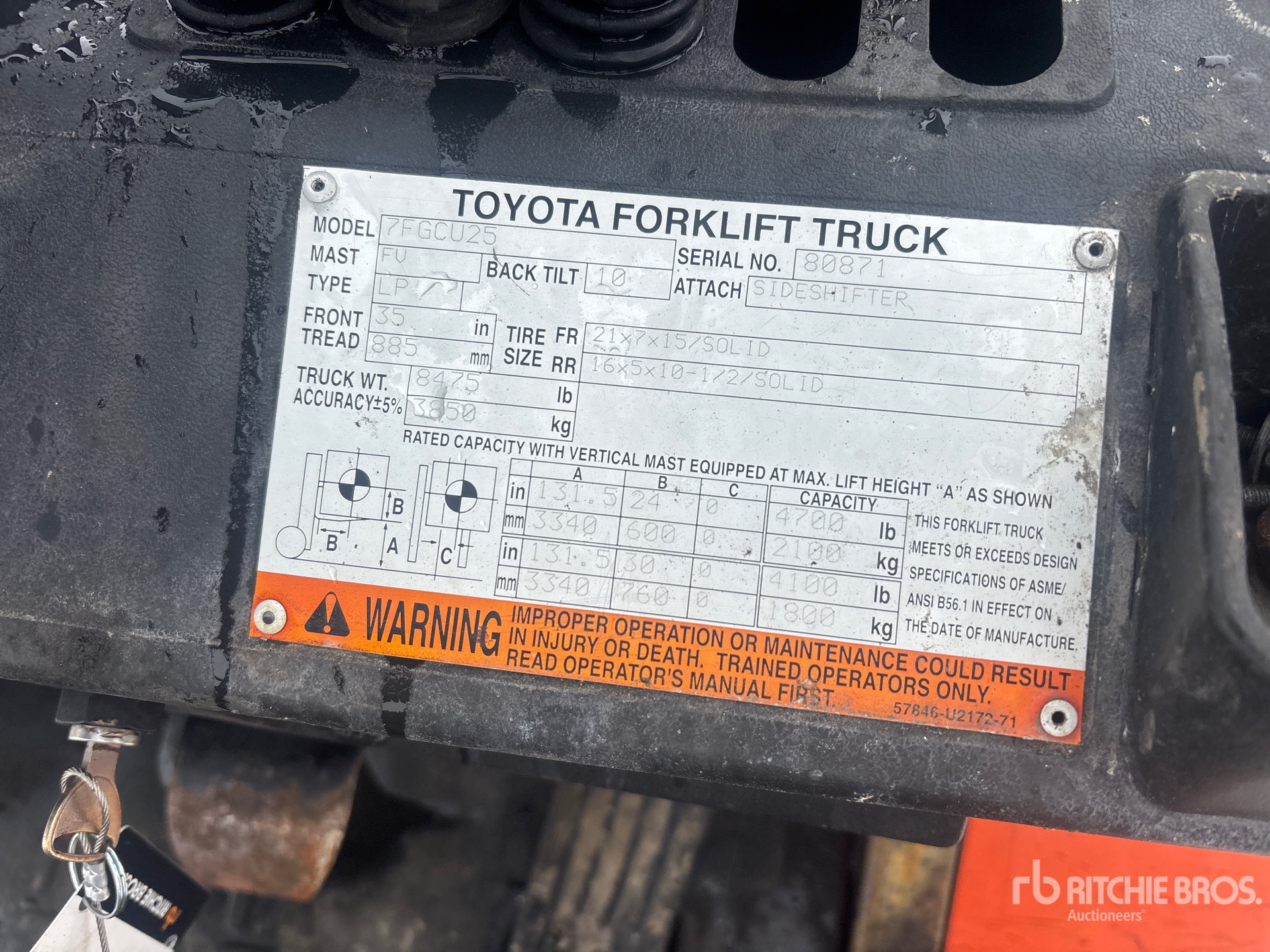 2 Stage Mast, 131.5 in Max Lift Height, 81 in Lowered Mast Height, 42 in Forks, Side Shift, 4 Cylinder LPG Engine