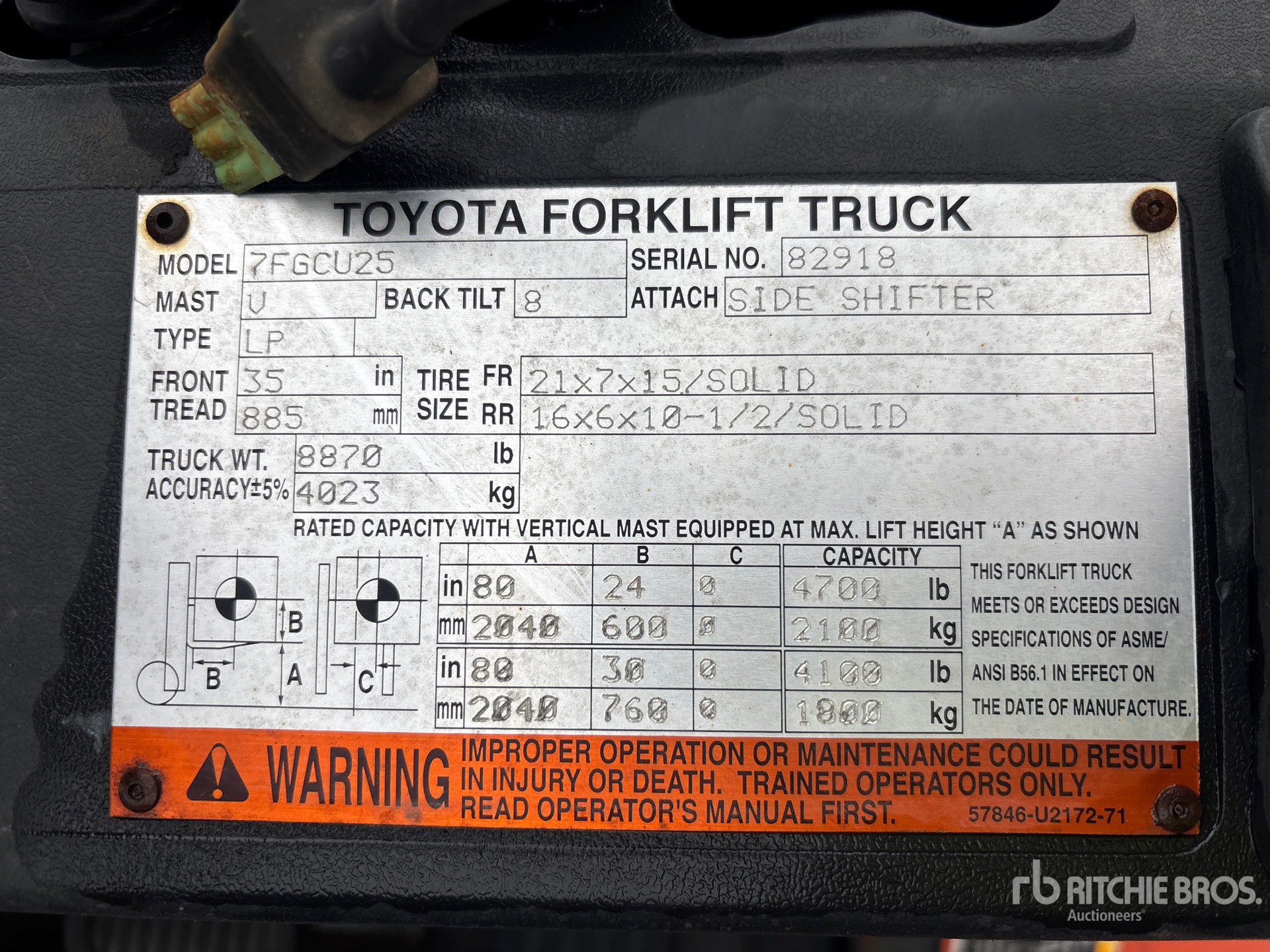 2 Stage Mast, 80 in Max Lift Height, 54 in Lowered Mast Height, Side Shift, LPG Engine