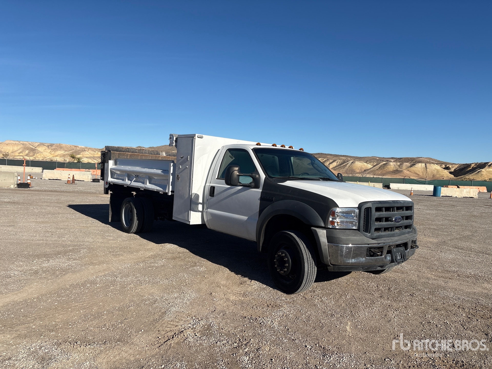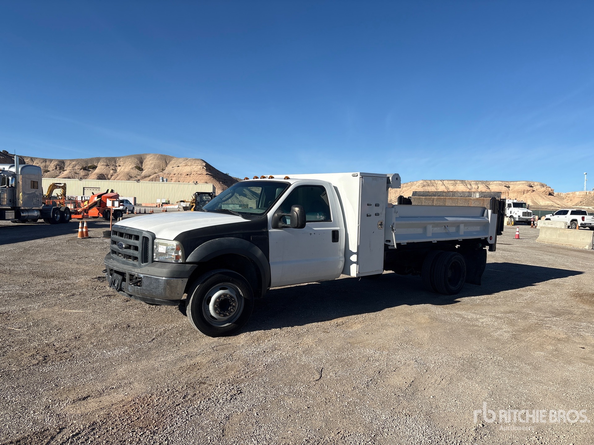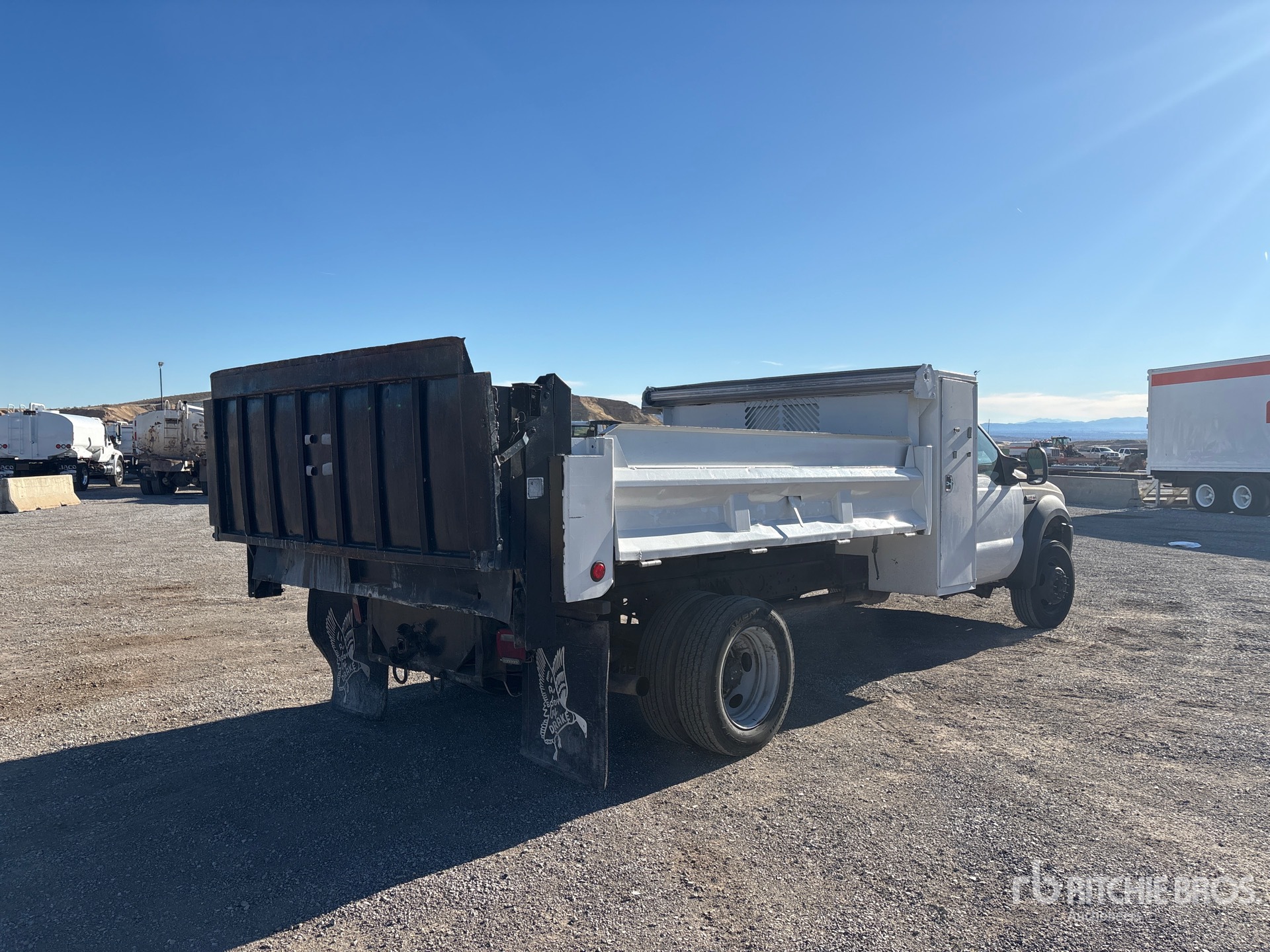 Ford V8 6 L Diesel Engine, 2005 US EPA Label, Automatic Transmission, 6500 lb Front Axle, 12000 lb Rears, 16000 lb GVWR, 245/70R19.5 Front Tires, 225/70R19.5 Rear Tires, Spring Suspension, 189 in Wheelbase, 150 in Long x 65 in High Steel Body, Manual Roll Tarp, Ringfeder