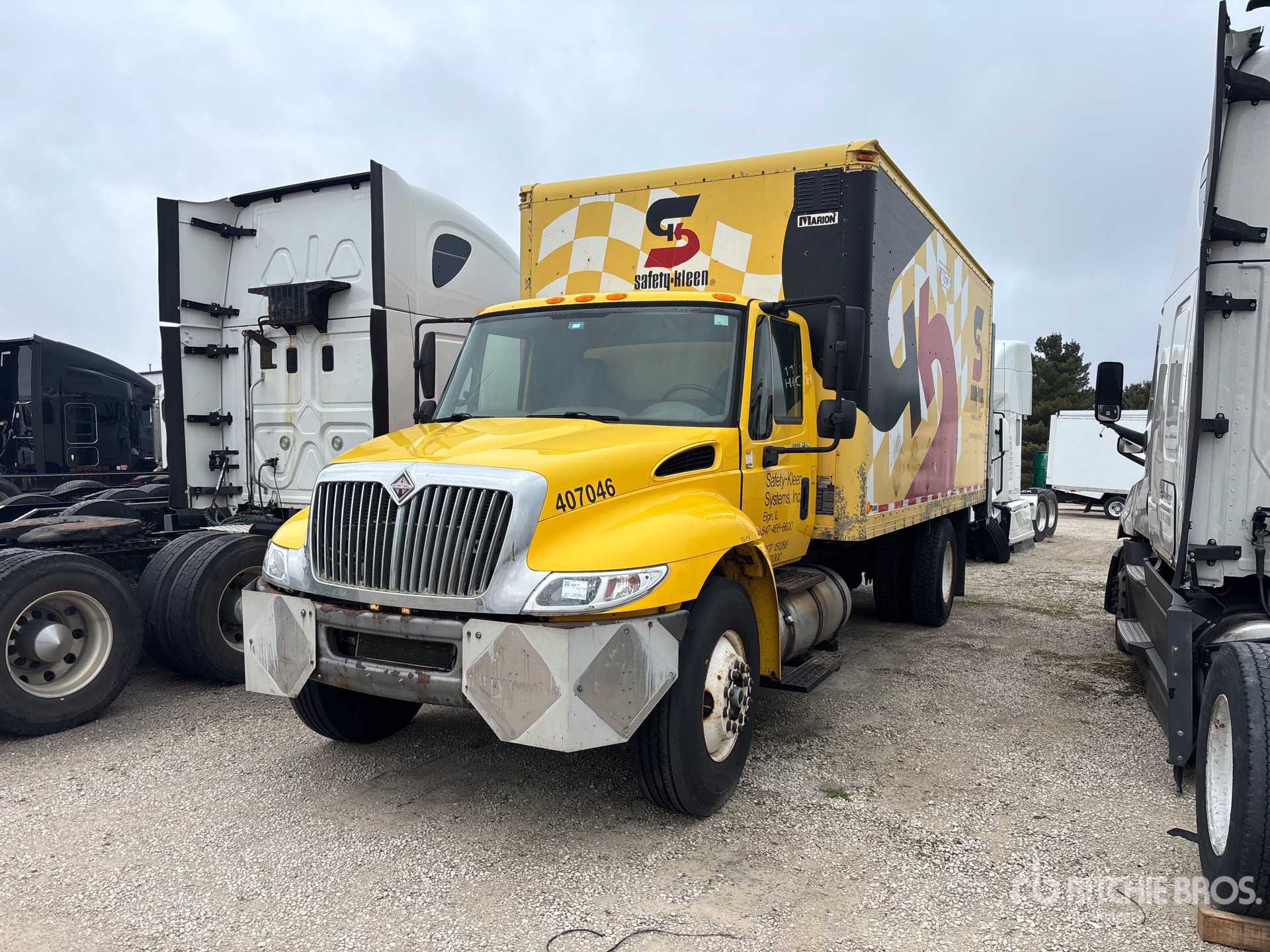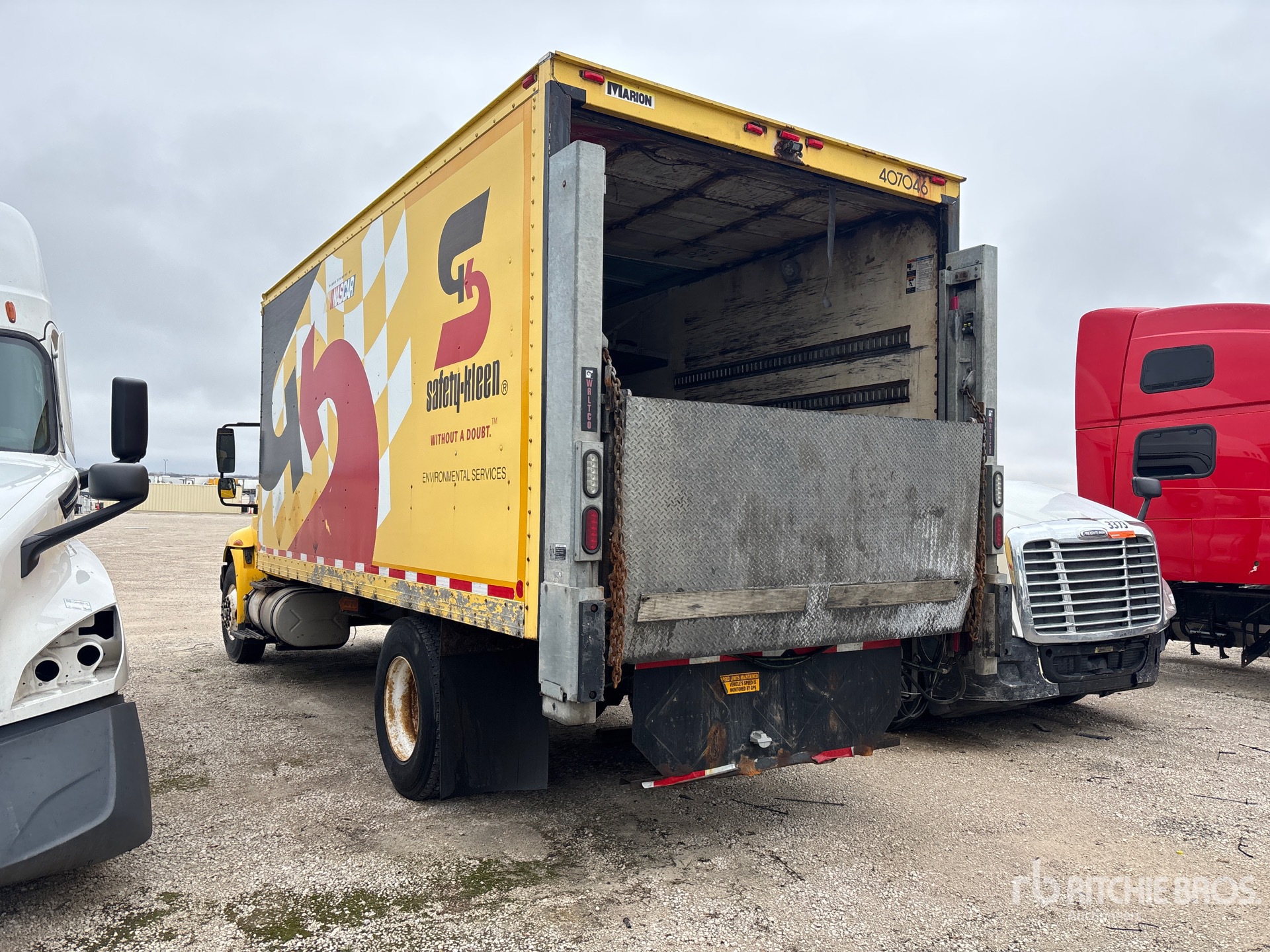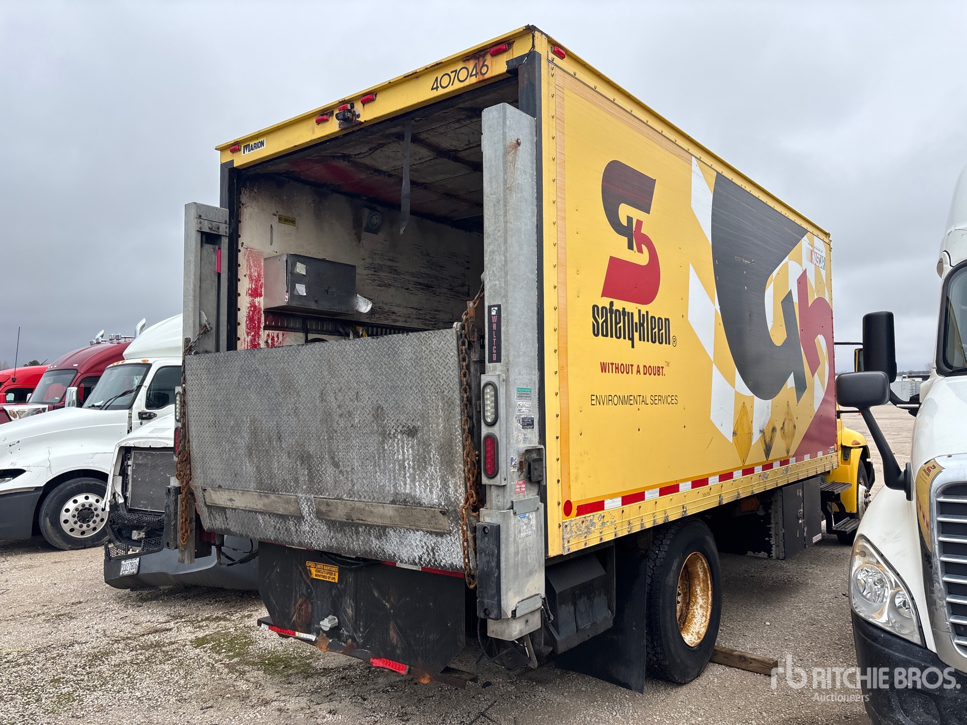 Navistar 6 Cylinder Diesel Engine, 23671 Engine hrs, 12000 lb Front Axle, 21000 lb Rears, 33000 lb GVWR, 12R22.5, Spring Suspension, 218 in Wheelbase, Marion 18 ft x 102 in Wide x 91 in High Body, Liftgate