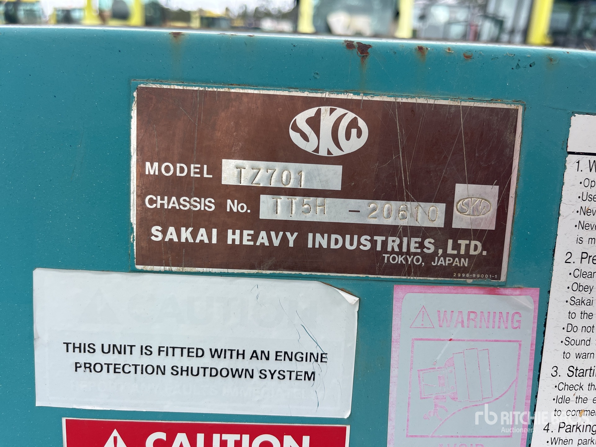 Szczegółowe informacje o sprzęcie mają ograniczony zakres, a firma Ritchie Bros. Auctioneers nie sprawdzała żadnych aspektów ani komponentów urządzenia innych niż wyraźnie określone w niniejszym dokumencie. O ile nie zostało to wyraźnie stwierdzone, nie składamy żadnych oświadczeń ani gwarancji, wyraźnych lub dorozumianych, dotyczących sprzętu lub jego komponentów, w tym między innymi oświadczeń lub gwarancji dotyczących funkcjonalności lub zgodności z jakąkolwiek normą bezpieczeństwa bądź wymogami jakiegokolwiek właściwego organu lub organu regulacyjnego, przydatności do określonego celu lub przydatności handlowej. Zdecydowanie zaleca się przeprowadzenie własnej szczegółowej inspekcji sprzętu przed złożeniem oferty.