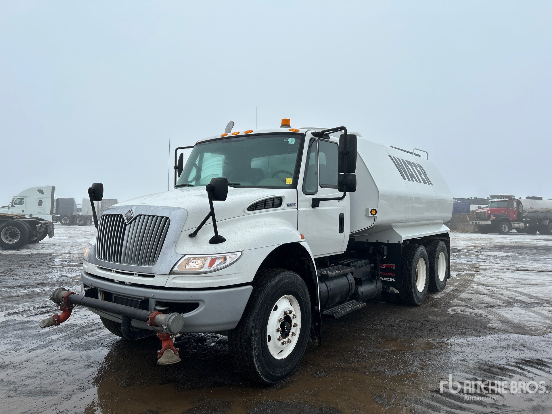 International MaxxForce 9 6 Cylinder 9.3 L Diesel Engine, 13134 Engine hrs, Allison Automatic Transmission, Differential Lock, 14000 lb Front Axle, 40000 lb Rears, 54000 lb GVWR, Steel, 315/80R22.5 Front Tires, 11R22.5 Rear Tires, Air Ride Suspension, 274 in Wheelbase, 2016 United Truck & Equipment 4000 gal Steel Tank, PTO Driven Pump, 5 ft 11 in, Spray Bar, Hose Reel, Front Spray, Rear Spray, Side Spray