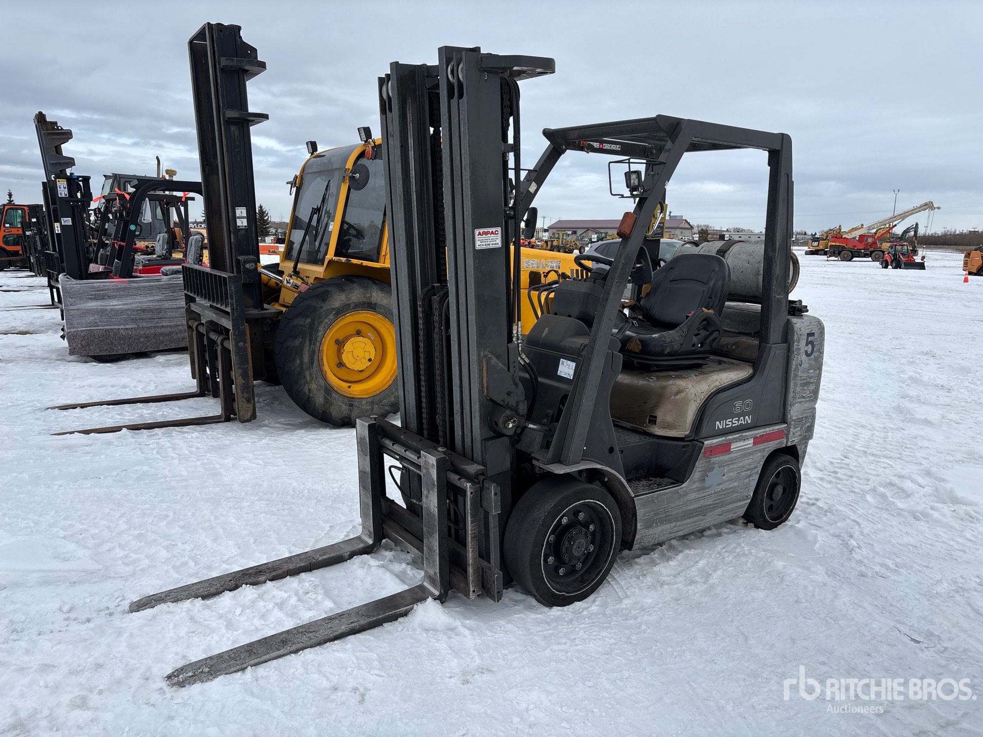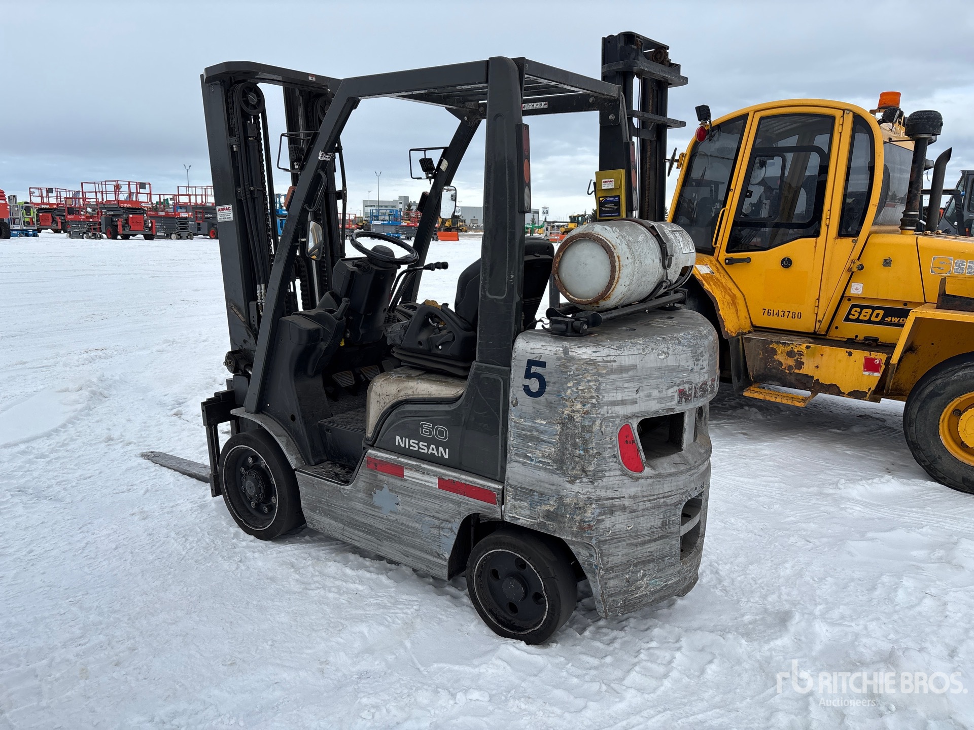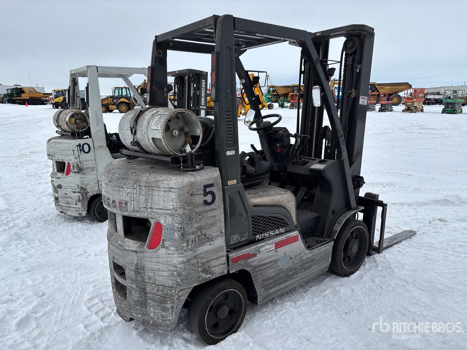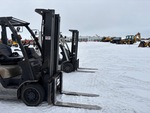 3 Stage Mast, 187 in Max Lift Height, 86 in Lowered Mast Height, 42 in Forks, Side Shift, Solid Pneumatic Tires, 2008 US EPA Label, CARB Compliant, Nissan 8NXSB02.548C 4 Cylinder 2.5 L LPG Engine