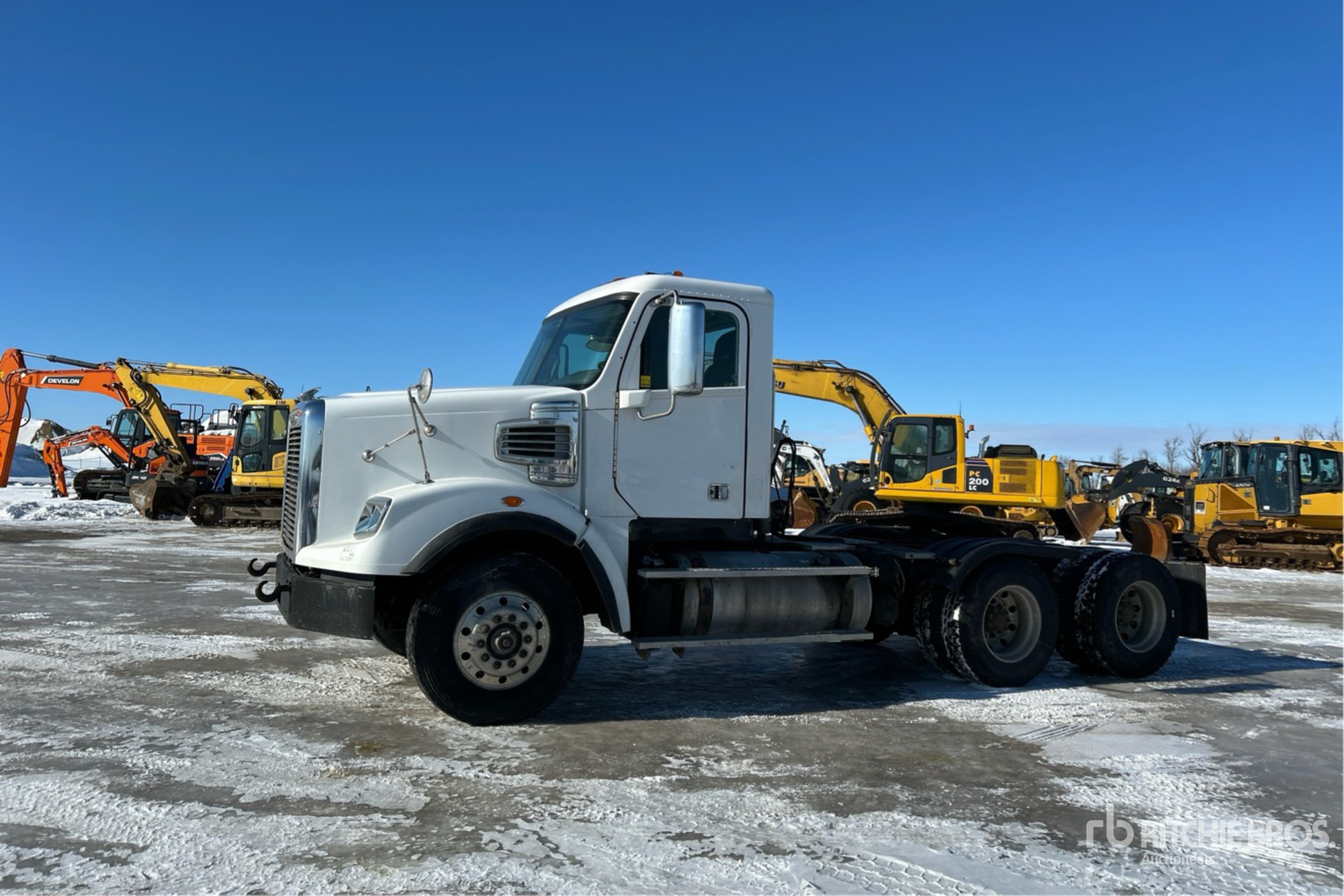 Located in Lane 11 Spot 3, Detroit DD15 Engine, 3157 Engine hrs, Eaton Fuller RTLO-18918B 18-Speed Manual Transmission, 16000 lb Front Axle, 46000 lb Rears, 62000 lb GVWR, Engine Brake, Differential Lock, 185 in Wheelbase, Air Suspension, Aluminum Wheels, 315/80R22.5 Front Tires, 11R22.5 Rear Tires, Air Sliding 5th Wheel