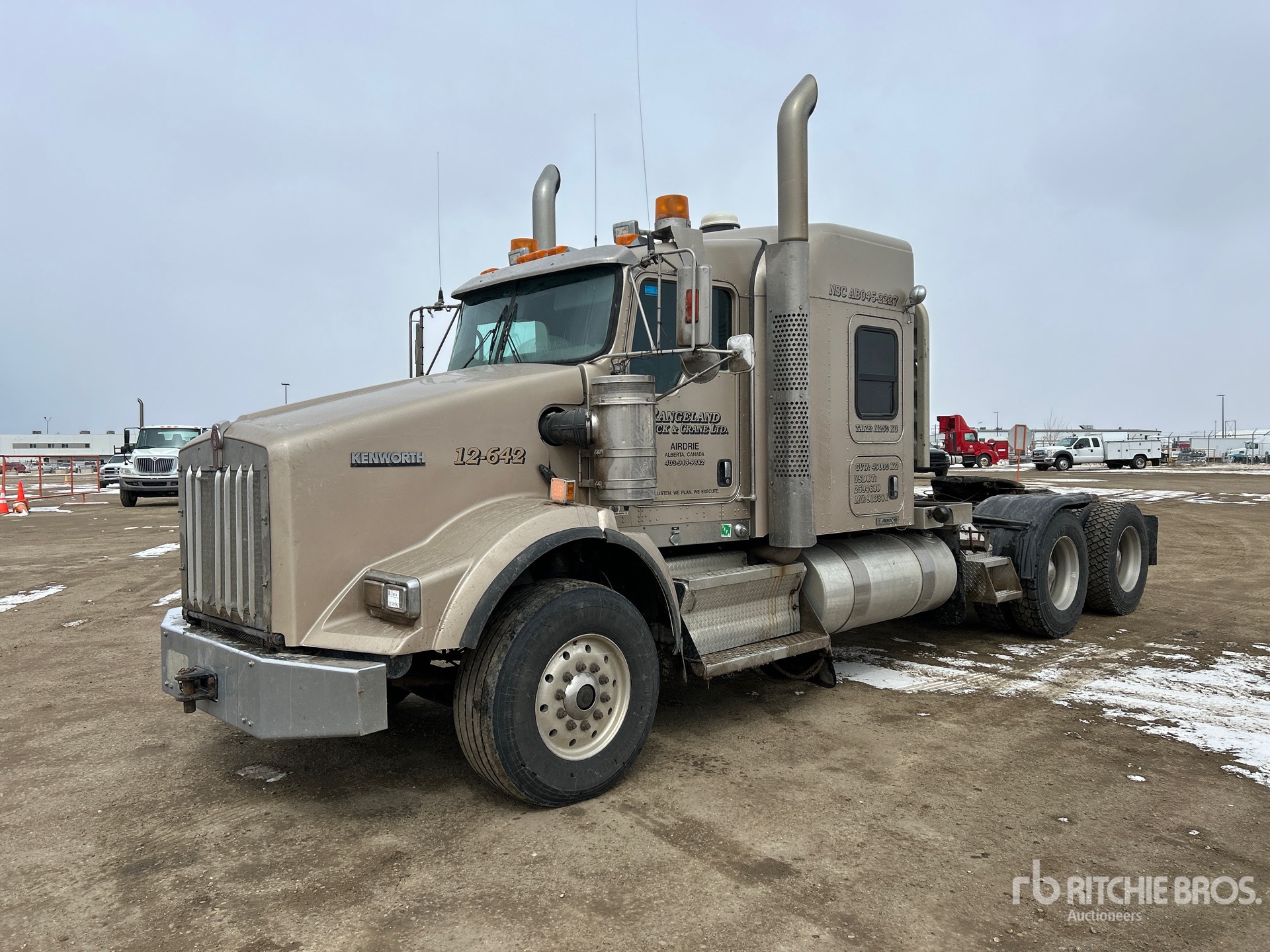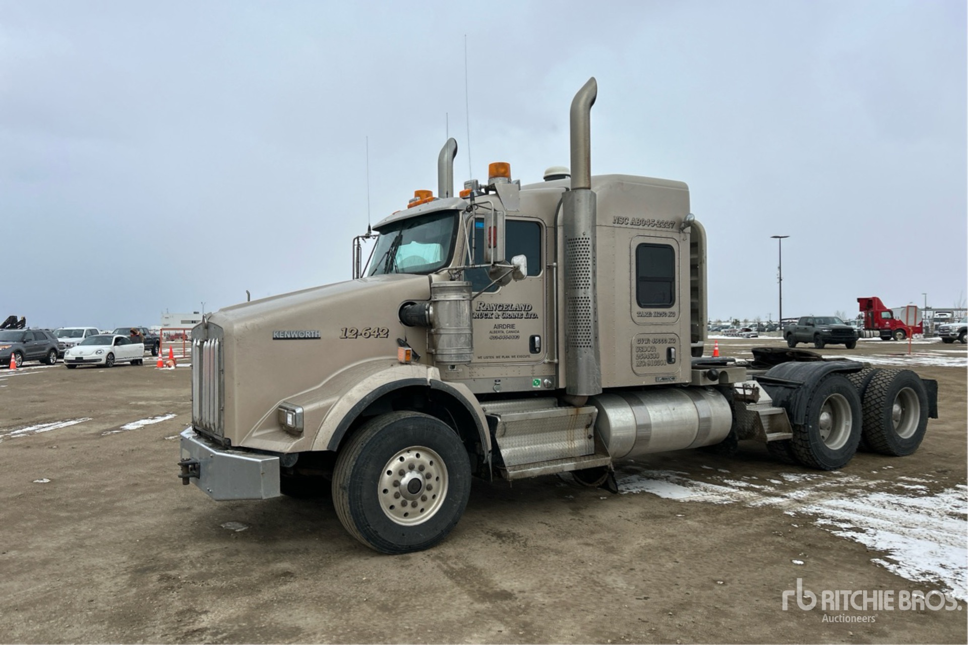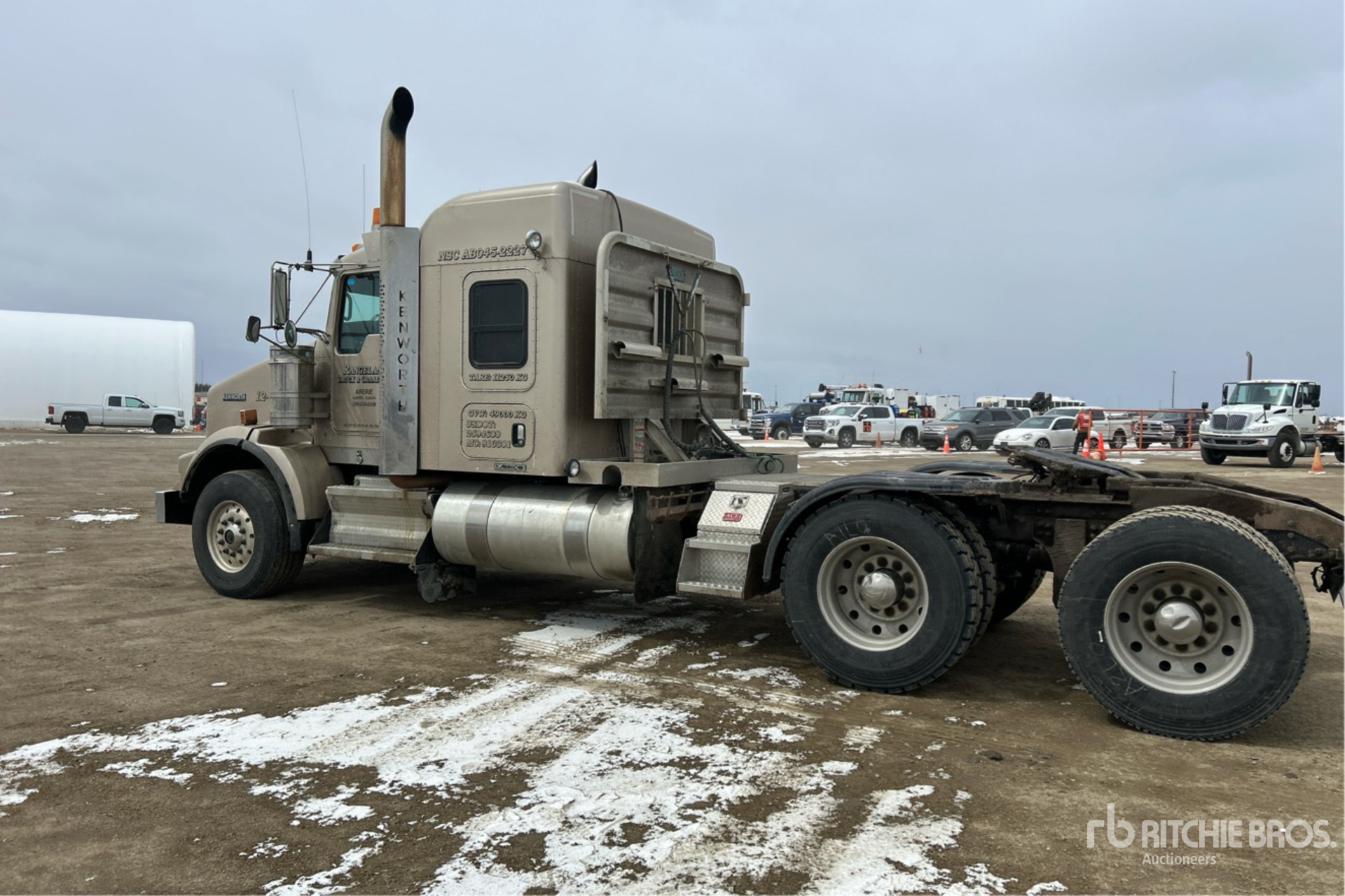 Cummins ISX15 525 hp Engine, Positive Air Shutoff, 2011 US EPA Label, 19983.9 Engine hrs, Eaton Fuller RTLO-18718B 18-Speed Manual, 7258 kg Front Axle, Dana D46-170HP Drive Axles, 4.10:1 Axle Ratio, 20866 kg Rears, 28123 kg GVWR, Engine Brake, Double Differential Locks, 50 in Mid Roof Sleeper Cab, 244 in Wheelbase, Air Suspension, Aluminum Wheels, 385/65R22.5 Front Tires, 11R24.5 Rear Tires, Air Sliding 5th Wheel, Dual Fuel Tanks, Lowboy Ramps, Neway Suspension, Full Lockers, Air Conditioning