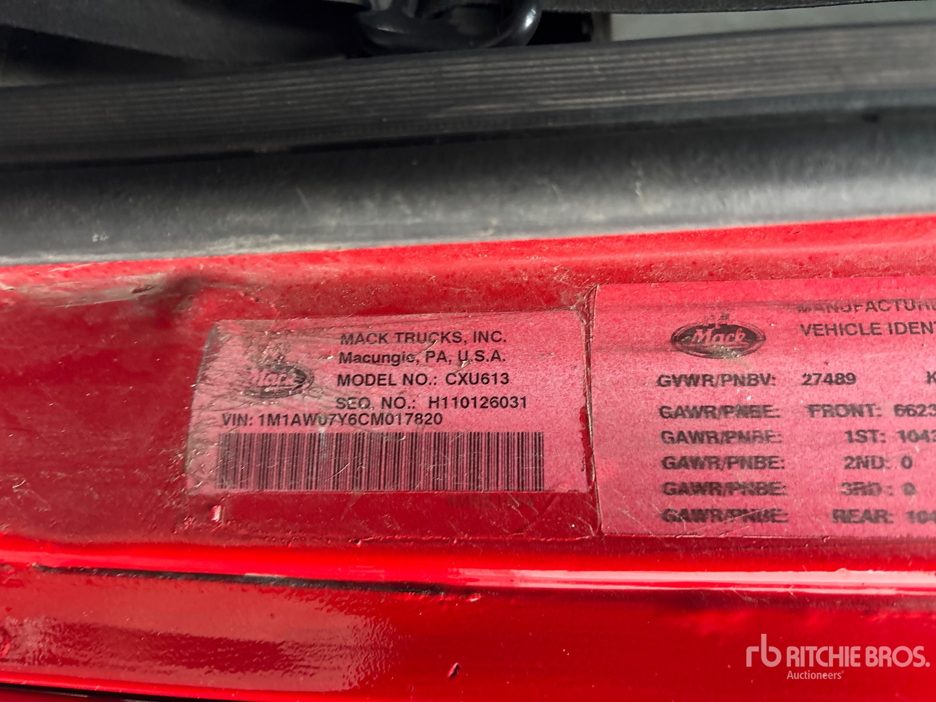 Mack MP8 505 hp Engine, 2011 US EPA Label, 19784 Engine hrs, Automatic Transmission, 6623 kg Front Axle, 20866 kg Rears, 27489 kg GVWR, Engine Brake, Differential Lock, 228 in Wheelbase, Air Suspension, 11R22.5, Wet Kit, Air Sliding 5th Wheel, Dual Fuel Tanks
