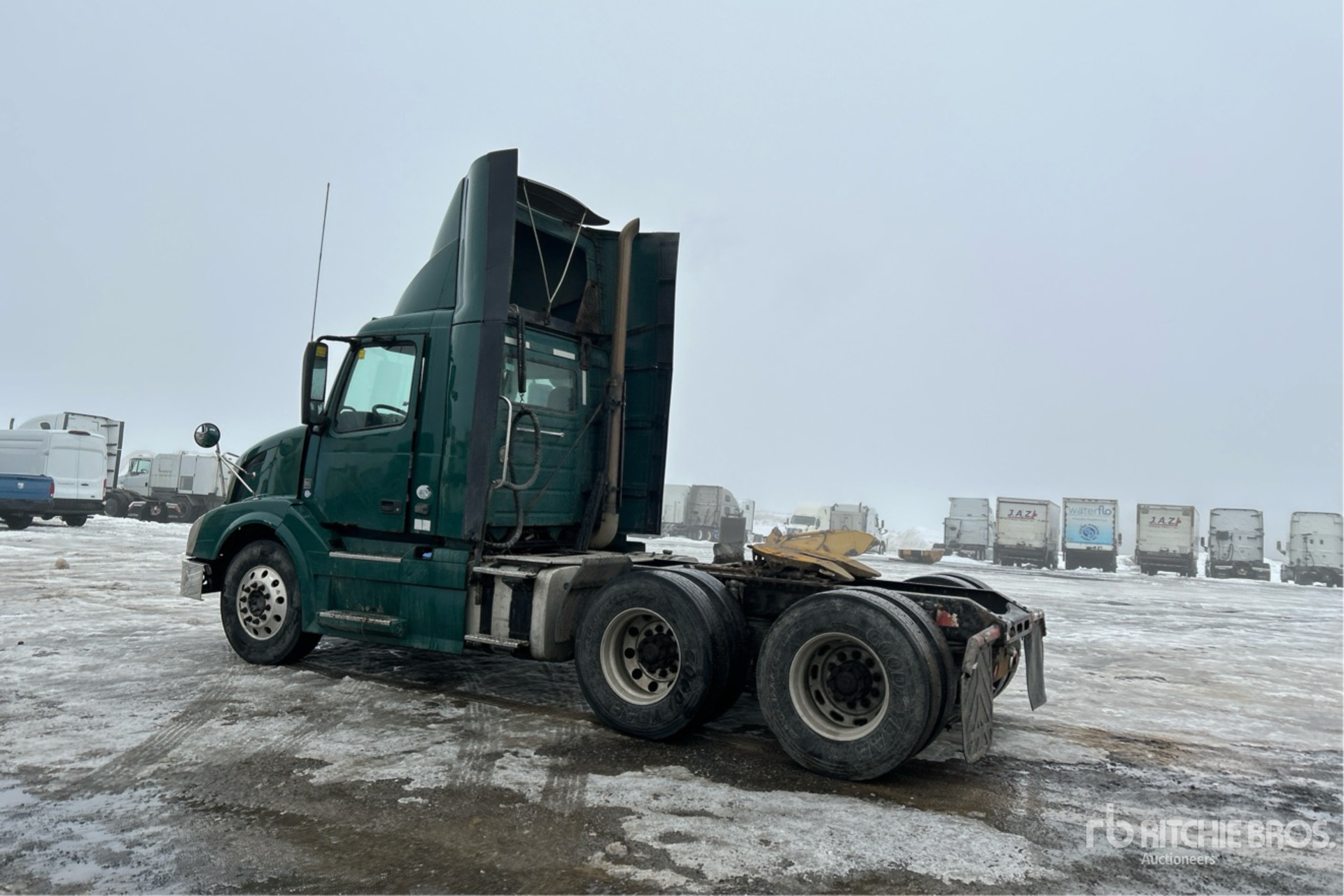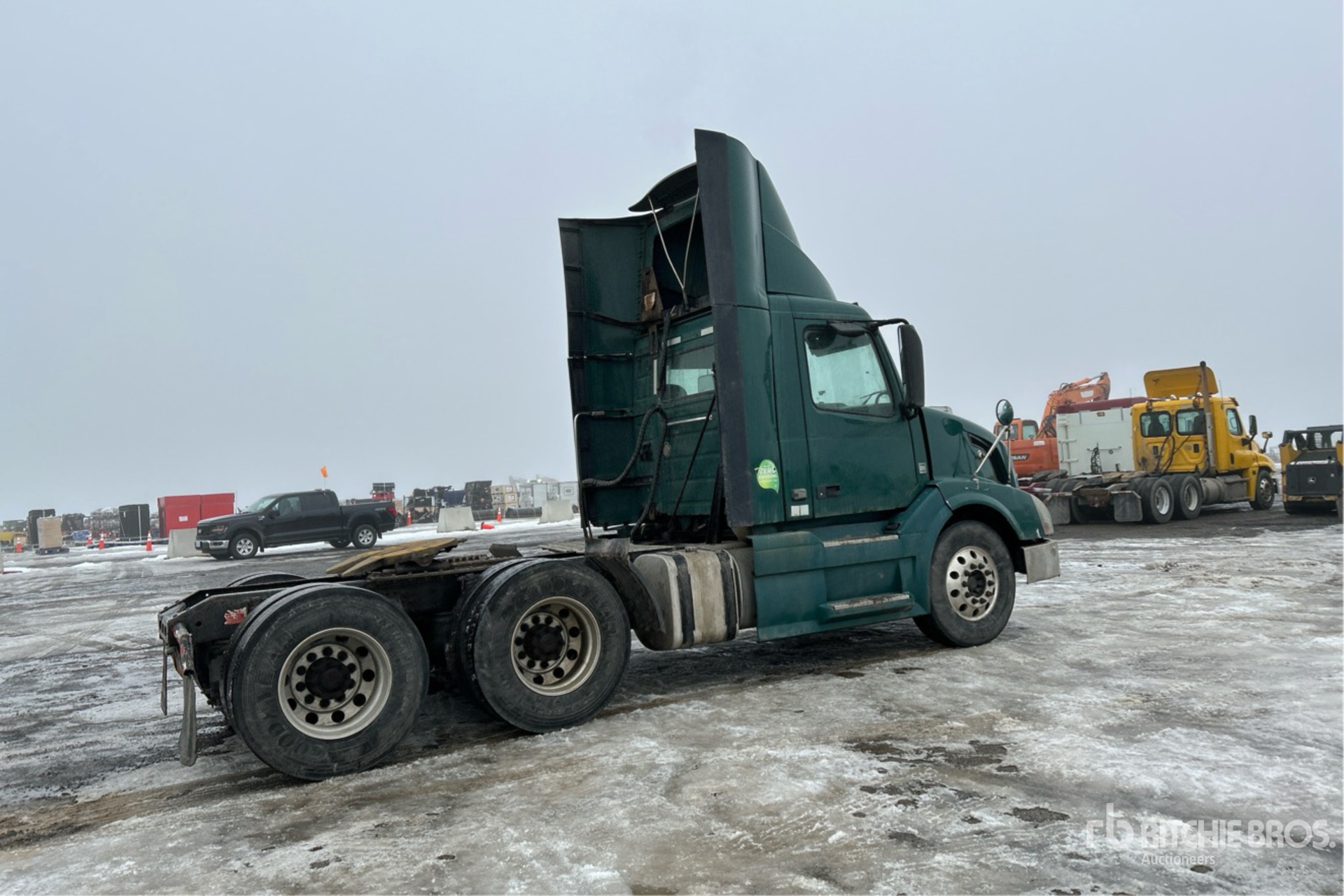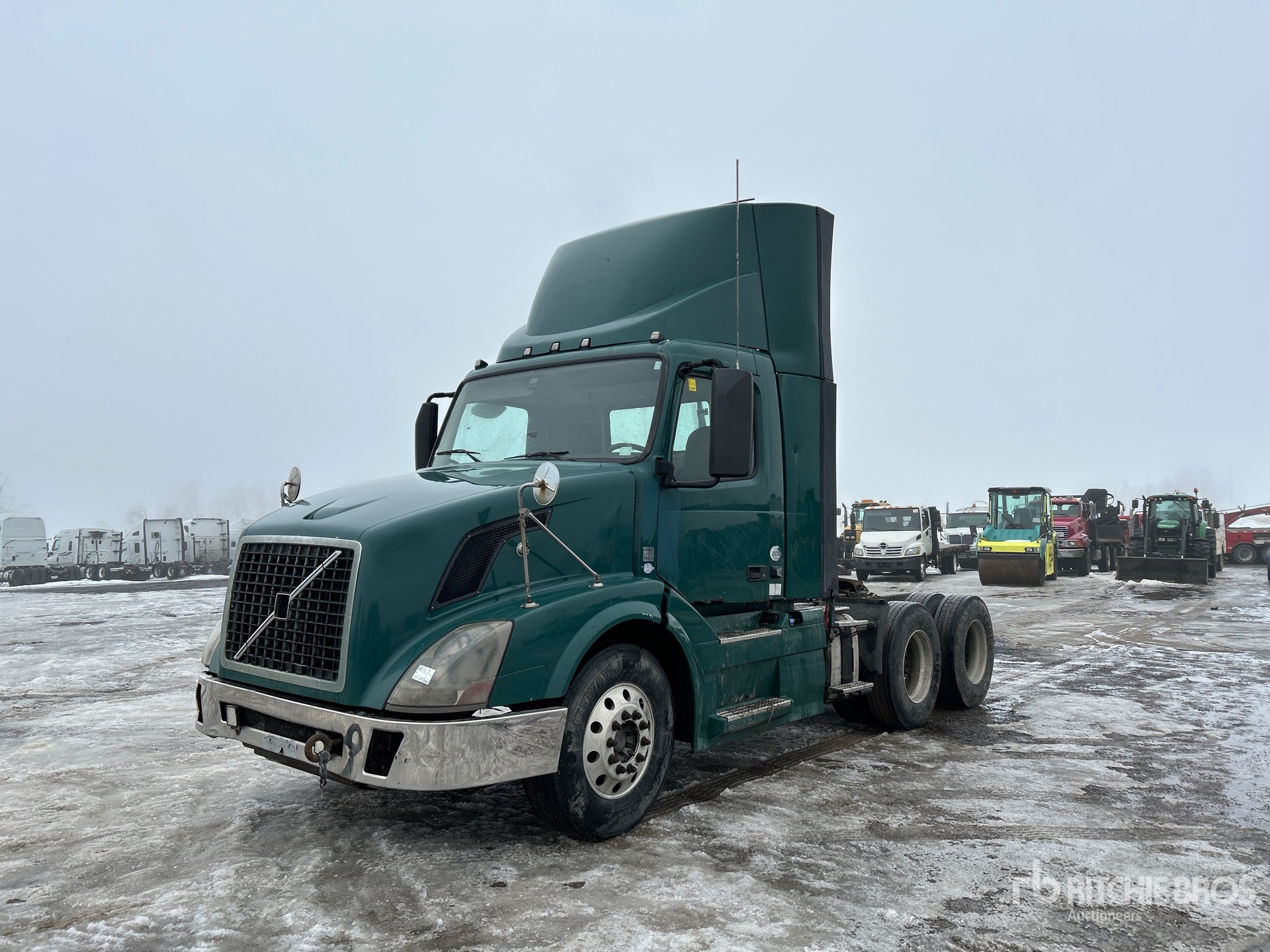 Volvo D11H 385 hp Engine, 2011 US EPA Label, 28139 Engine hrs, Volvo Automated Transmission, 12350 lb Front Axle, 40000 lb Rears, 52350 lb GVWR, Engine Brake, 172 in Wheelbase, Air Suspension, Aluminum Outer Wheels, 11R22.5, Air Sliding 5th Wheel, Dual Fuel Tanks