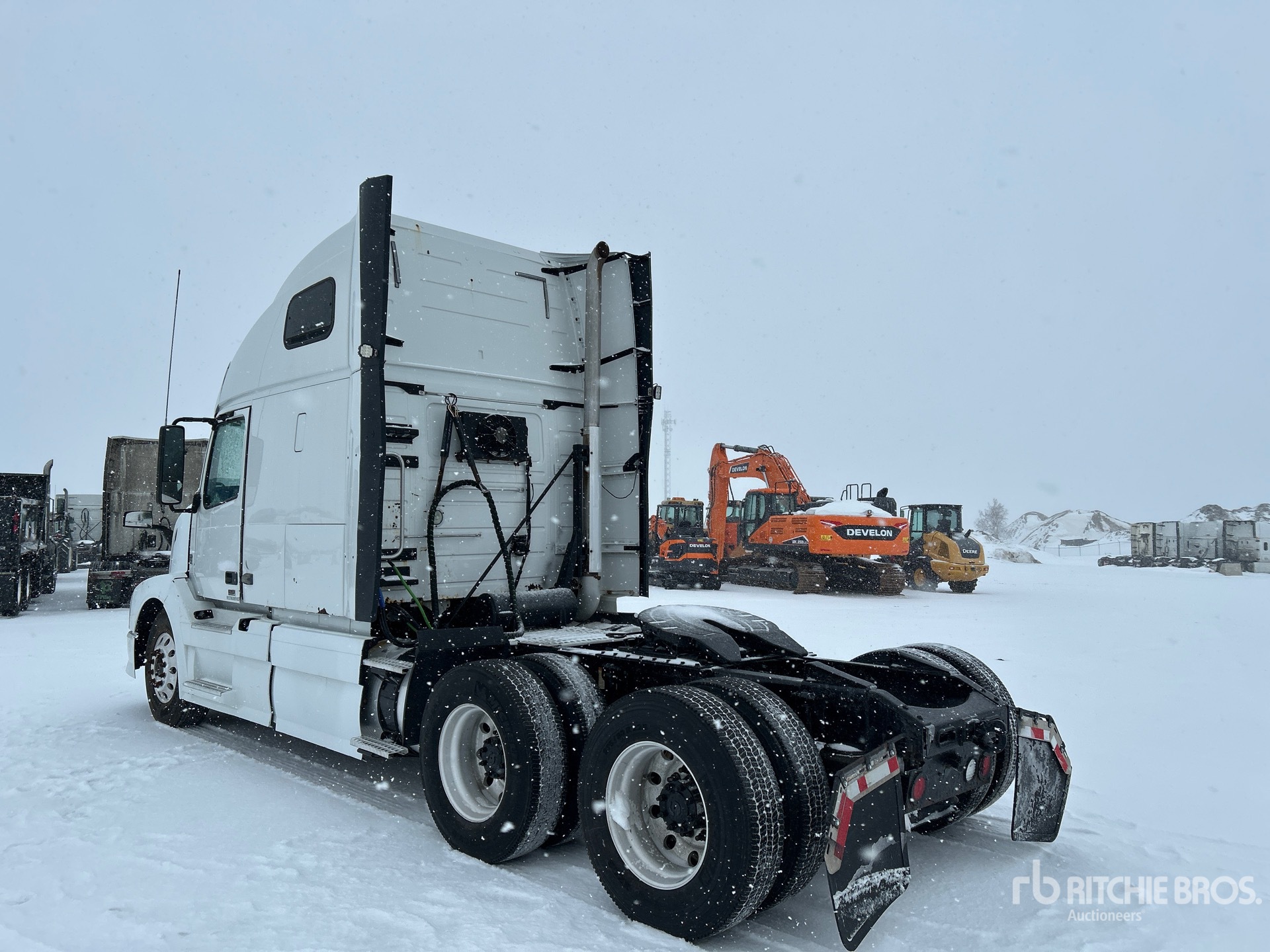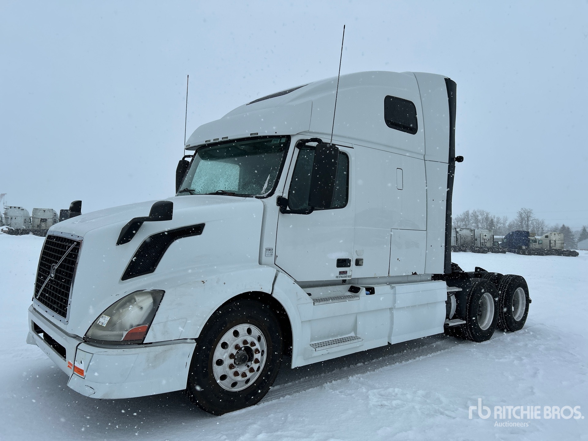 Volvo D13H 455 hp Engine, 2011 US EPA Label, 22955 Engine hrs, Volvo ATO2612D 12-Speed Automated Transmission, 12350 lb Front Axle, 40000 lb Rears, 52350 lb GVWR, Engine Brake, 61 in High Rise Sleeper Cab, 211 in Wheelbase, Air Suspension, Aluminum Outer Wheels, 11R22.5 Front Tires, 275/80R22.5 Rear Tires, Air Sliding 5th Wheel, Dual Fuel Tanks