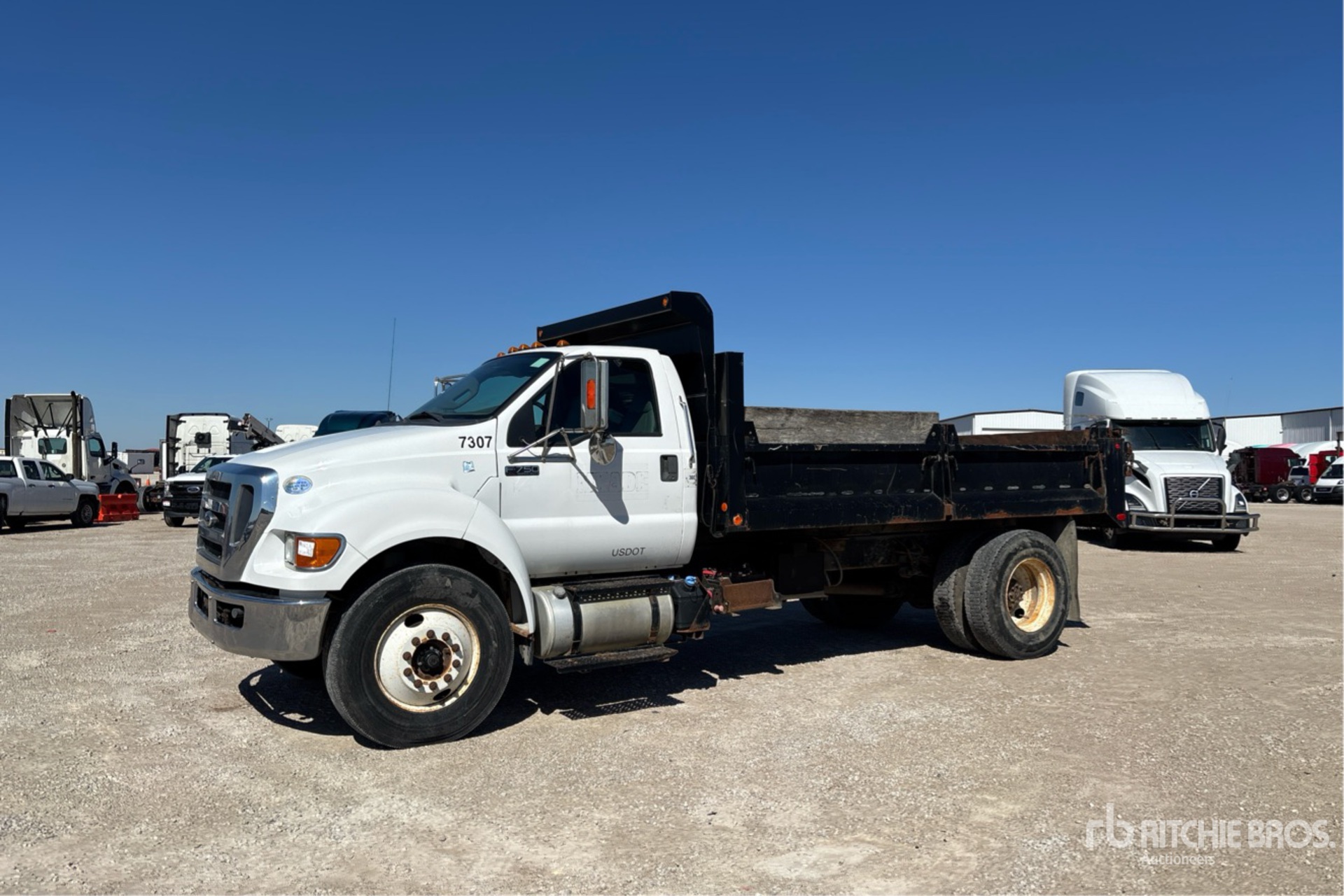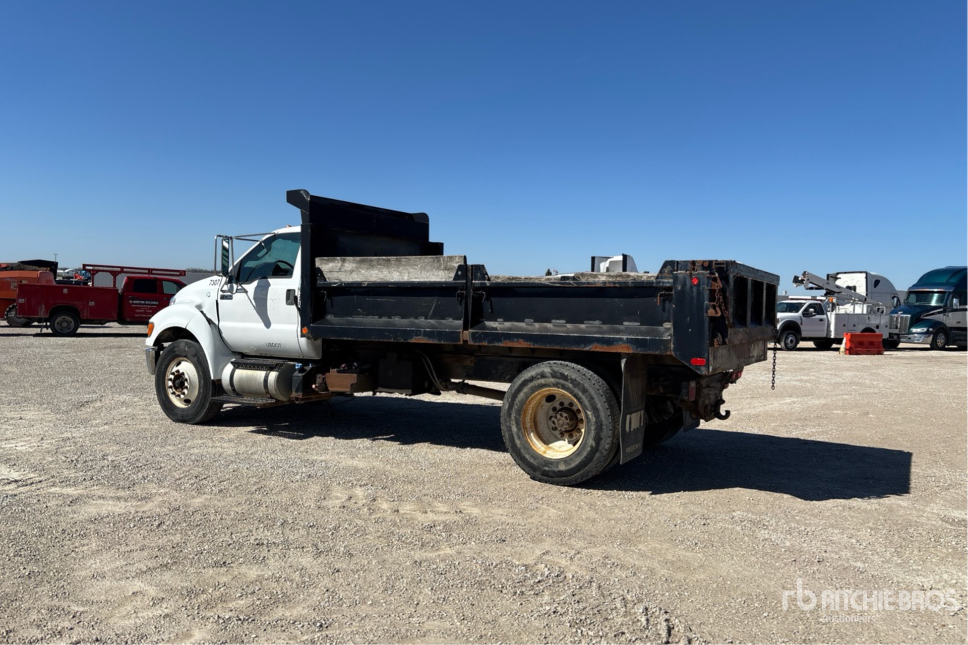 Cummins ISB 6.7 280 6 Cylinder 6.7 L Diesel 280 hp Engine, 2013 US EPA Label, CARB Compliant, Requires Diesel Exhaust Fluid, 4875 Engine hrs, Allison 6-Speed Automatic Transmission, 13200 lb Front Axle, 21000 lb Rears, 6.14:1 Axle Ratio, 33000 lb GVWR, 11R22.5, Spring Suspension, 242 in Wheelbase, PTO, Hydraulic System, Galion Godwin 13 ft 6 in Long x 1 ft 6 in High Steel Body, Pintle Hitch