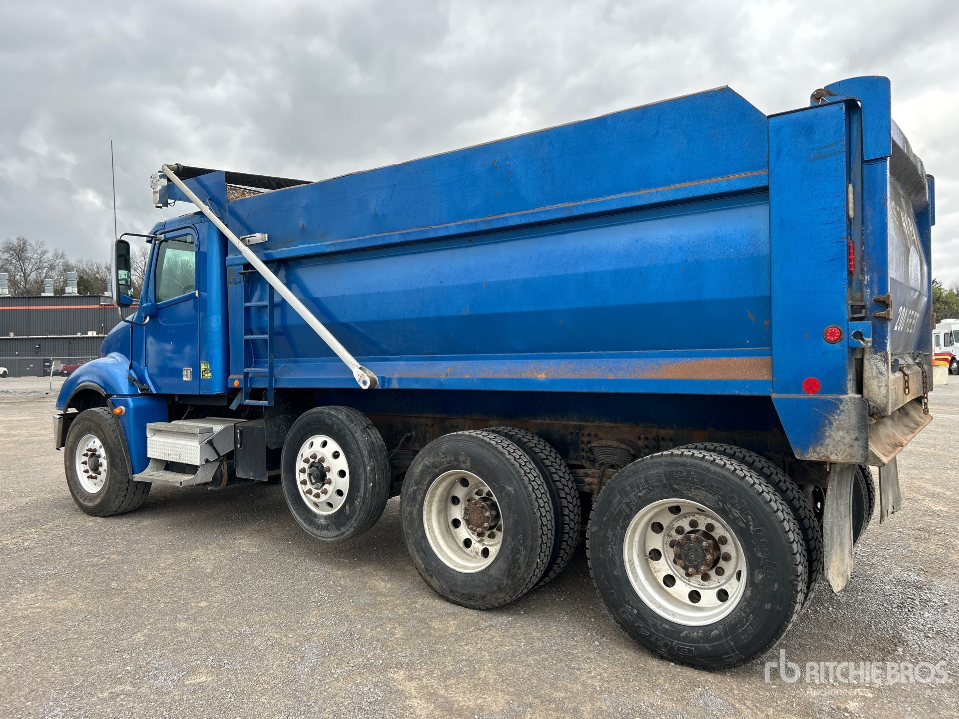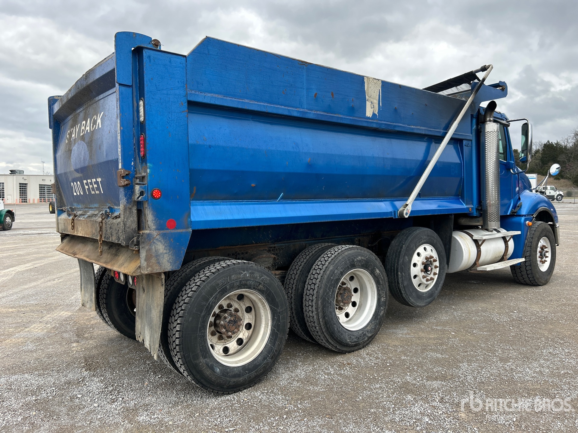 Cummins ISM-370 6 Cylinder Diesel Engine, 2012 US EPA Label, 23271 Engine hrs, Engine Brake, Eaton Fuller 10-Speed Manual Transmission, Differential Lock, 20000 lb Front Axle, 52350 lb Rears, Meritor Drive Axles, 4.30:1 Axle Ratio, 72350 lb GVWR, Air Ride Cab, Aluminum Wheels, 425/65R22.5 Front Tires, 11R24.5 Rear Tires, Steerable Air Lift Pusher Axle, Dual Steering Boxes, Double Frame, Spring Suspension, 215 in Wheelbase, Beau Roc 16 ft Long x 59 ft High Steel Body, Electric Roll Tarp