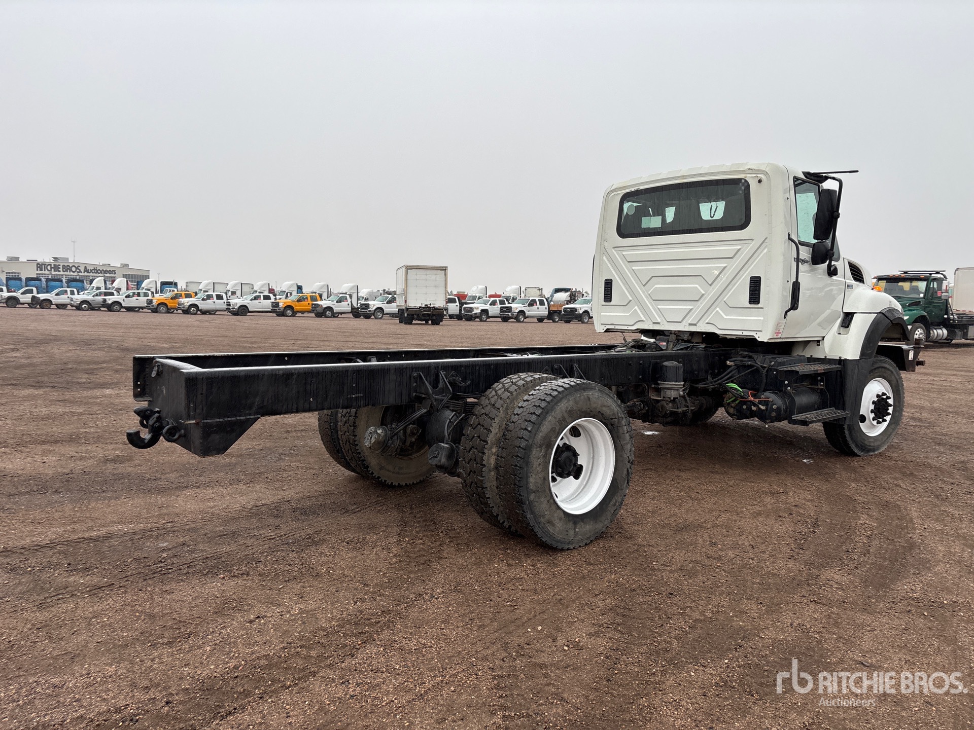 International 6 Cylinder 7.6 L Diesel Engine, Eaton Fuller Manual Transmission, Differential Lock, 12000 lb Front Axle, 21000 lb Rears, 33000 lb GVWR, Air Ride Cab, 11R22.5 Front Tires, 205/75R17.5 Rear Tires, Spring Suspension, 176 in Wheelbase, PTO, 102 in Cab to Axle, 185 in Cab to End of Frame, Pintle Hitch