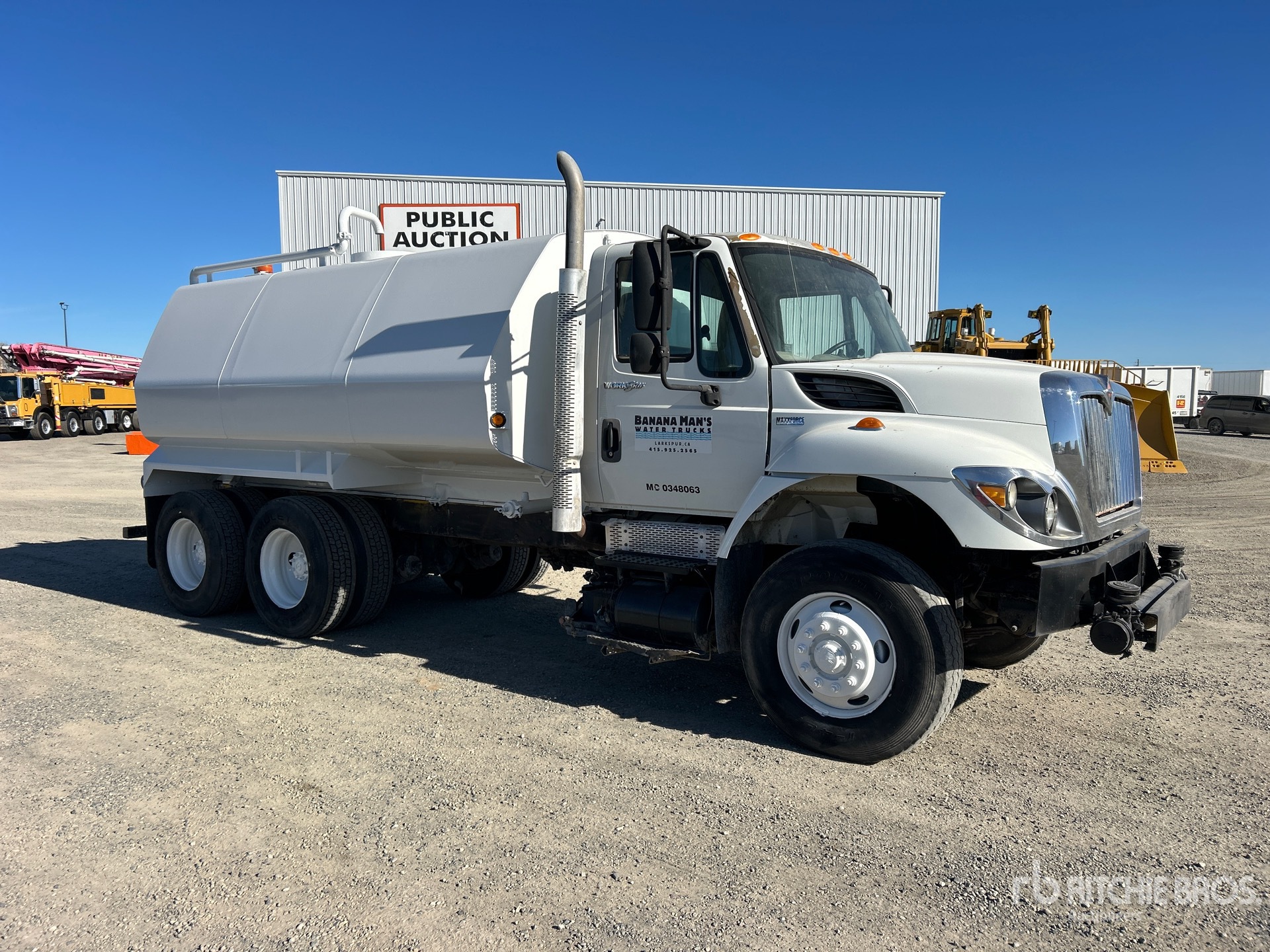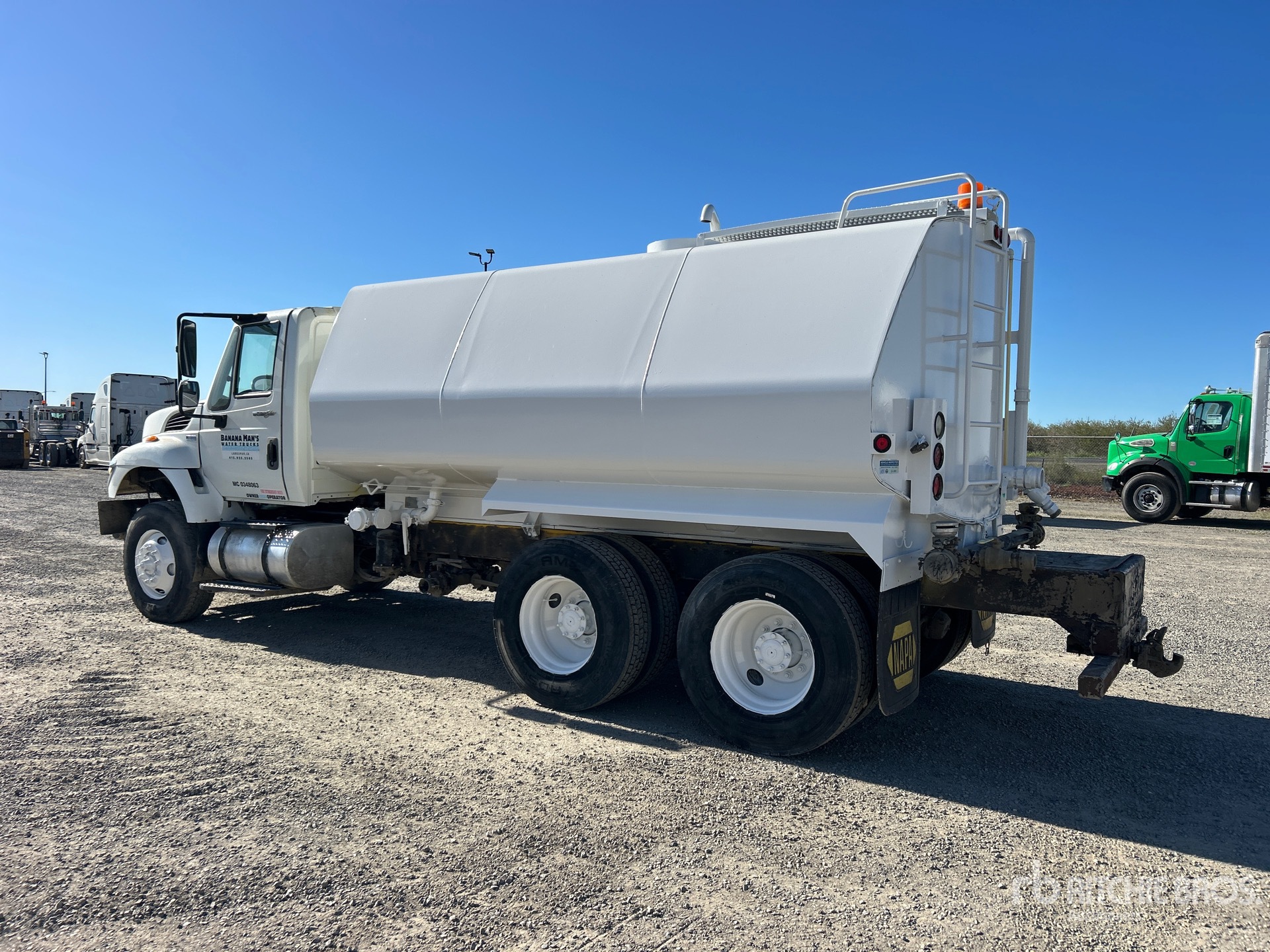 International 6 Cylinder Diesel Engine, 10204 Engine hrs, Eaton Fuller 10-Speed Manual Transmission, 16000 lb Front Axle, 40000 lb Rears, 56000 lb GVWR, Air Ride Cab, 315/80R22.5 Front Tires, 11R22.5 Rear Tires, Dual Steering Boxes, Hendrickson Suspension, 198 in Wheelbase, 2013 4000 gal Steel Tank, PTO Driven Pump, Front Spray, Rear Spray, Side Spray