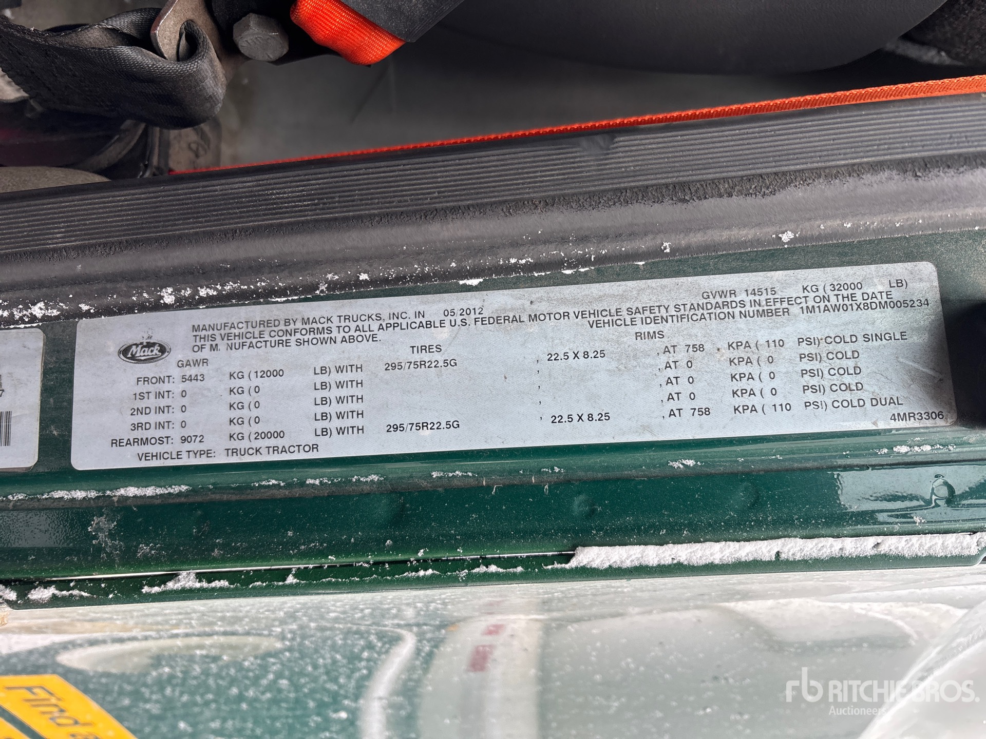 Mack MP7 395 hp Engine, 2012 US EPA Label, Eaton Fuller 10-Speed Manual Transmission, 12000 lb Front Axle, 20000 lb Rears, 32000 lb GVWR, 156 in Wheelbase, Air Suspension, 275/80R22.5 Front Tires, 295/75R22.5 Rear Tires, Air Sliding 5th Wheel, Dual Fuel Tanks