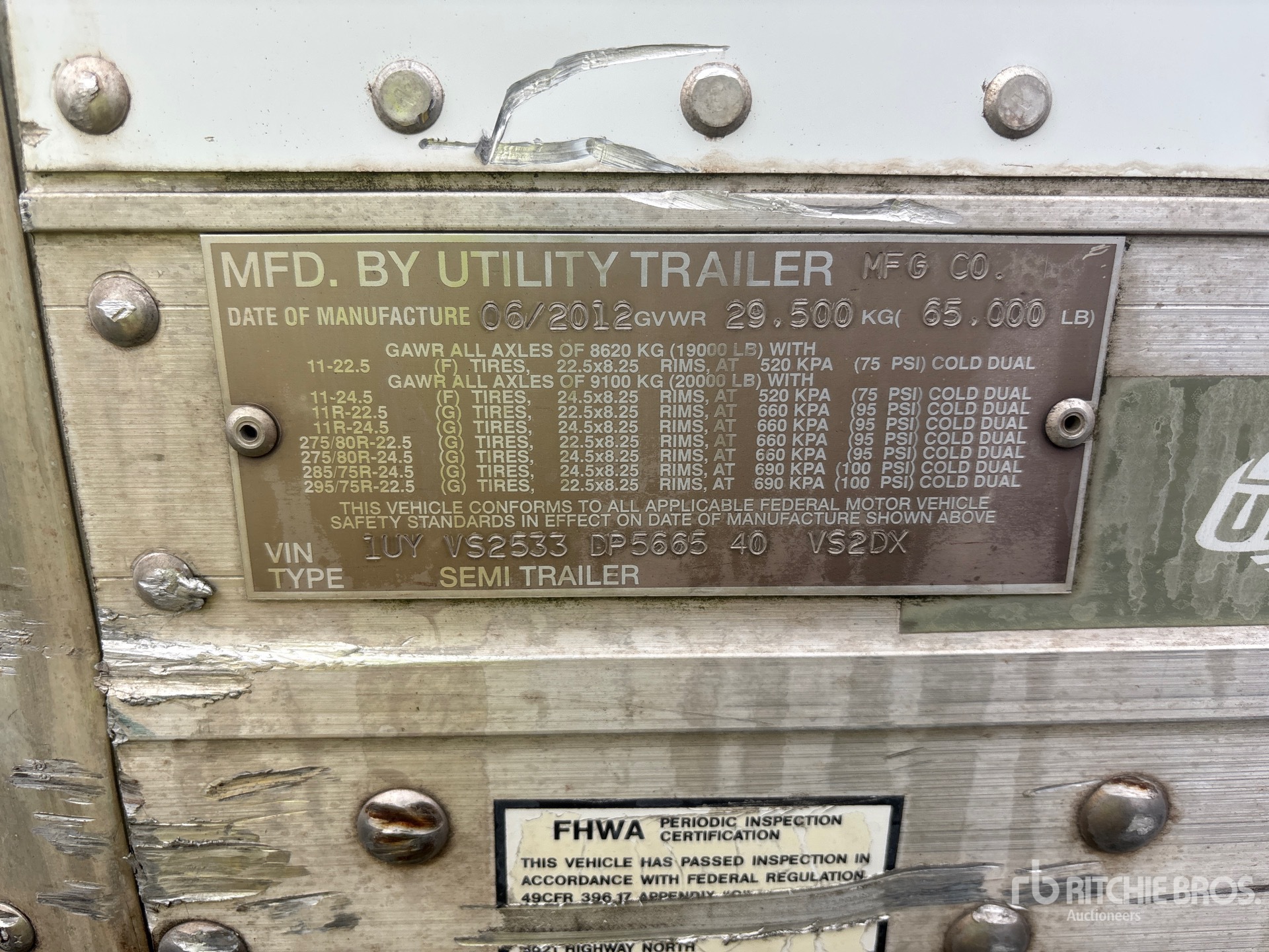 Air Ride Sliding Suspension, Side Skirts, Hardwood Floor, Roll-Up Door, 11R22.5 Tires, 65000 lb GVWR
