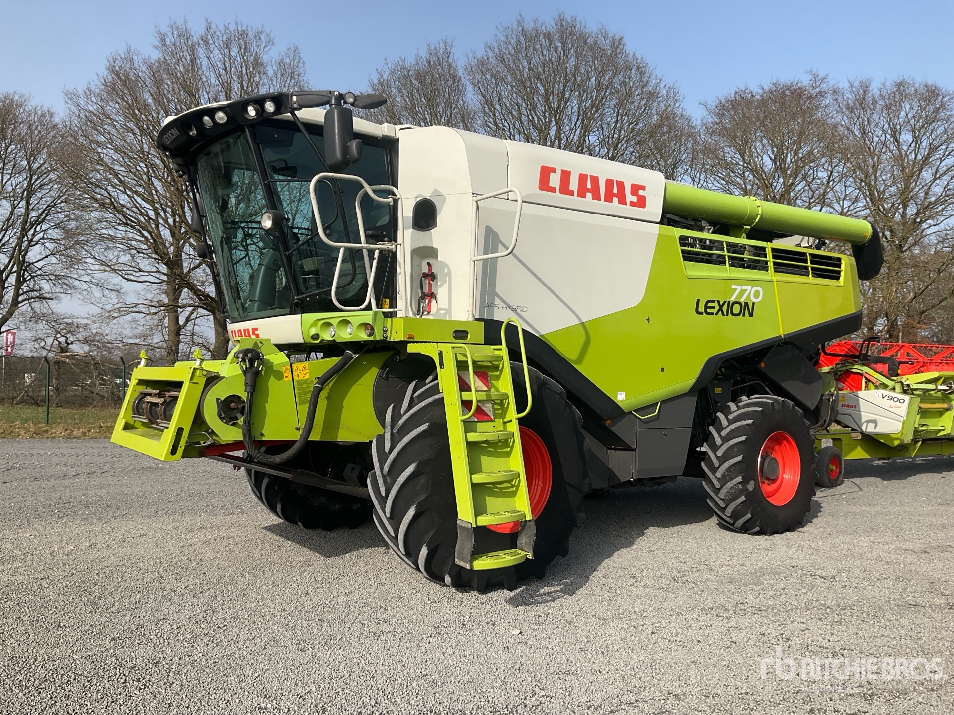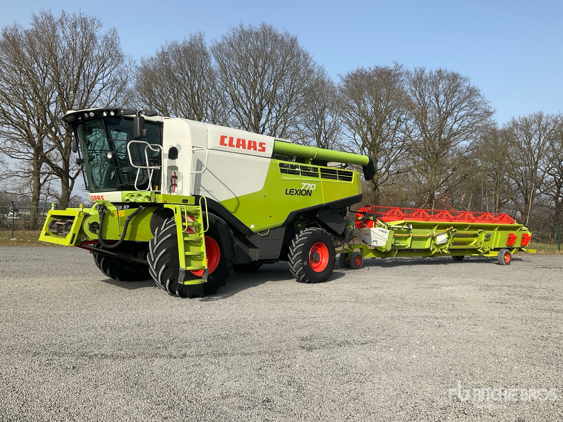 Air Conditioner, Reverser, Auto Header Height Control, Rear View Camera, Requires AdBlue, Header S/N - 71616503, 2012 Claas V900 Header Transport Trailer, Rock Trap, Chaff Spreader, Chopper, IF800/70R32 Front Tires, 500/85R30 Rear Tires