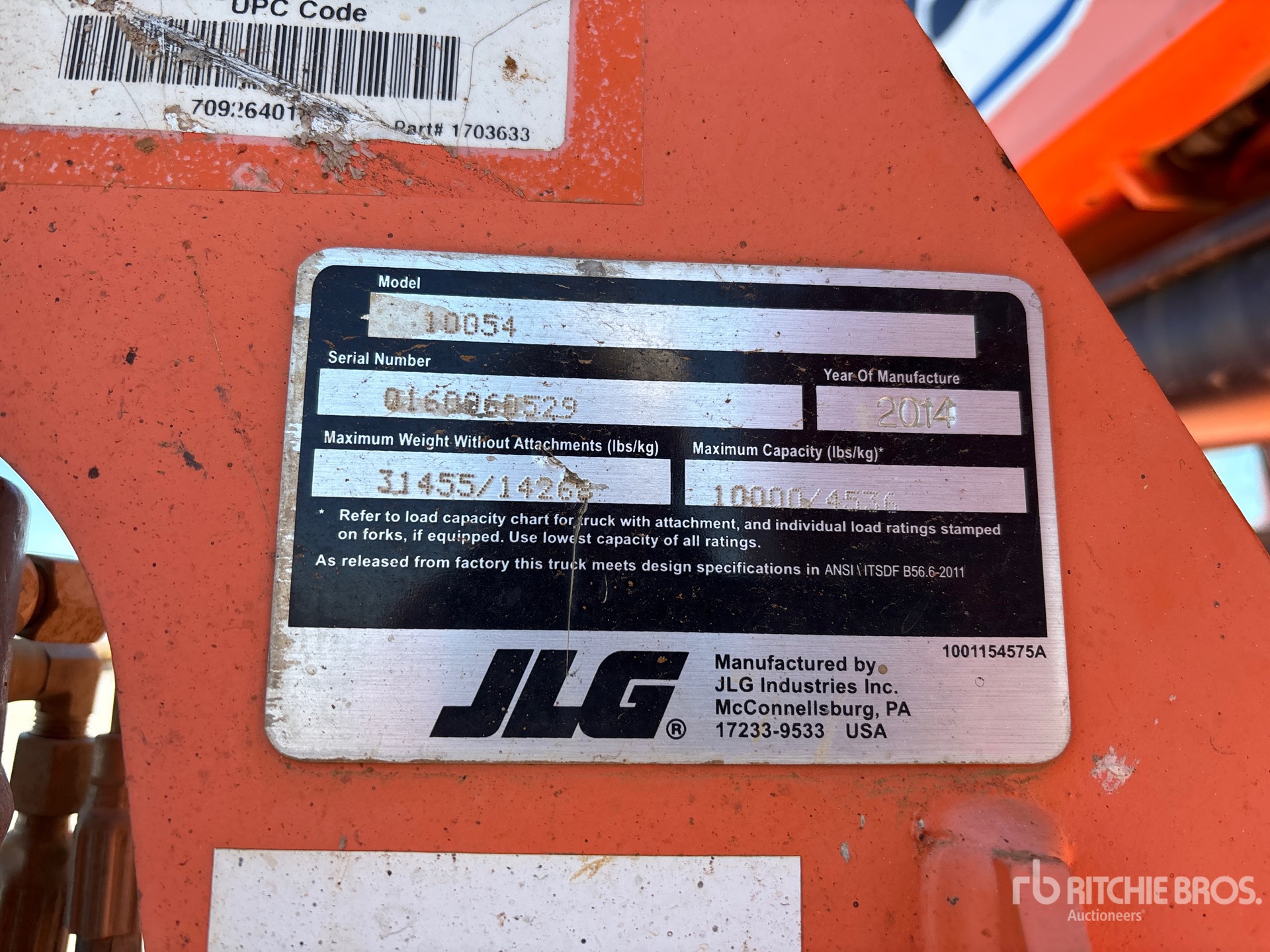 Enclosed Cab, 54 ft Max Lift Height, 10000 lb Max Lift Capacity, 2014 US EPA Label, 60 in Forks, Outriggers, Frame Leveling, Auxiliary Hydraulic Plumbing, 400/75-28 Tires