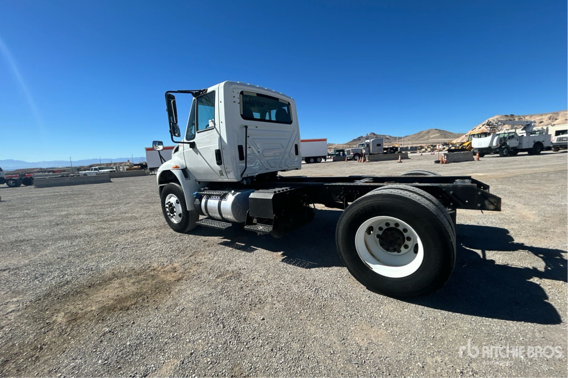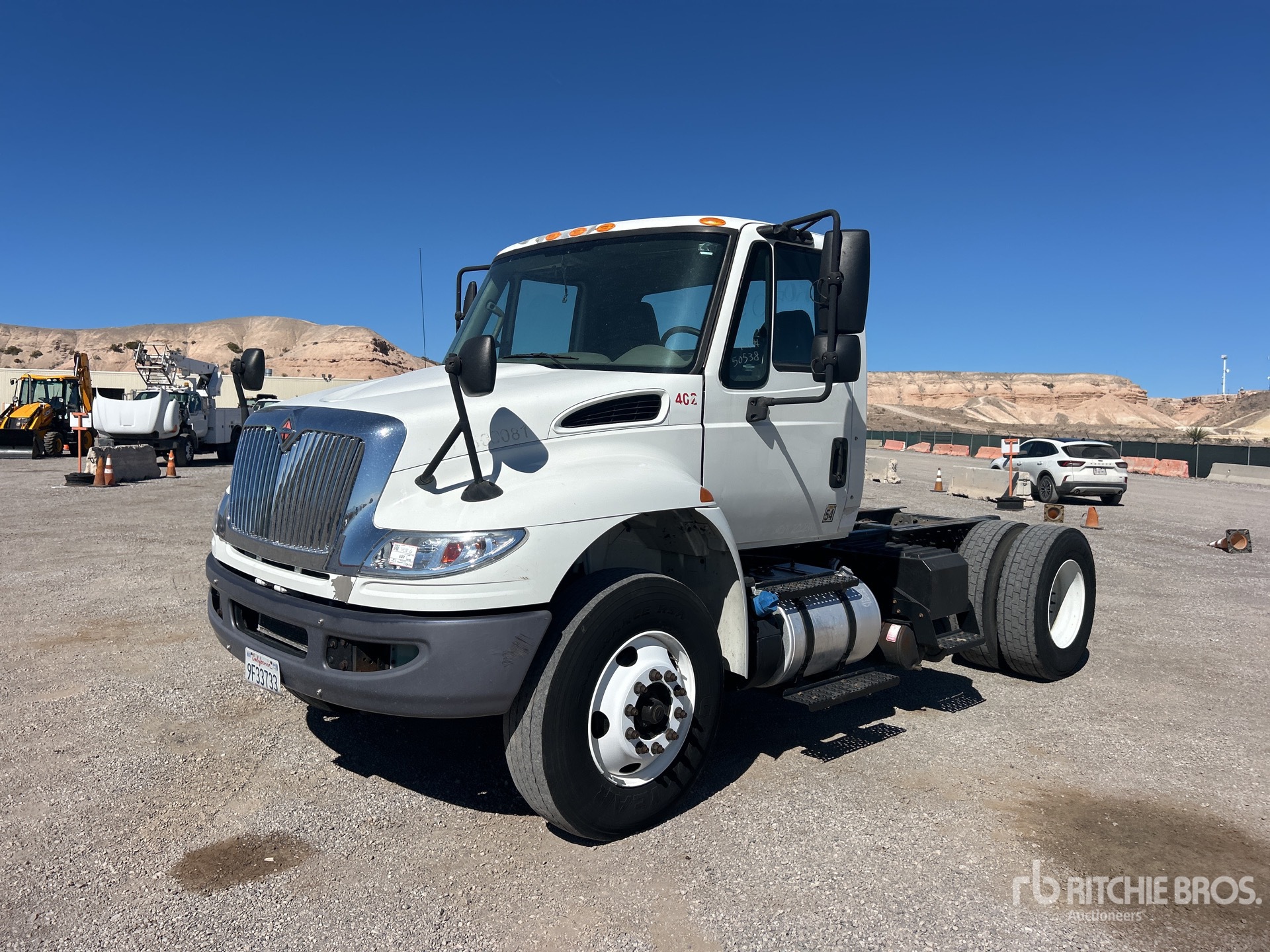 International N9 6 Cylinder 9.3 L Diesel 275 hp Engine, 2014 US EPA Label, Requires Diesel Exhaust Fluid, 4888 Engine hrs, Allison 5-Speed Automatic Transmission, 12000 lb Front Axle, 20000 lb Rears, 32000 lb GVWR, Air Ride Cab, 11R22.5, Air Ride Suspension, 156 in Wheelbase, 88 in Cab to Axle, 122 in Cab to End of Frame