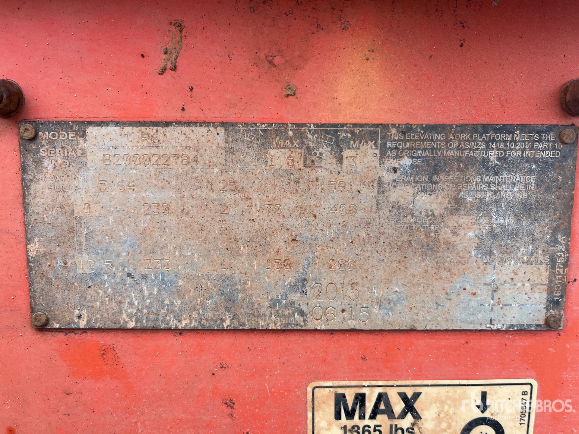Szczegółowe informacje o sprzęcie mają ograniczony zakres, a firma Ritchie Bros. Auctioneers nie sprawdzała żadnych aspektów ani komponentów urządzenia innych niż wyraźnie określone w niniejszym dokumencie. O ile nie zostało to wyraźnie stwierdzone, nie składamy żadnych oświadczeń ani gwarancji, wyraźnych lub dorozumianych, dotyczących sprzętu lub jego komponentów, w tym między innymi oświadczeń lub gwarancji dotyczących funkcjonalności lub zgodności z jakąkolwiek normą bezpieczeństwa bądź wymogami jakiegokolwiek właściwego organu lub organu regulacyjnego, przydatności do określonego celu lub przydatności handlowej. Zdecydowanie zaleca się przeprowadzenie własnej szczegółowej inspekcji sprzętu przed złożeniem oferty.
