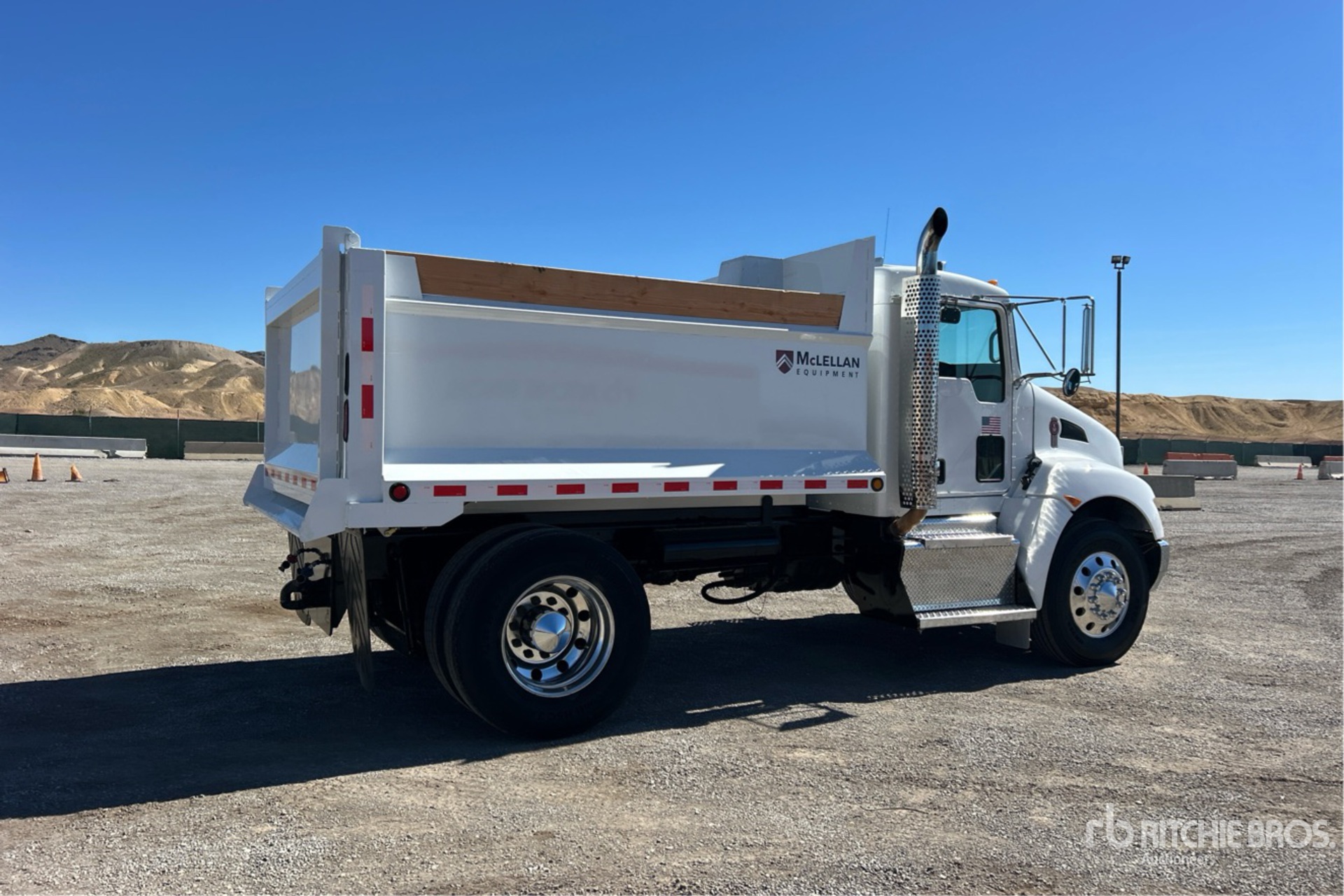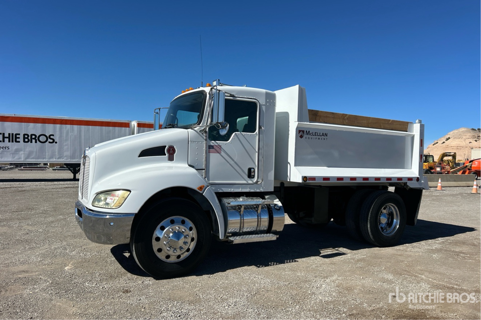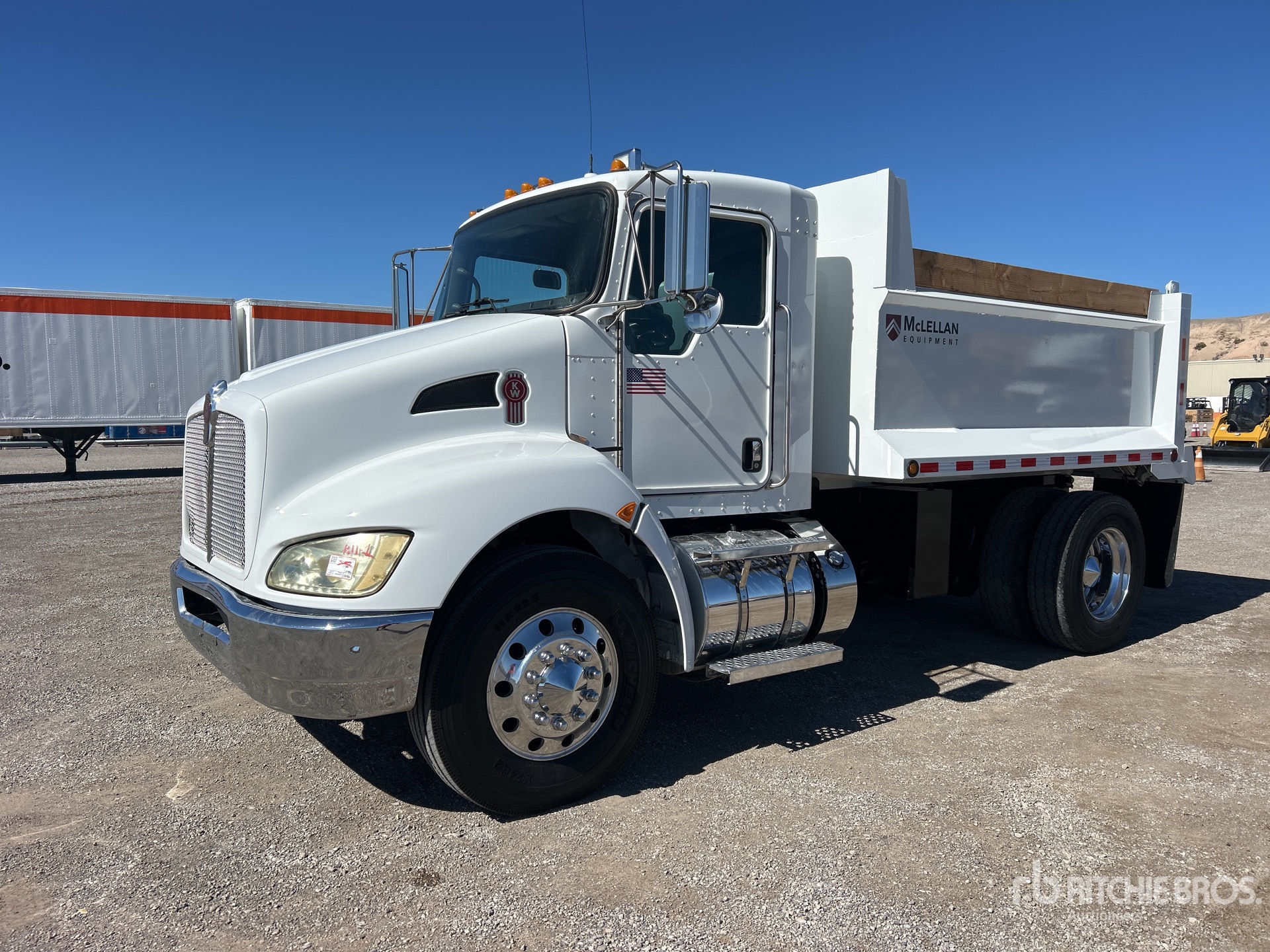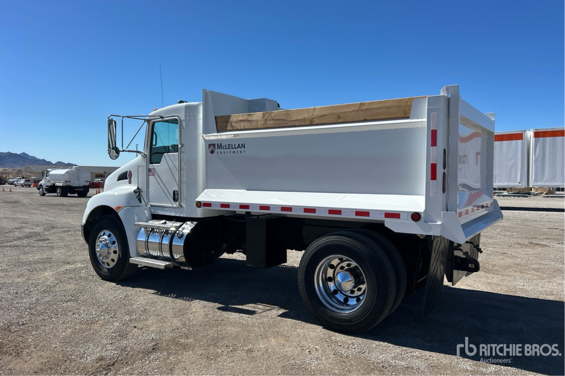 Paccar PX-7 6 Cylinder 6.7 L Diesel 300 hp Engine, 2014 US EPA Label, Requires Diesel Exhaust Fluid, 20087 Engine hrs, Allison 3500 6-Speed Automatic Transmission, 12000 lb Front Axle, 21000 lb Rears, Dana P22060S Drive Axles, 6.17:1 Axle Ratio, 33000 lb GVWR, Aluminum Outer Wheels, 11R22.5, Air Ride Suspension, 162 in Wheelbase, PTO, 10 ft Long x 0 ft 46 in High Steel Body, Pintle Hitch