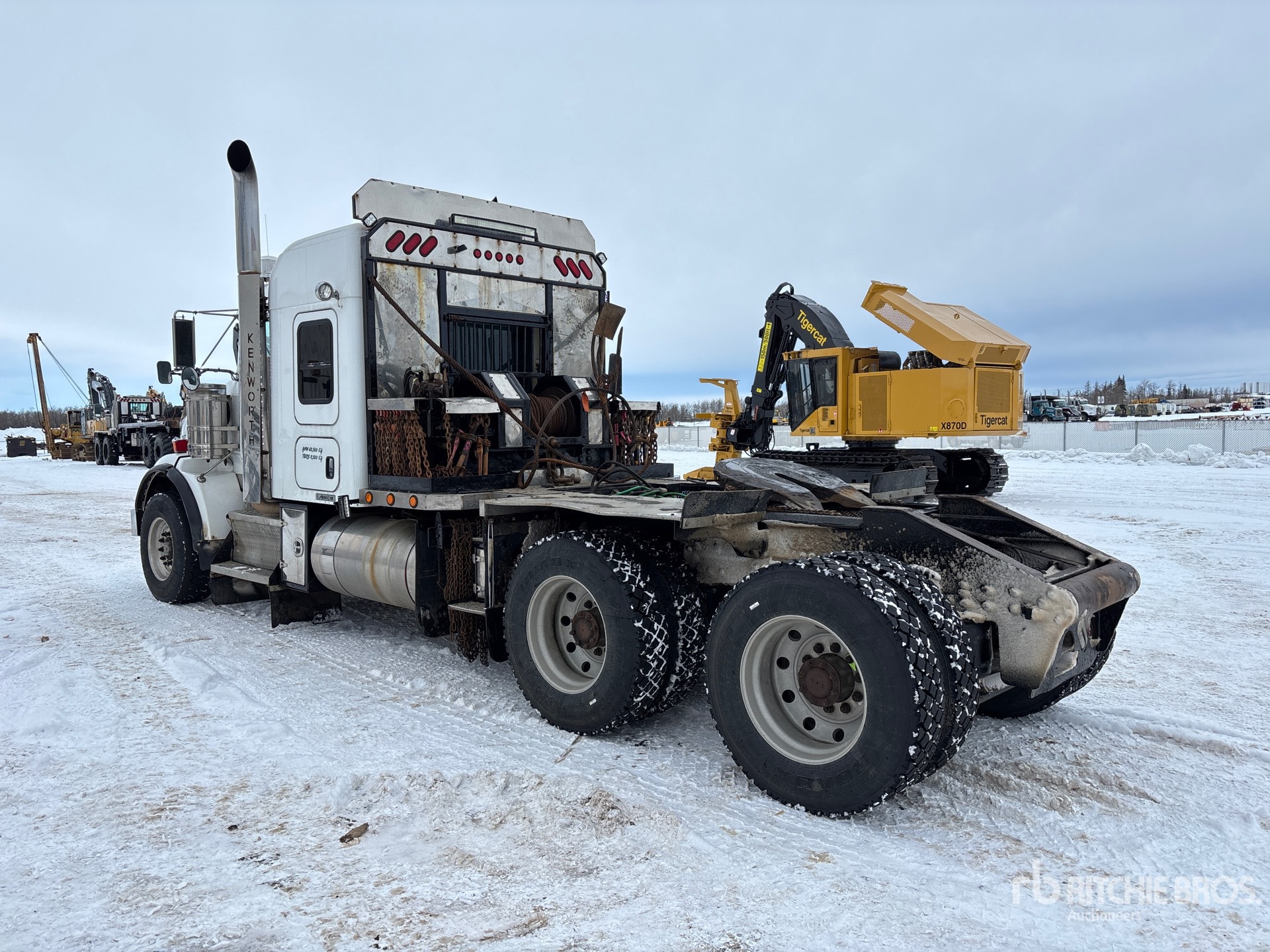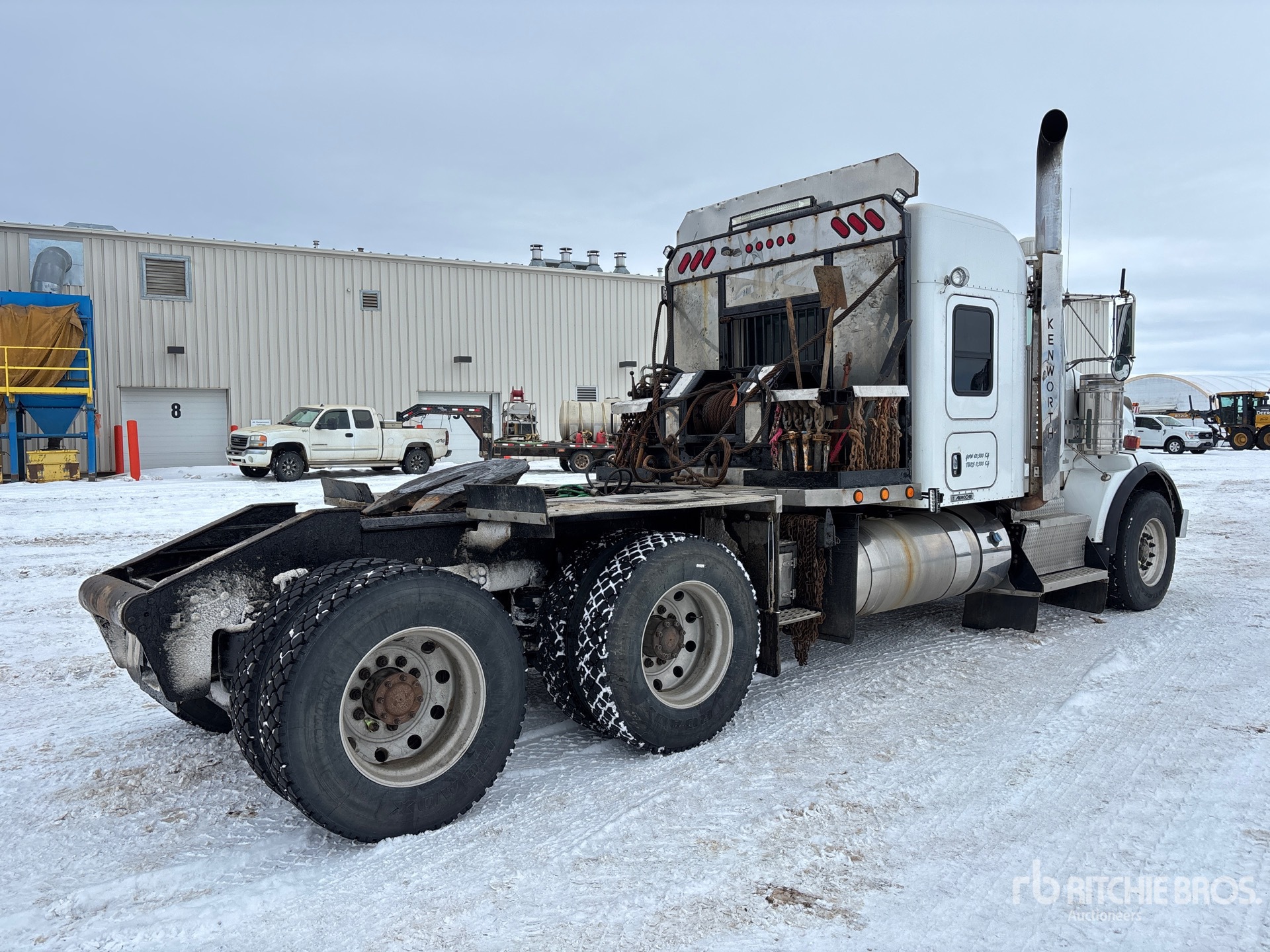 Cummins ISX15 6 Cylinder 15 L Diesel 550 hp Engine, Engine Coolant Heater, Positive Air Shutoff, Webasto Engine Coolant Heater, 5212 Engine hrs, Engine Brake, Eaton Fuller RTLO-18918B 18-Speed Manual Transmission, Double Differential Locks, 16000 lb Front Axle, 46000 lb Rears, Dana D46-170HP Drive Axles, 4.10:1 Axle Ratio, 62000 lb GVWR, Air Ride Cab, 52 in Mid Roof Sleeper Cab, Bunk Heater, Aluminum Wheels, 385/65R22.5 Front Tires, 11R24.5 Rear Tires, Neway ADZ Series Air Ride Suspension, 236 in Wheelbase, PTO, Tail Roll, Ramsey Winch, Complete-Dispersal-for-T-Ruckin-Oilfield-Services-Ltd