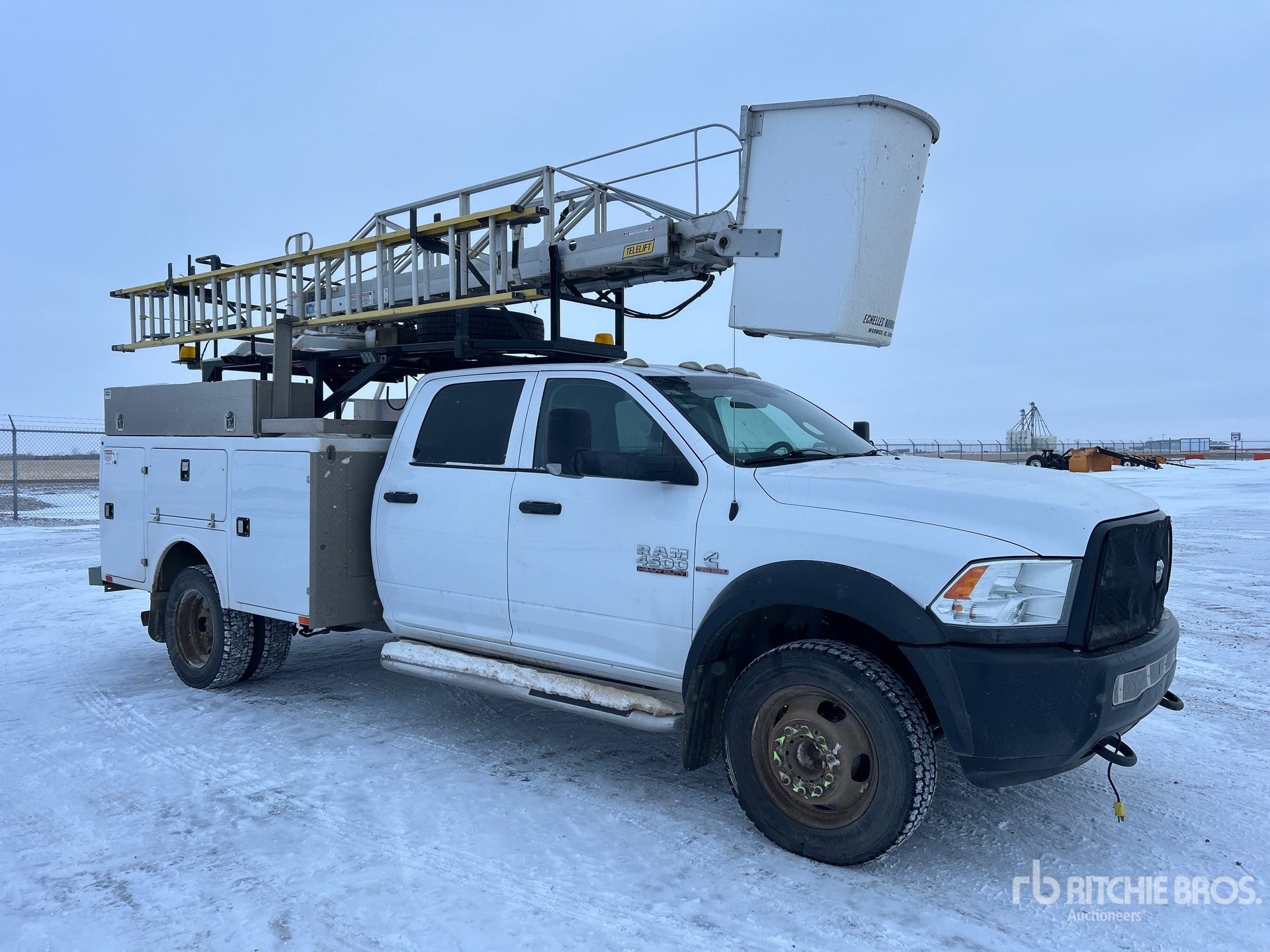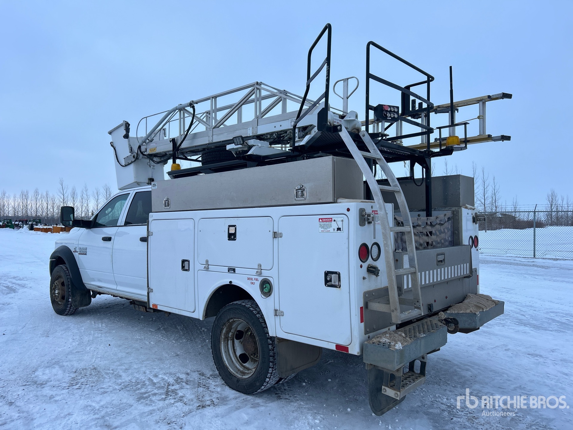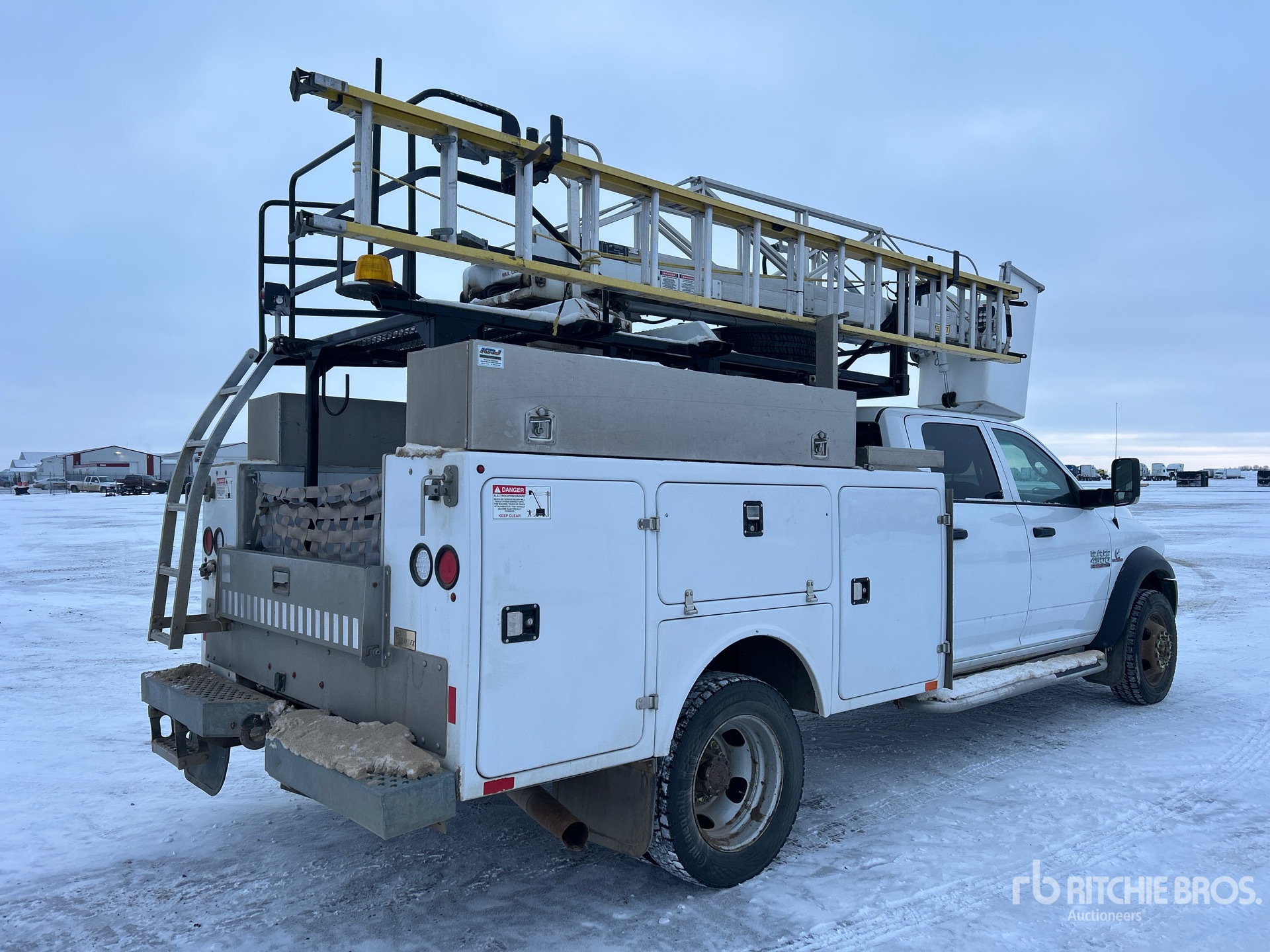 Cummins ISB 6 Cylinder 6.7 L Diesel 325 hp Engine, 2015 US EPA Label, CARB Compliant, Requires Diesel Exhaust Fluid, 4758 Engine hrs, Exhaust Brake, Automatic Transmission, 7000 lb Front Axle, 12000 lb Rears, 16000 lb GVWR, 225/70R19.5, Spring Suspension, 175 in Wheelbase, 300 lb Capacity, Rear Mounted, One-Person Telescopic Boom, Utility Body, 9 ft x 96 in Bed