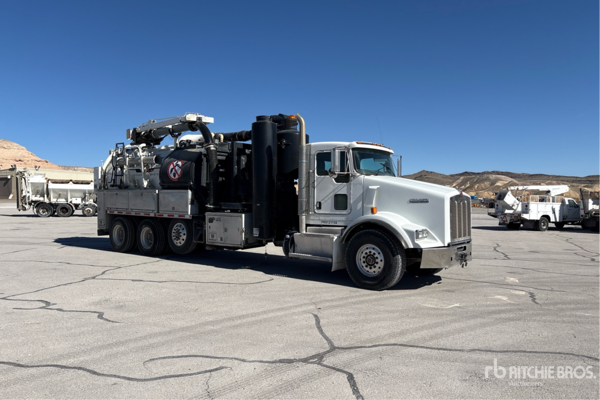 Located in Lane 7 Spot 2, Cummins ISX 6 Cylinder 11.9 L Diesel 425 hp Engine, 2014 US EPA Label, Requires Diesel Exhaust Fluid, 14688.0 Engine hrs, Engine Brake, Eaton Fuller FRO-16210C 10-Speed Manual Transmission, Double Differential Locks, 20000 lb Front Axle, 46000 lb Rears, Dana D46-170HP Drive Axles, 4.10:1 Axle Ratio, 78350 lb GVWR, Aluminum Wheels, 425/65R22.5 Front Tires, 11R22.5 Rear Tires, Steerable Air Lift Pusher Axle, Steerable Air Lift Tag Axle, Dual Steering Boxes, Double Frame, Hendrickson Spring Suspension, 307 in Wheelbase, PTO, Wet Kit, Steel 2424 gal Debris Tank, Hoist, Vibrator, Rear Hose Reel, 1200 gal Fresh Water Tank, Hydraulic Lift Tailgate, Wash Down System, Hydraulic Tailgate Locks, 22 ft Telescopic Boom, 8 in Suction Hose, Chelsea PTO Driven Pump, Hibson S.A.S SIAV 8702 Blower w/ 4469 hrs, Cord and Cordless Remote Controls