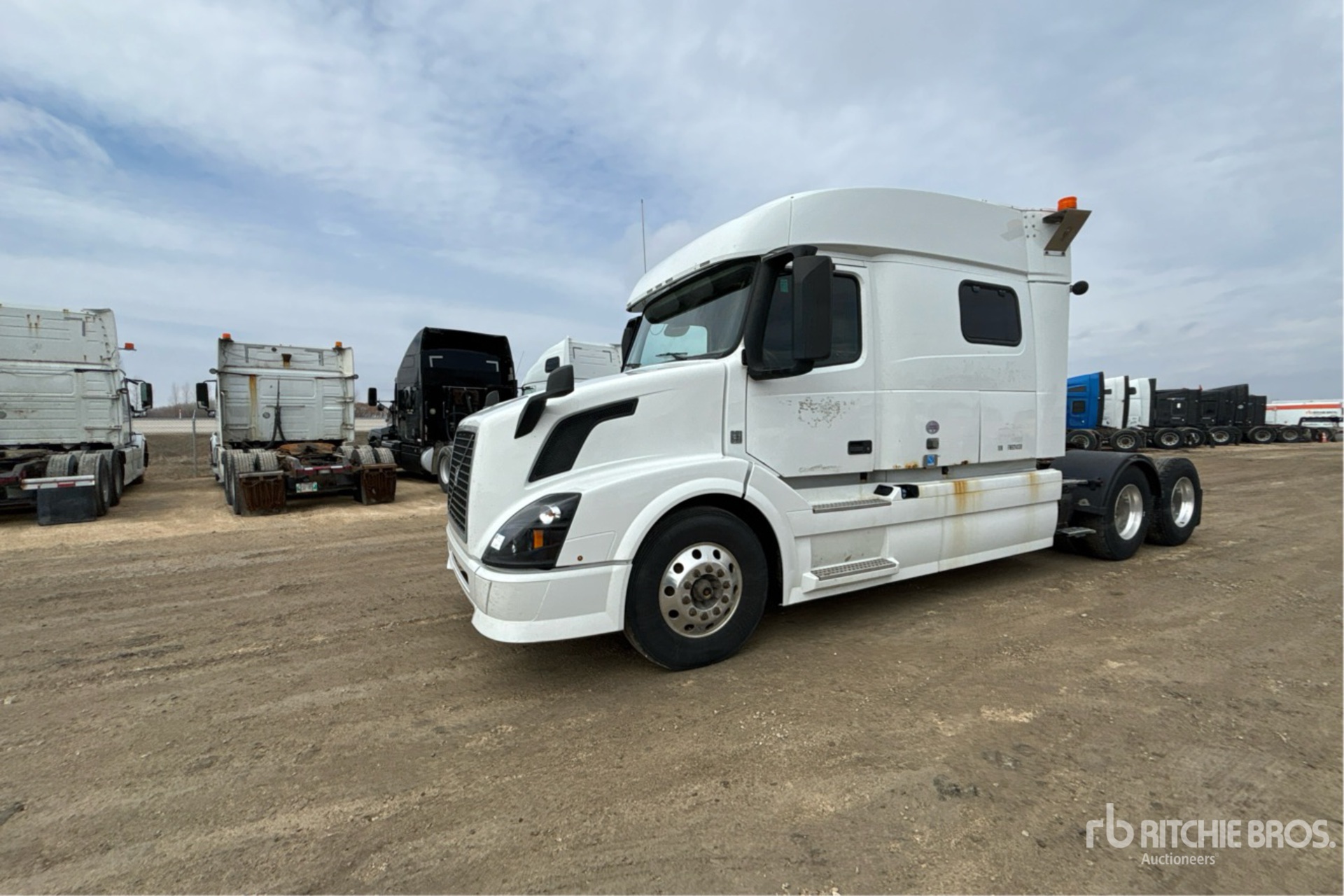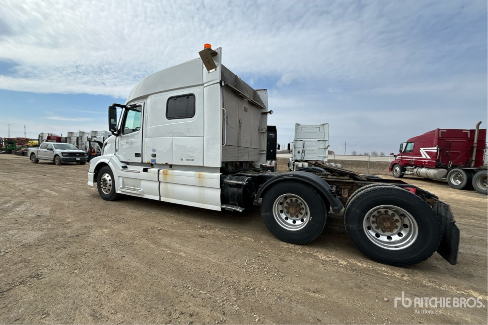Volvo D13J 425 hp Engine, 2014 US EPA Label, Volvo AT2612D 12-Speed Automated Transmission, 12500 lb Front Axle, 38000 lb Rears, 50500 lb GVWR, Engine Brake, Differential Lock, 70 in Mid Roof Sleeper Cab, Bunk Beds, 232 in Wheelbase, Air Suspension, Aluminum Wheels, 11R22.5, Air Sliding 5th Wheel, Dual Fuel Tanks, Headache Rack