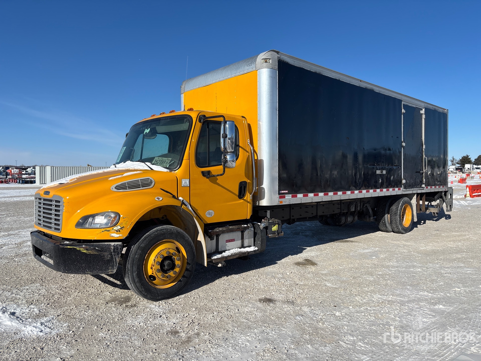 Cummins ISB 6 Cylinder 6.7 L Diesel 220 hp Engine, 2015 US EPA Label, CARB Compliant, Requires Diesel Exhaust Fluid, Allison 2100 6-Speed Automatic Transmission, 10000 lb Front Axle, 19000 lb Rears, Detroit DA-RS-19.0-4 Drive Axles, 5.22:1 Axle Ratio, 26000 lb GVWR, 255/70R22.5 Front Tires, 255/70R22.5 Rear Tires, Airliner Air Ride Suspension, 270 in Wheelbase, Morgan 20 ft x 102 in Wide x 96 in High Body, Curbside Door, Liftgate, PROFESSIONALLY-MAINTAINED-FLEET-VEHICLE-PAG