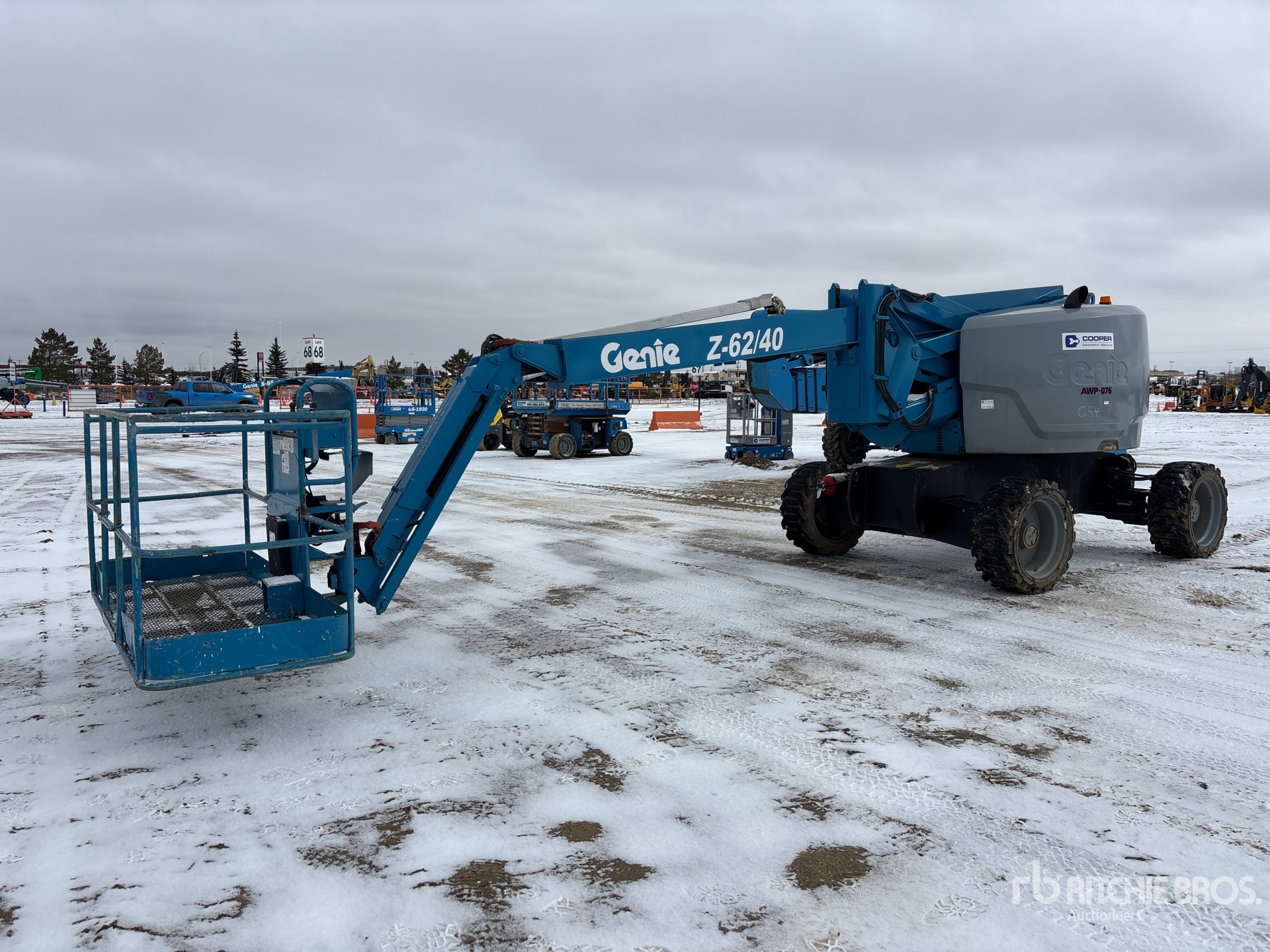 62 ft Max Platform Height, 500 lb Max Weight Capacity, Jib, Power to Platform, 4 Cylinder Dual Fuel Engine, 355/55D625 Tires
