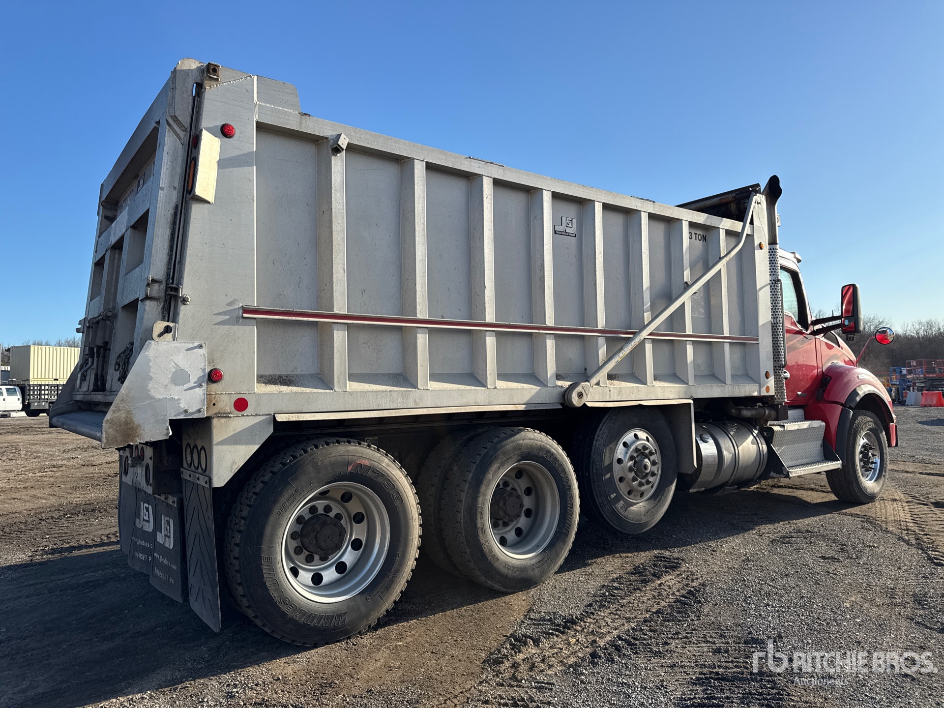 Cummins 6 Cylinder Diesel 550 hp Engine, 2016 US EPA Label, 18873.7 Engine hrs, Engine Brake, Allison 4500 Automated Transmission, Differential Lock, 18500 lb Front Axle, 46000 lb Rears, Dana D46-170H Drive Axles, 4.10:1 Axle Ratio, 83240 lb GVWR, Air Ride Cab, Aluminum Wheels, 315/80R22.5 Front Tires, 11R24.5 Rear Tires, Steerable Air Lift Pusher Axle, Dual Steering Boxes, Double Frame, Hendrickson Primaax EX Air Ride Suspension, 237 in Wheelbase, J & J 16 ft 6 in Long x 5 ft High Aluminium Body, Heated Box, Electric Roll Tarp, Tailgate Chute
