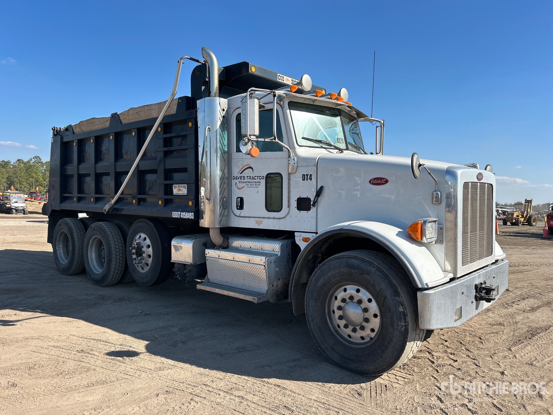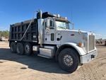 Cummins ISX12 6 Cylinder 11.9 L Diesel 425 hp Engine, 2015 US EPA Label, CARB Compliant, 20766 Engine hrs, Engine Brake, Eaton Fuller RTO-16908LL 8LL Manual Transmission, 20000 lb Front Axle, 58350 lb Rears, Dana D46-170 Drive Axles, 3.91:1 Axle Ratio, 78351 lb GVWR, Aluminum Outer Wheels, 425/65R22.5 Front Tires, 11R24.5 Rear Tires, Dual Steering Boxes, Double Frame, Air Ride Suspension, 225 in Wheelbase, PTO, OX Bodies 15 ft Long x 5 ft High Steel Body, Electric Roll Tarp