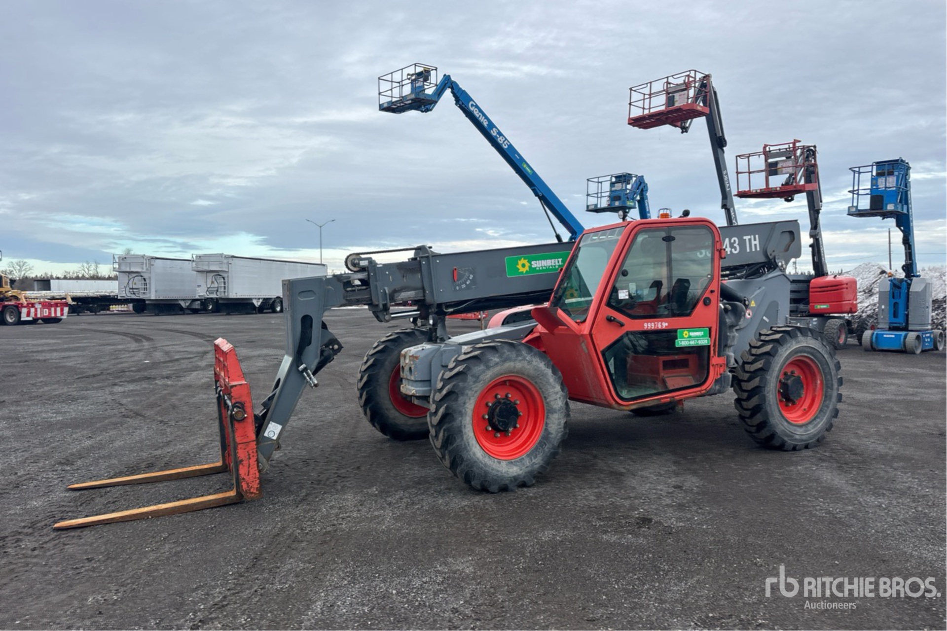 Enclosed Cab, Air Conditioner, Air Ride Seat, 43 ft Max Lift Height, 8000 lb Max Lift Capacity, 2016 US EPA Label, CARB Compliant, 48 in Forks, Manual Coupler, 13.00-24 Tires