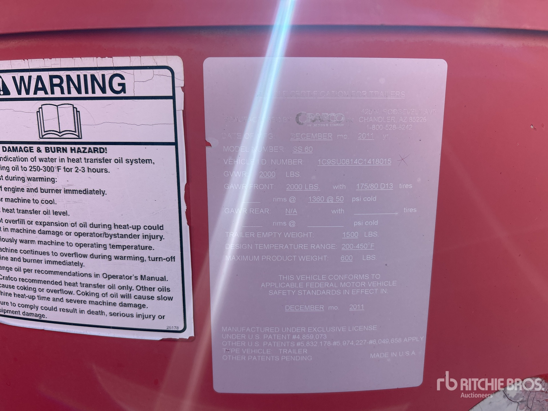 Szczegółowe informacje o sprzęcie mają ograniczony zakres, a firma Ritchie Bros. Auctioneers nie sprawdzała żadnych aspektów ani komponentów urządzenia innych niż wyraźnie określone w niniejszym dokumencie. O ile nie zostało to wyraźnie stwierdzone, nie składamy żadnych oświadczeń ani gwarancji, wyraźnych lub dorozumianych, dotyczących sprzętu lub jego komponentów, w tym między innymi oświadczeń lub gwarancji dotyczących funkcjonalności lub zgodności z jakąkolwiek normą bezpieczeństwa bądź wymogami jakiegokolwiek właściwego organu lub organu regulacyjnego, przydatności do określonego celu lub przydatności handlowej. Zdecydowanie zaleca się przeprowadzenie własnej szczegółowej inspekcji sprzętu przed złożeniem oferty.