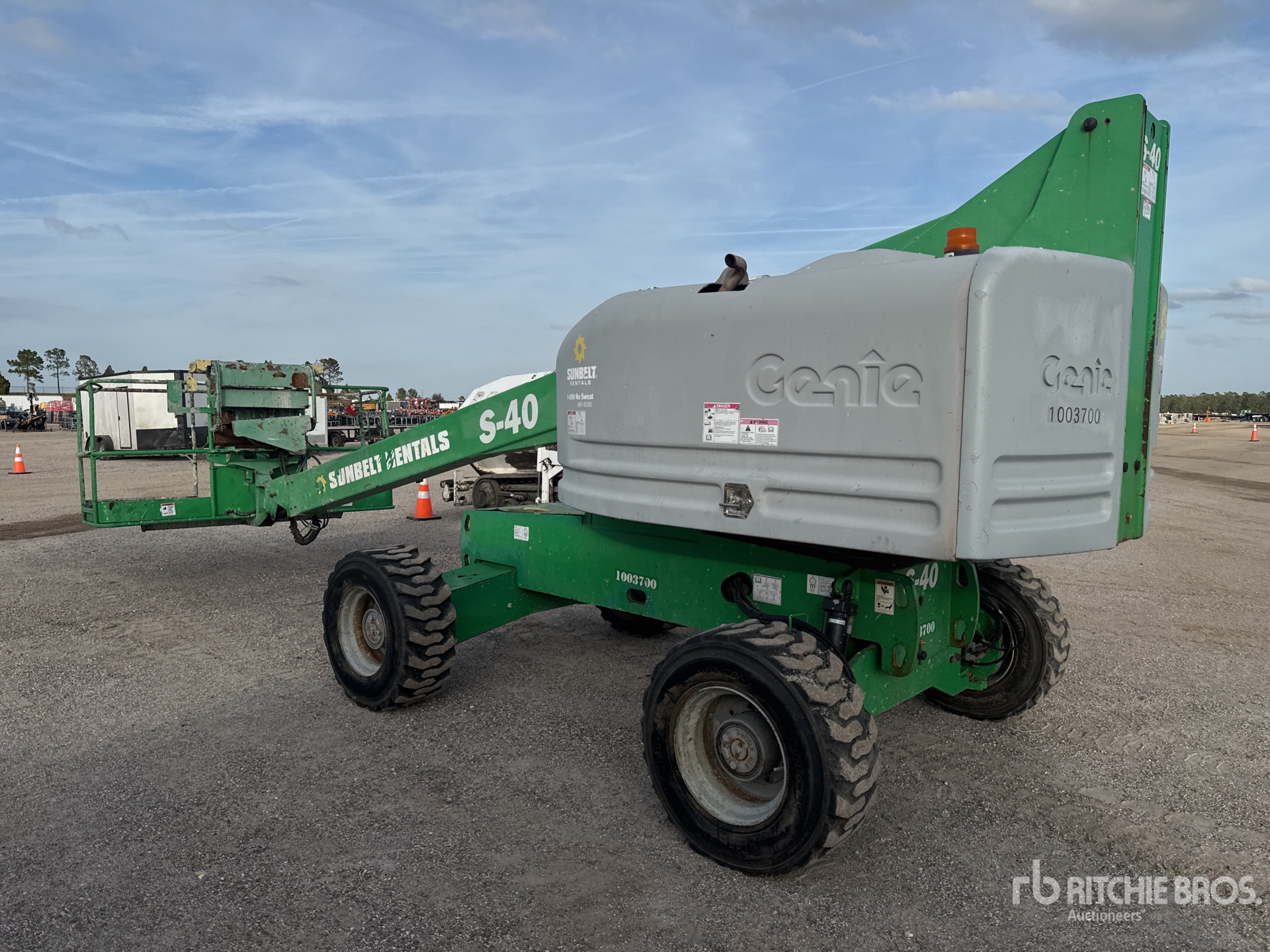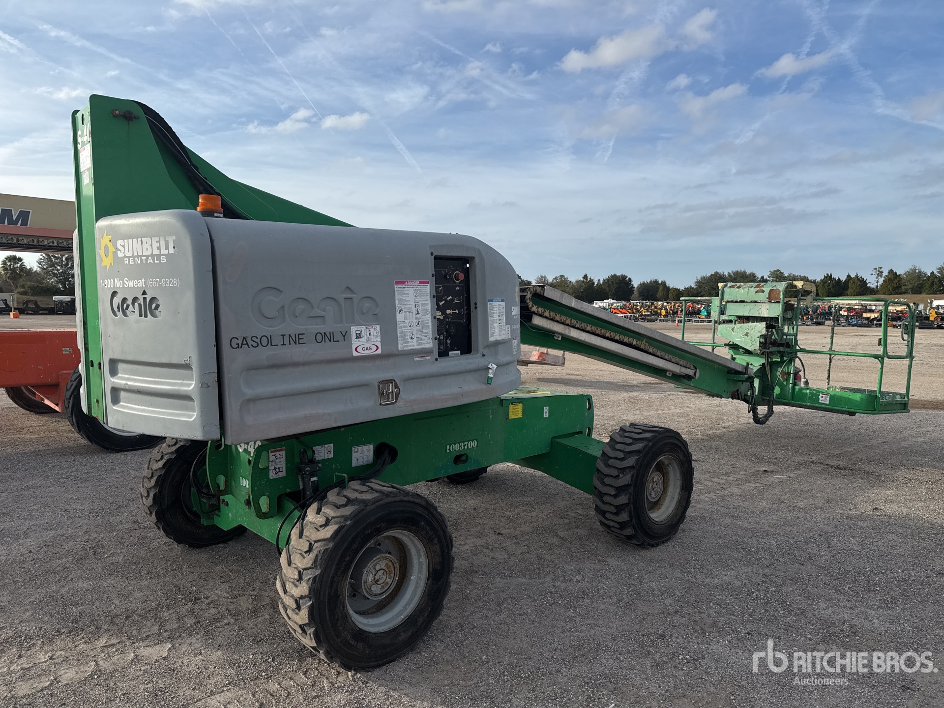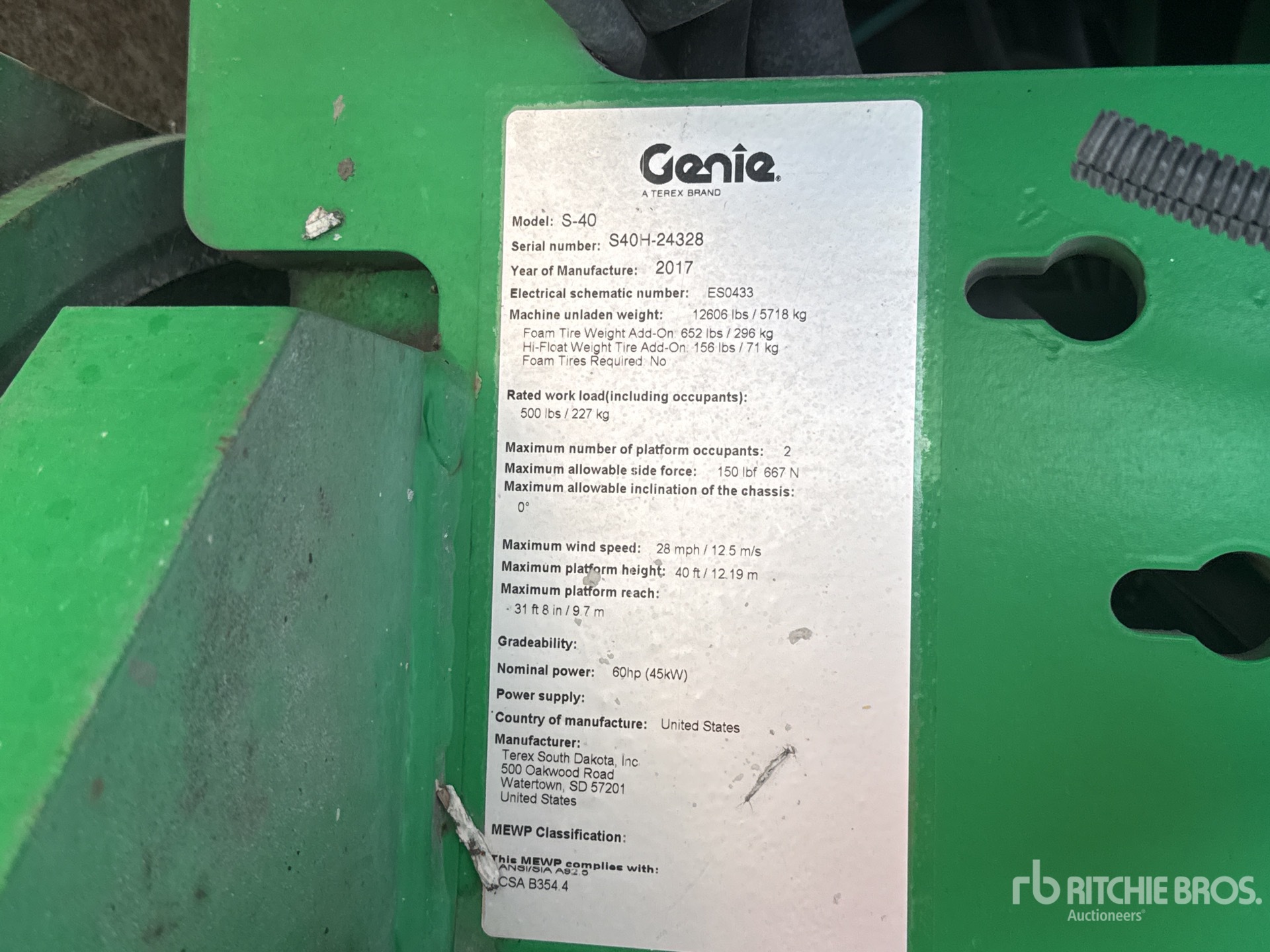 40 ft Max Platform Height, 500 lb Max Weight Capacity, Power to Platform, Onboard Generator, Ford MSG-425 4 Cylinder 75 hp 2.5 L Gasoline Engine, 12-16.5 Foam-Filled Tires