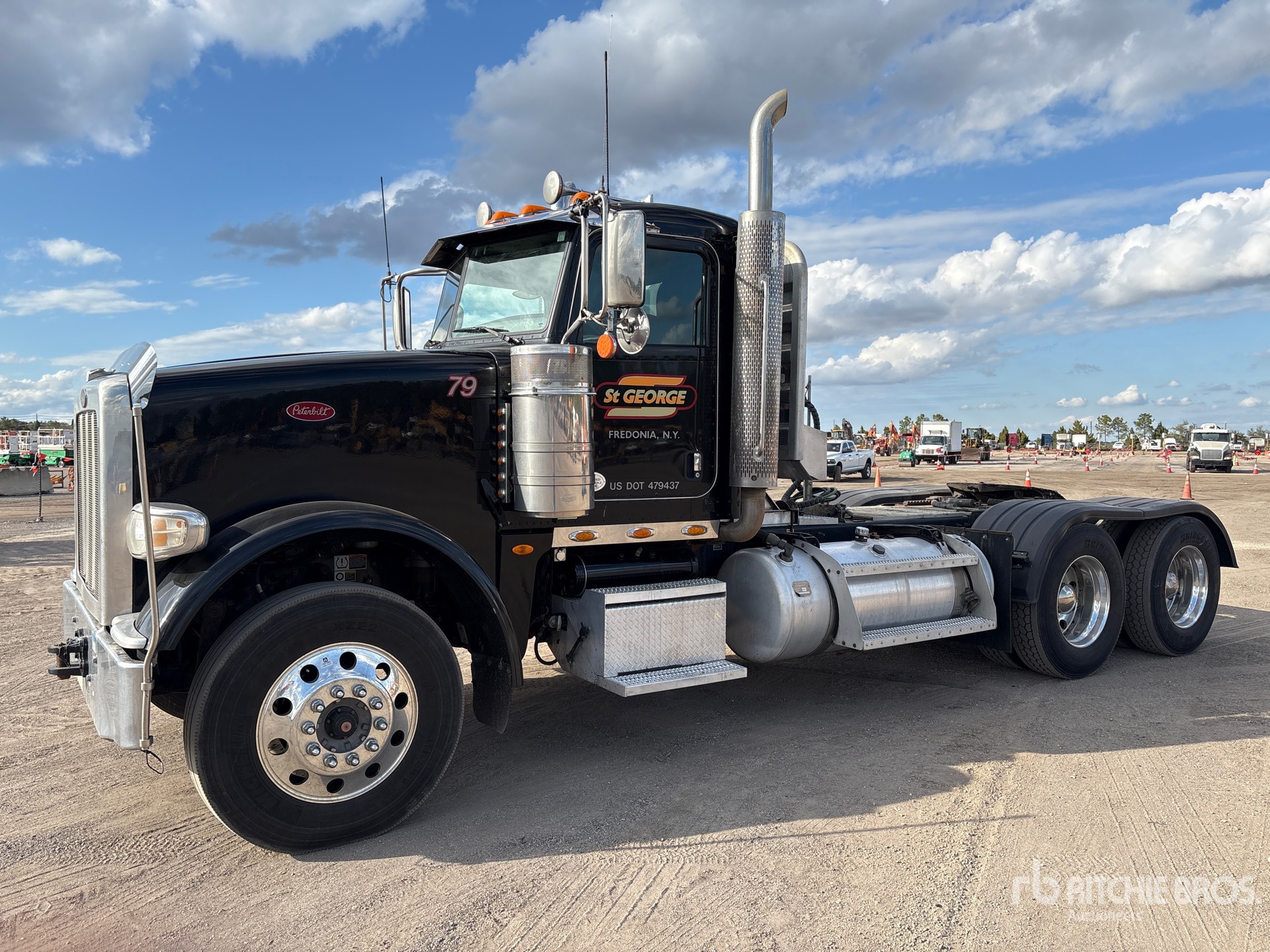 Located in Lane 77 Spot 27, Cummins ISX15 550 hp Engine, 2015 US EPA Label, 16501 Engine hrs, Eaton Fuller 18-Speed Manual Transmission, 14320 lb Front Axle, 46000 lb Rears, 60320 lb GVWR, Engine Brake, 230 in Wheelbase, Air Suspension, Aluminum Wheels, 11R24.5, Wet Kit, Air Sliding 5th Wheel, Dual Fuel Tanks, Headache Rack