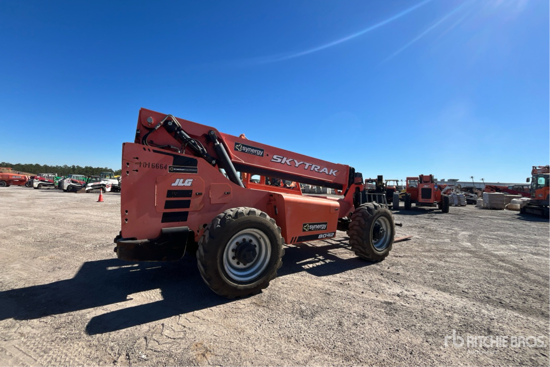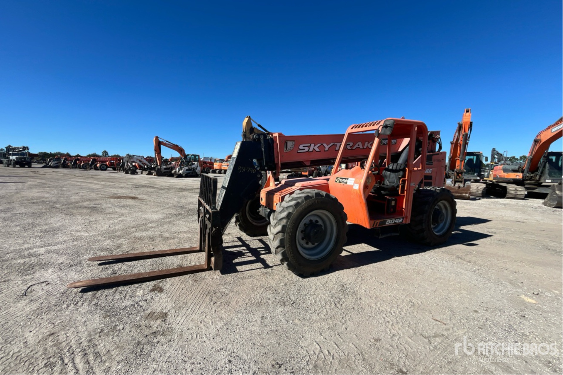 Located in Lane 14 Spot 227, Open Operator Station, 42 ft Max Lift Height, 8000 lb Max Lift Capacity, Requires Diesel Exhaust Fluid, 60 in Forks, Manual Coupler, Frame Leveling, Auxiliary Hydraulic Plumbing
