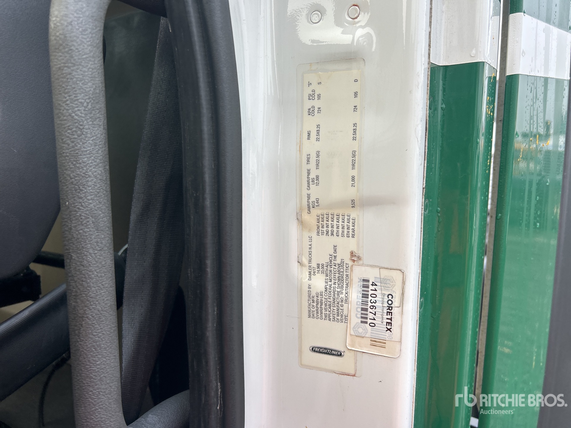 Located in Lane 32 Spot 34, Detroit DD15 455 hp Engine, 2018 US EPA Label, Eaton Fuller FA0-15210C 10-Speed Manual Transmission, 12000 lb Front Axle, 21000 lb Rears, 33000 lb GVWR, Engine Brake, 158 in Wheelbase, Air Suspension, 11R22.5, Dual Fuel Tanks