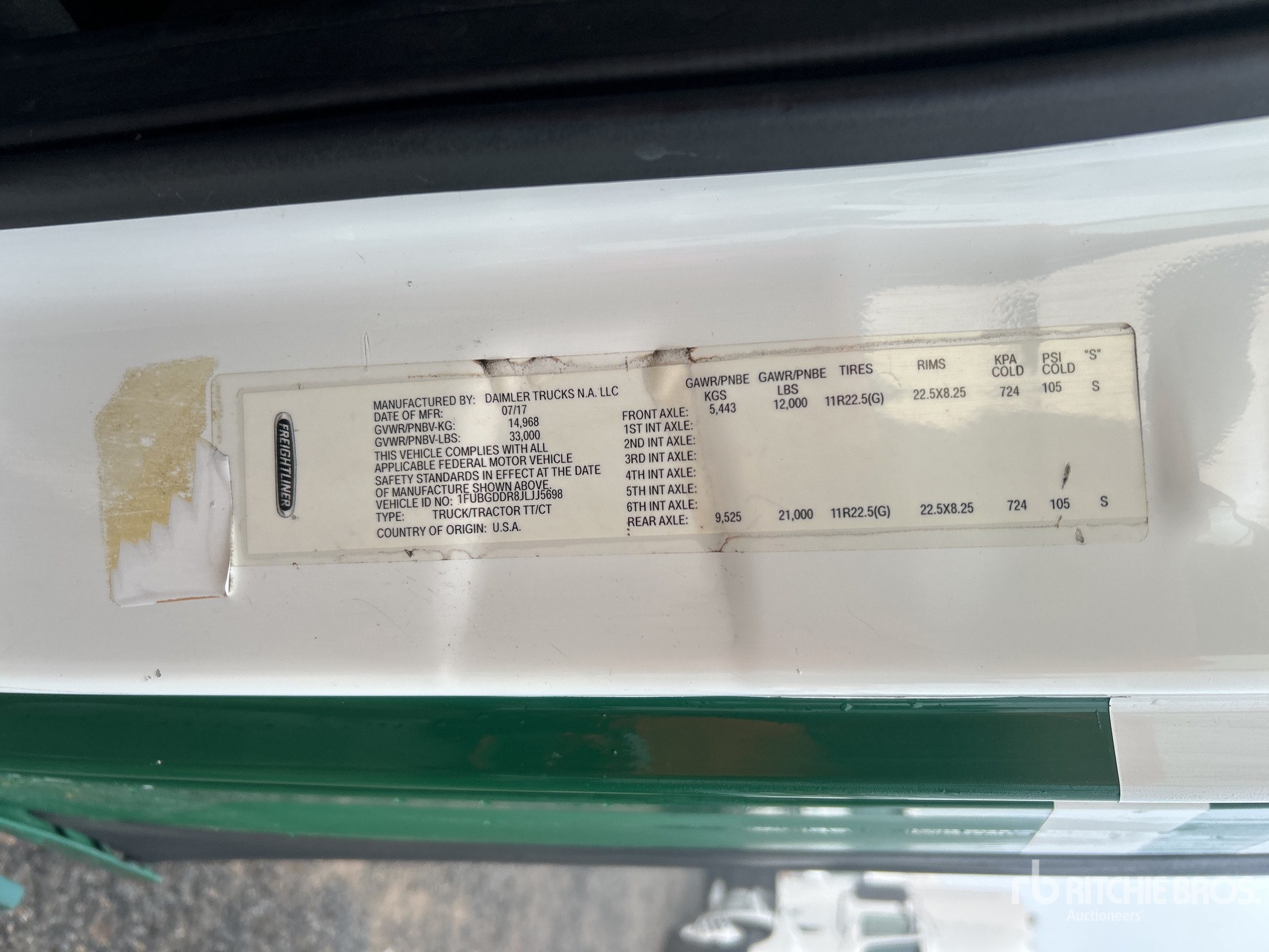 Located in Lane 32 Spot 20, Detroit DD15 455 hp Engine, 2017 US EPA Label, 16905 Engine hrs, Eaton Fuller FAO-15810C 10-Speed Manual Transmission, 12000 lb Front Axle, 21000 lb Rears, 33000 lb GVWR, Engine Brake, 158 in Wheelbase, Air Suspension, 11R22.5, Dual Fuel Tanks
