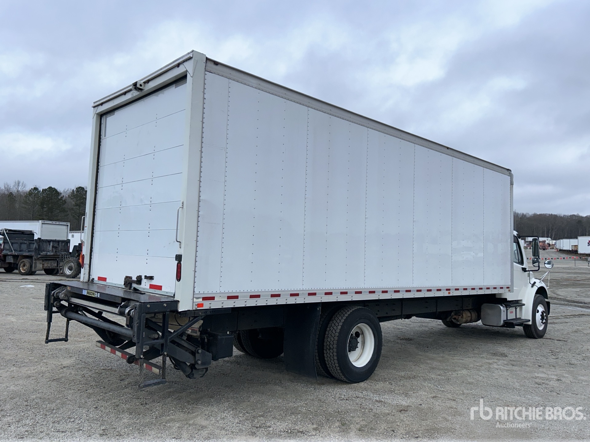 Cummins B6.7 6 Cylinder 6.7 L Diesel 220 hp Engine, 2017 US EPA Label, Requires Diesel Exhaust Fluid, 8169.7 Engine hrs, Allison 2100 Automatic Transmission, 10000 lb Front Axle, 19000 lb Rears, Detroit DA-RS-19.0-4 Drive Axles, 5.56:1 Axle Ratio, 26000 lb GVWR, 11R22.5, Airliner Air Ride Suspension, 270 in Wheelbase, MORGAN 26 ft x 102 in Wide x 97 in High Body, Liftgate