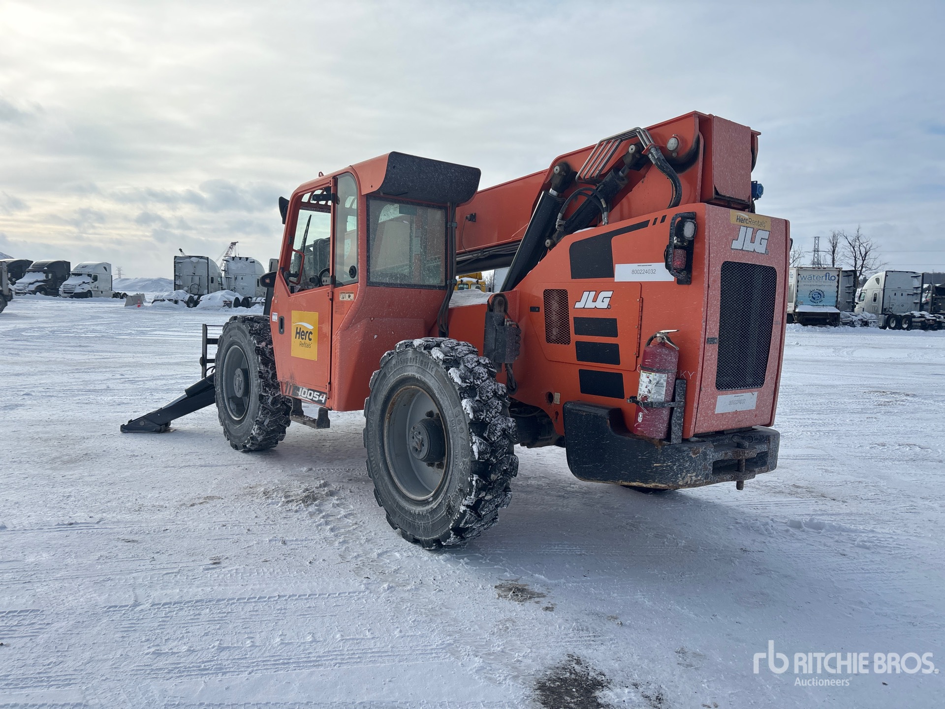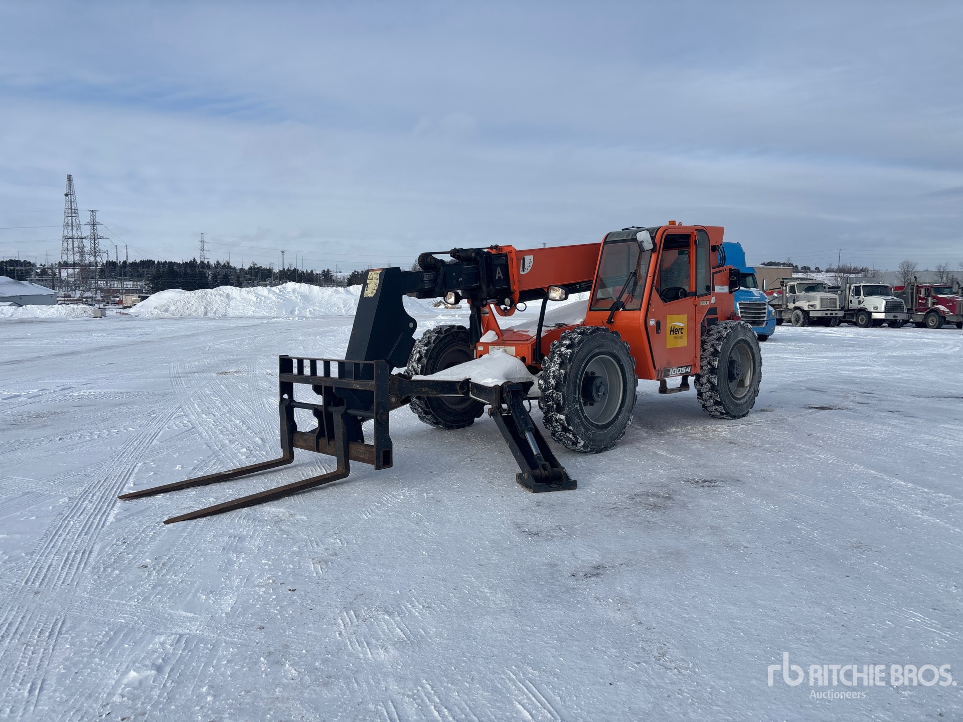 Enclosed Cab, 54 ft Max Lift Height, 10000 lb Max Lift Capacity, 60 in Forks, Outriggers, Frame Leveling, Auxiliary Hydraulic Plumbing, 360/85-28 Tires