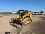Located in Lane 18 Spot 132, Open Operator Station, Joystick Steering, Self Leveling, Tier 4, 2018 US EPA Label, CARB Compliant, 15.5 in Track Belts, 9 Pin Electric Kit, Hydraulic Coupler, 74 in Grapple Bucket